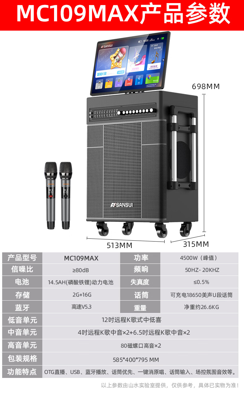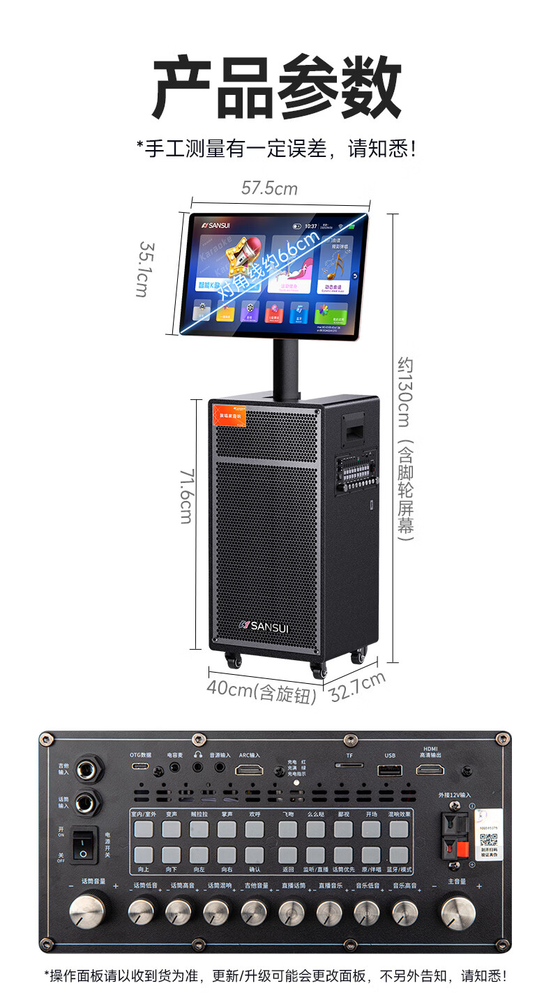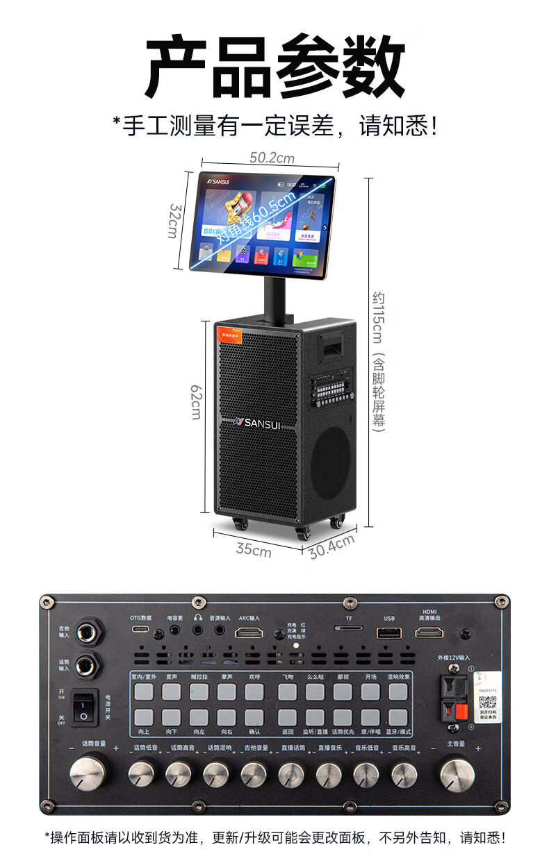 SANSUI portable trolley video speaker touch screen outdoor karaoke home ktv audio set all-in-one karaoke machine high volume karaoke 12 inches 15 inches Q188 (18 inches subwoofer + 21 inches screen 500G + three-year membership