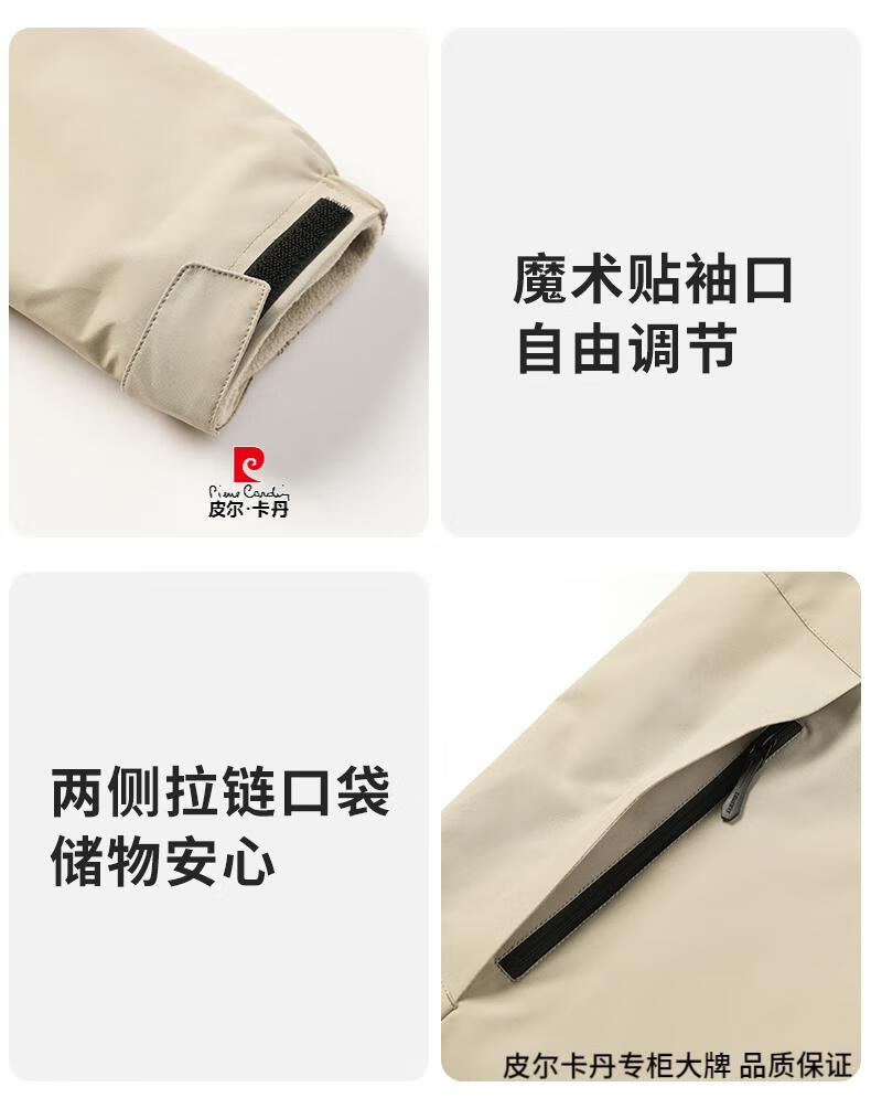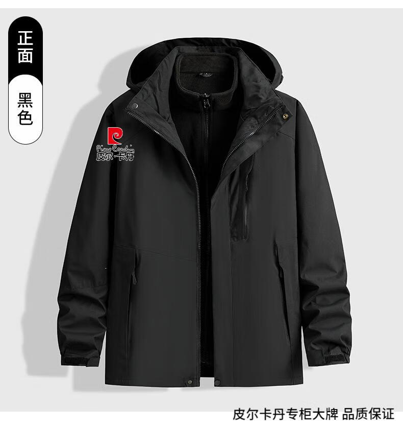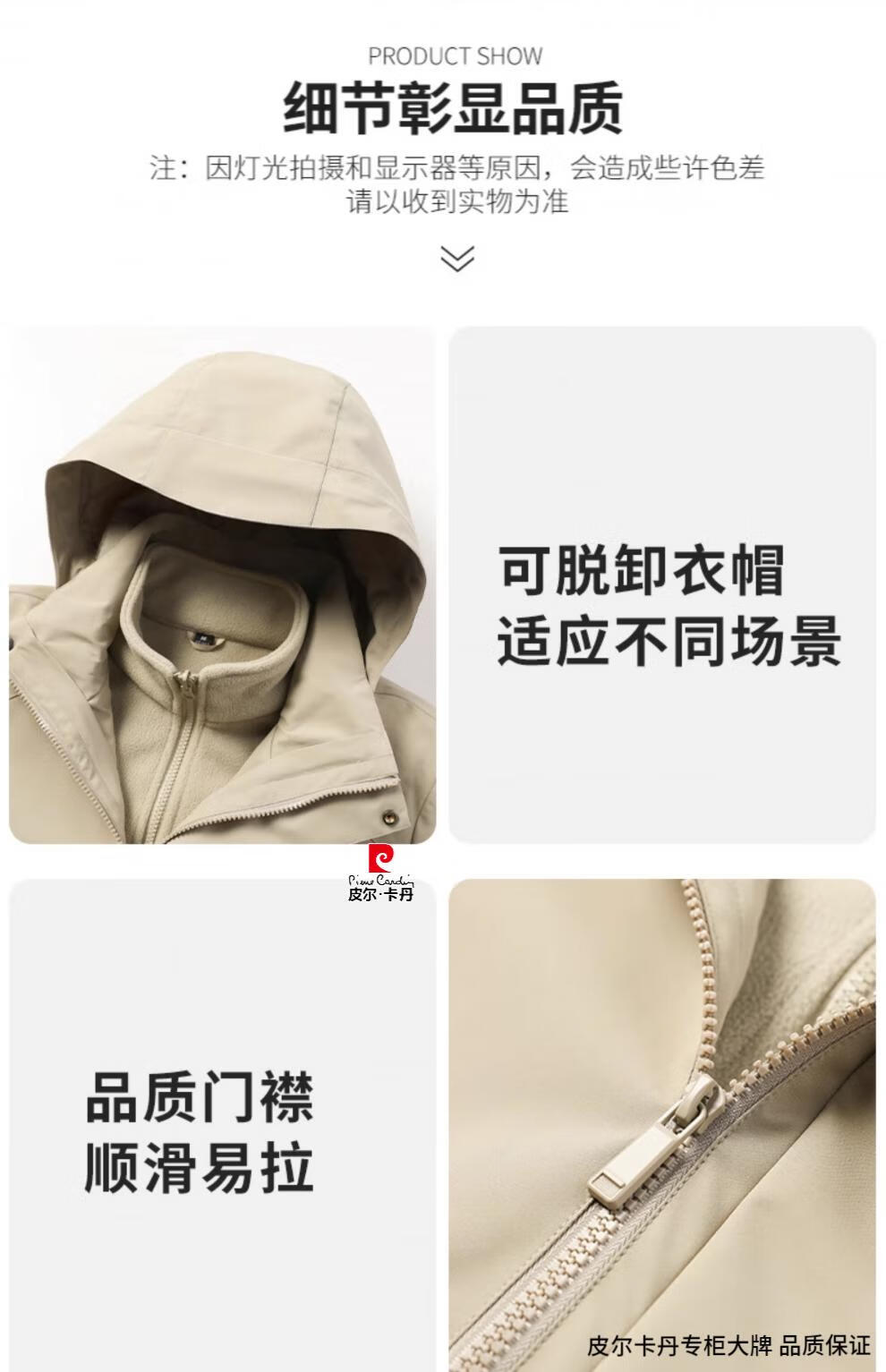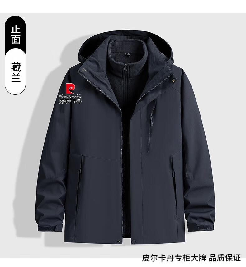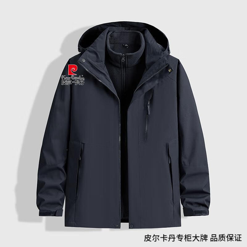 Pierre Cardin 3-in-1 Jacket Men's Removable Liner Autumn and Winter Dad Jacket Large Size Velvet Thickened Jacket Men Navy Blue L