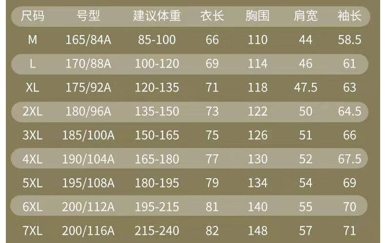 China (cm) 165 / 88-90 170 / 96-98 175 / 108-110 180 / 118-122 185 / 126-130