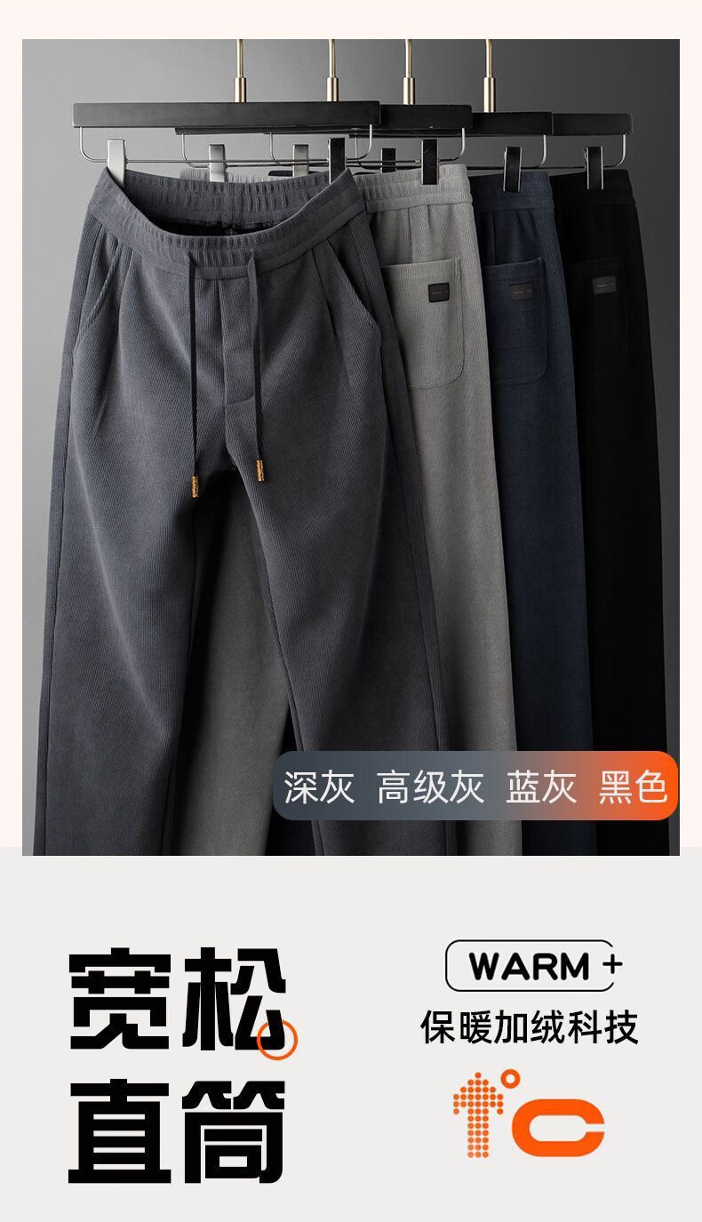 Pierre Cardin Chenille sweatpants men's 2025 autumn new casual pants straight-leg loose middle-aged corduroy dad pants men gray autumn style M recommended 90-110Jin Jin equals 0.5 kg