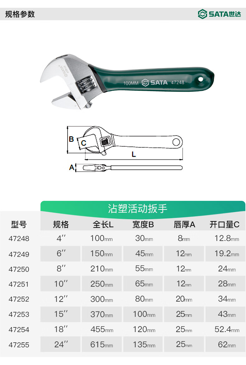 Star Small Wrench Mini Adjustable Wrench Small Open Adjustable Wrench Genuine Trumpet 4/6/8/10/12 Inch 24 Plastic Handle (Opening Size 67mm)/47255
