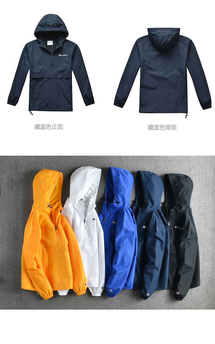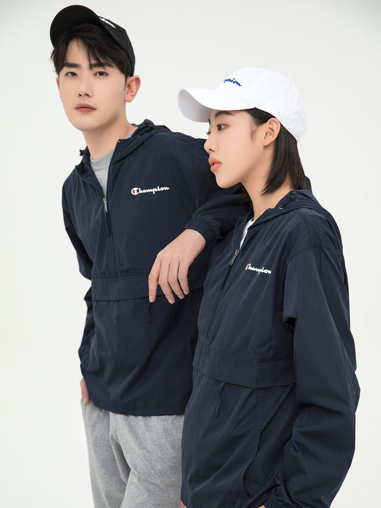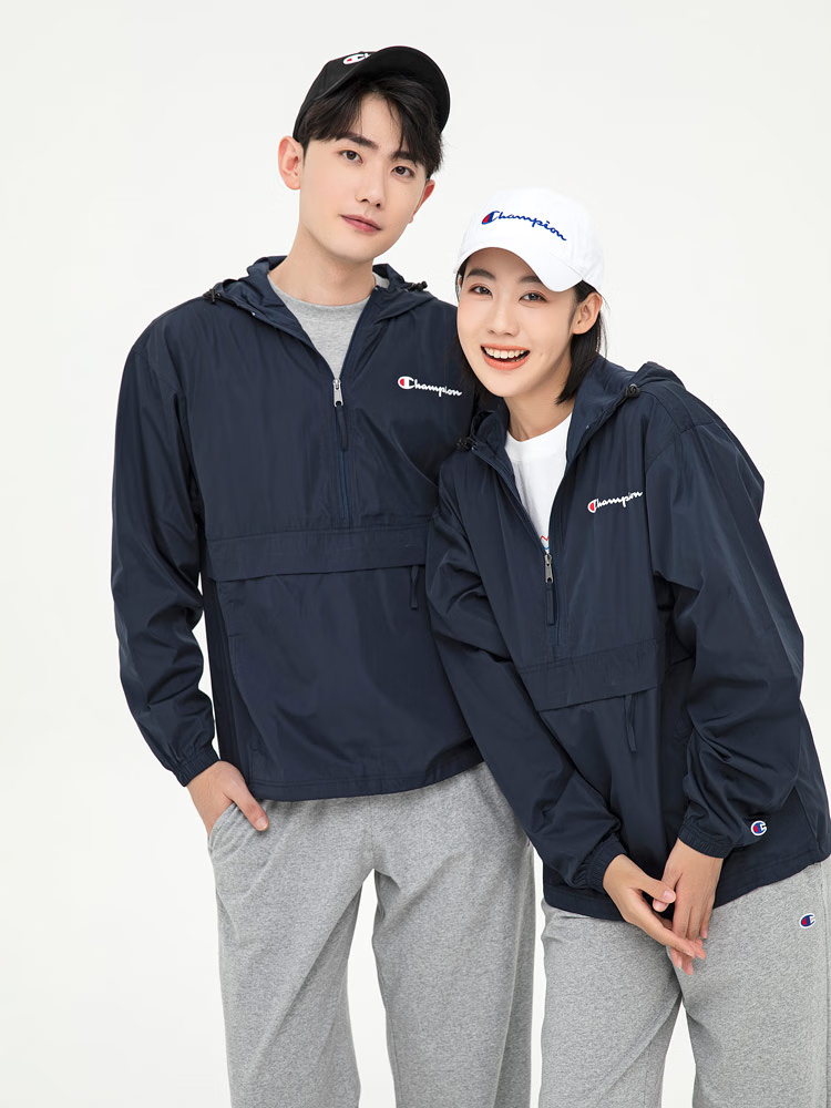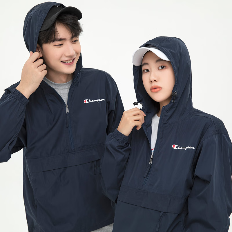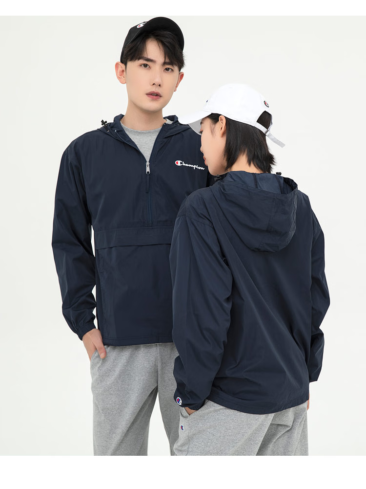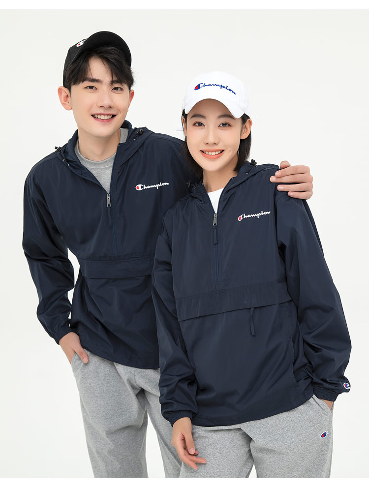 Champion U.S. Champion Windproof Men's and Women's Unisex Half-Zip Windbreaker Jacket Top Pullover Jacket Loss Clearance Navy Blue Thin S 155-165cm/45-60kg