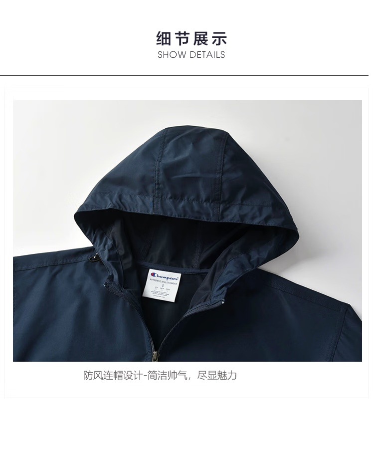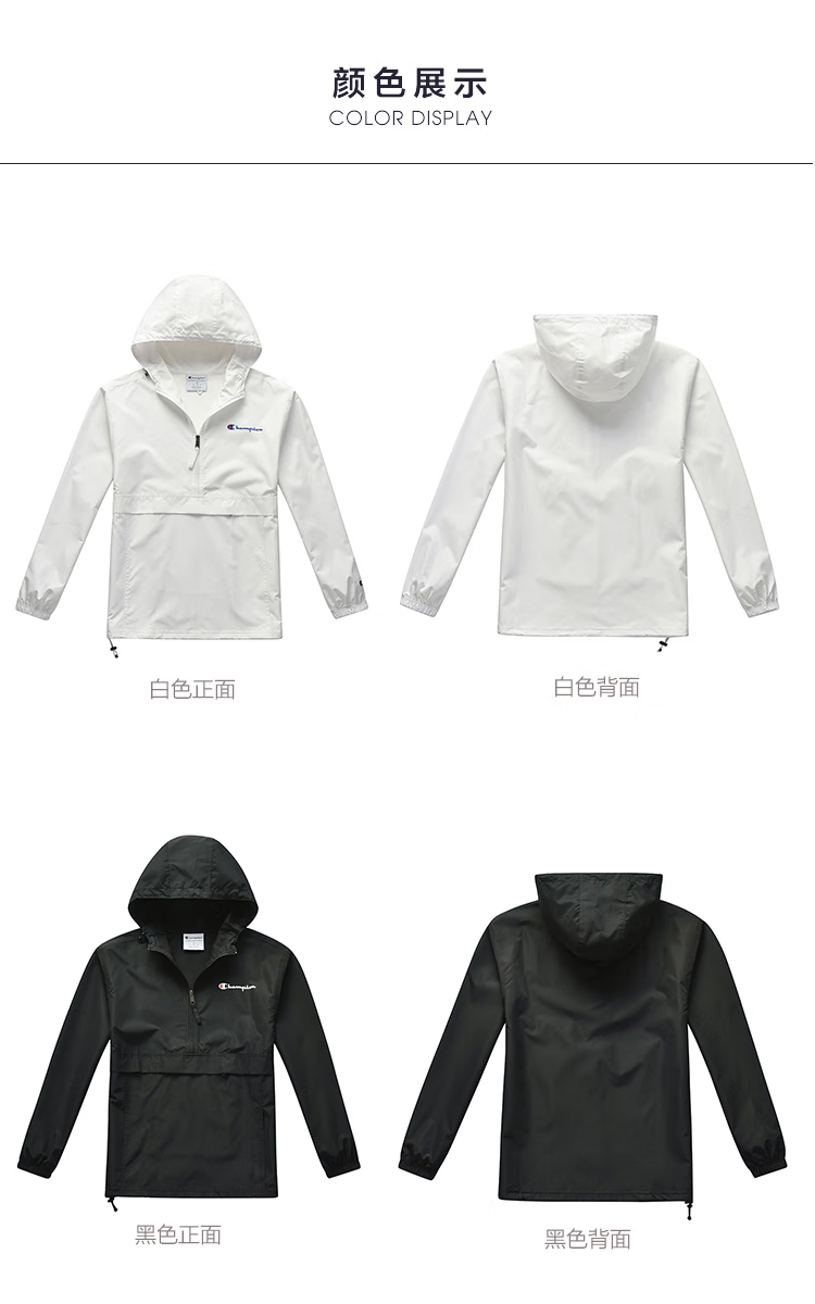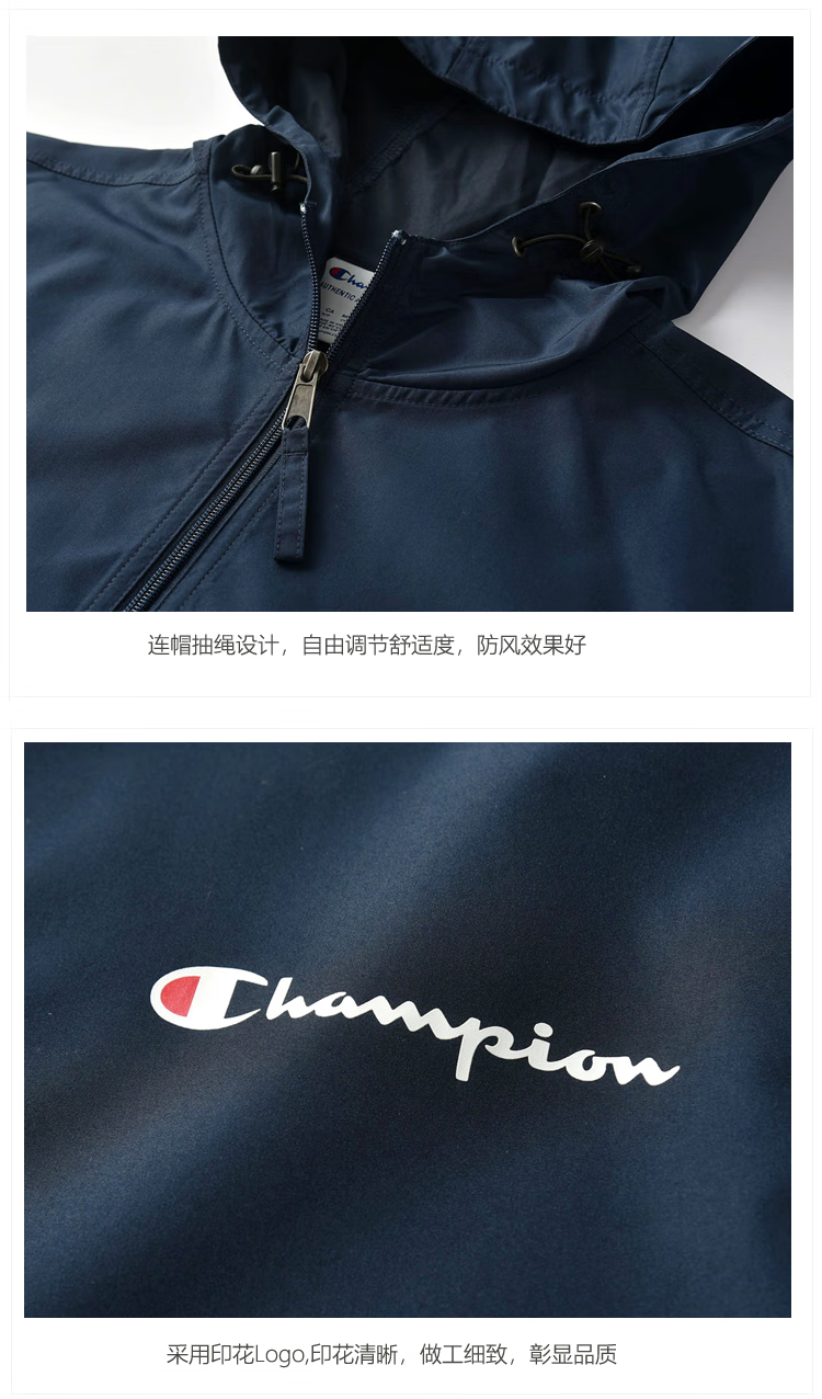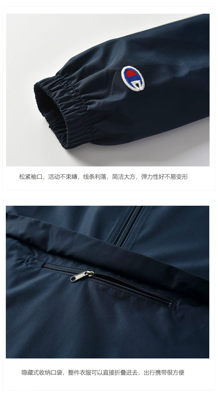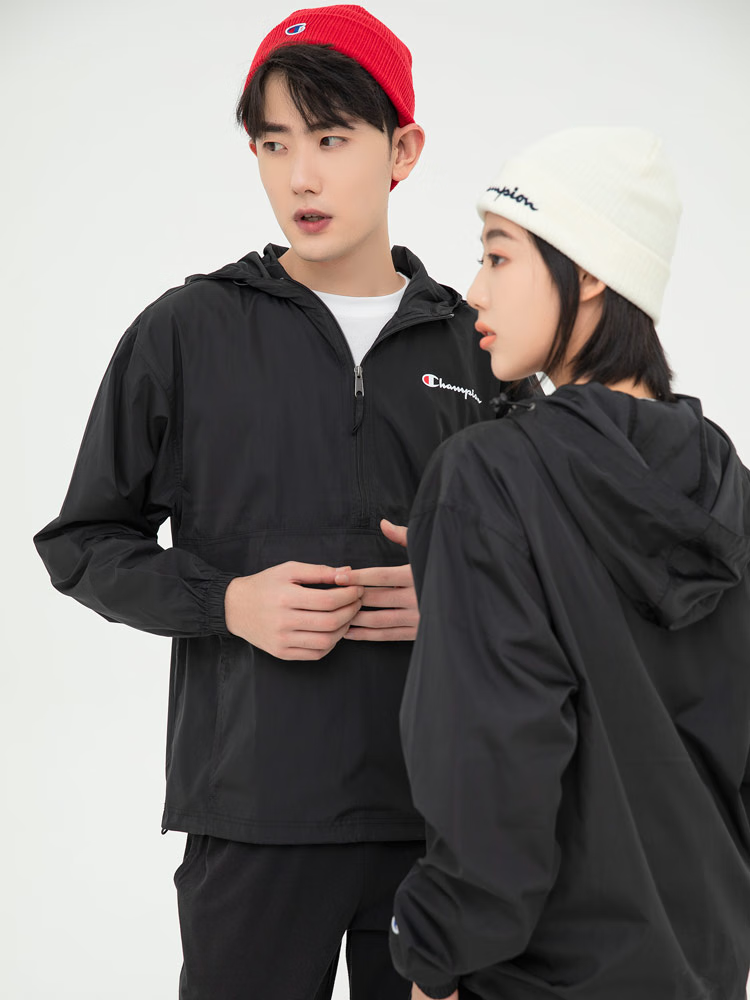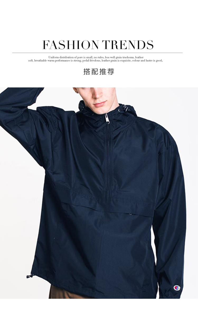 Champion U.S. Champion Windproof Men's and Women's Unisex Half-Zip Windbreaker Jacket Top Pullover Jacket Loss Clearance Navy Blue Thin S 155-165cm/45-60kg