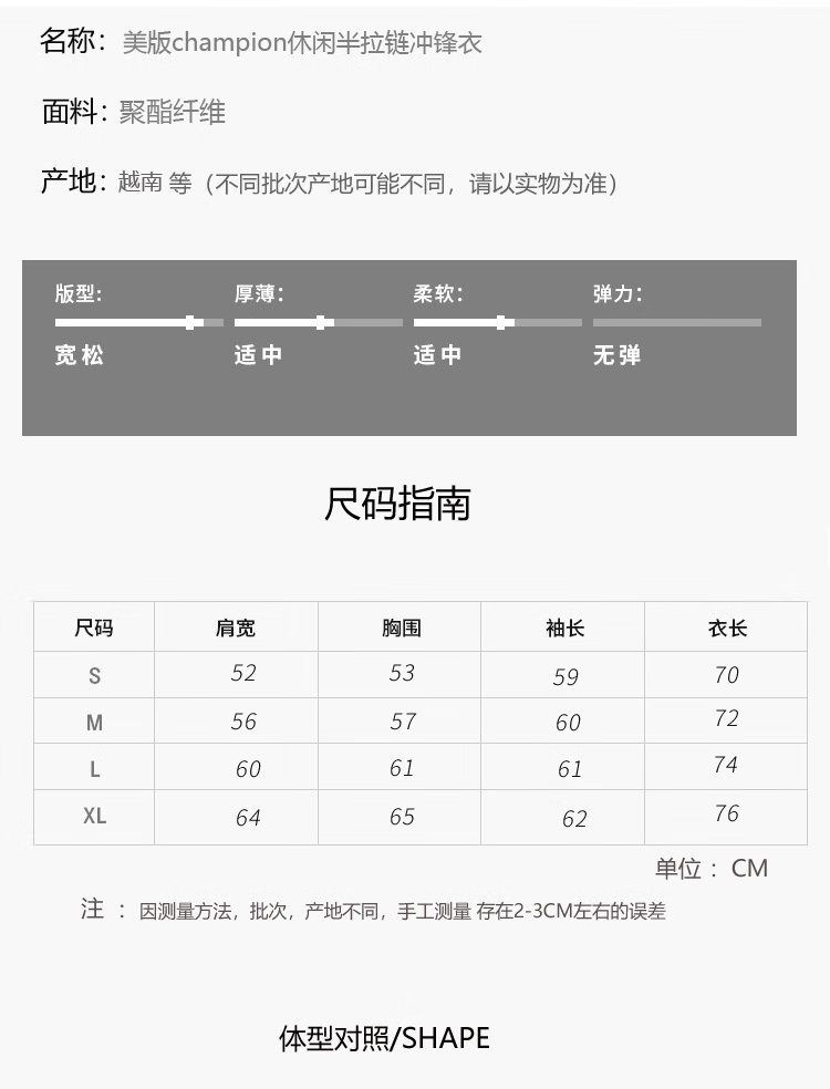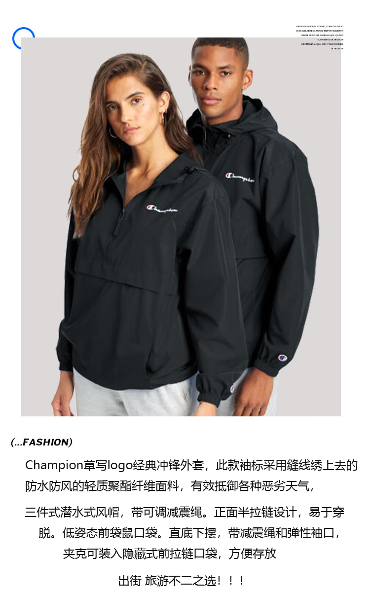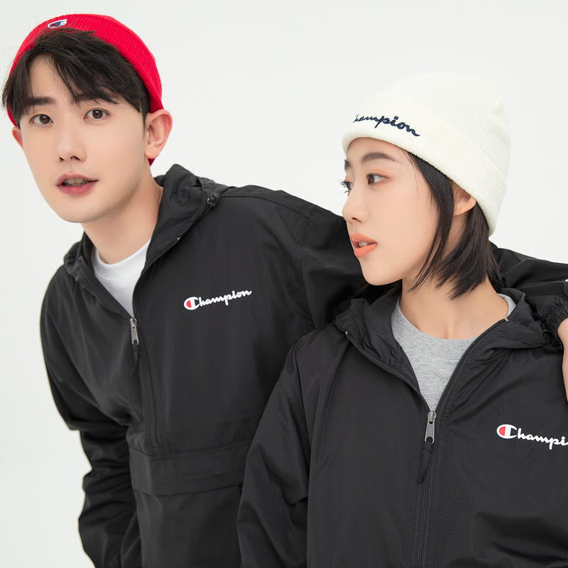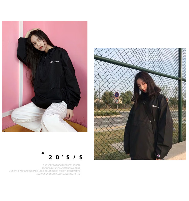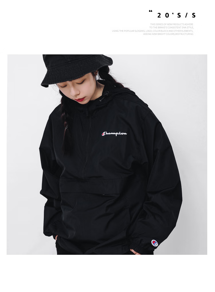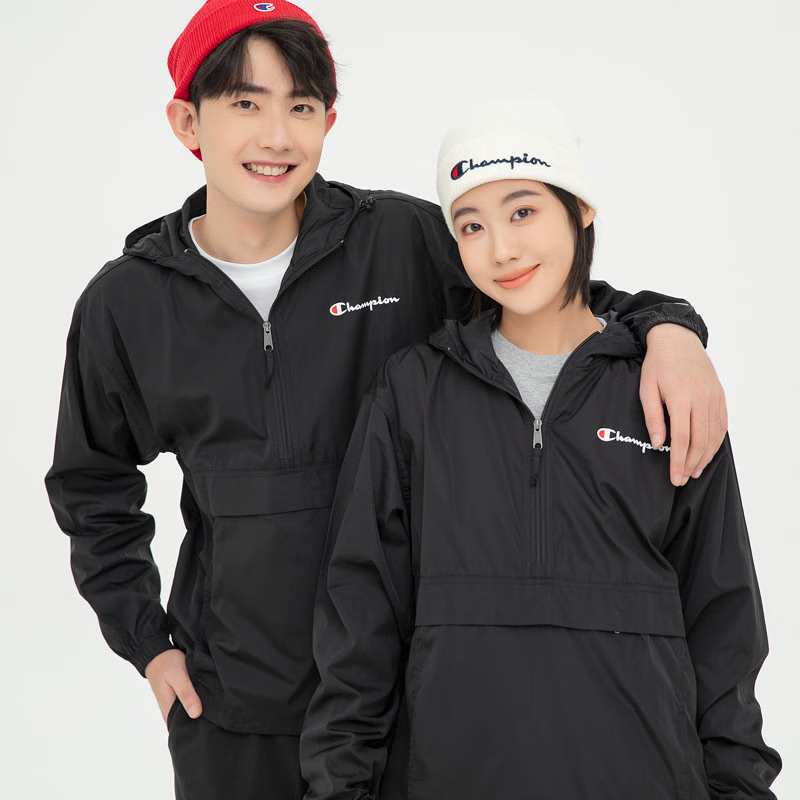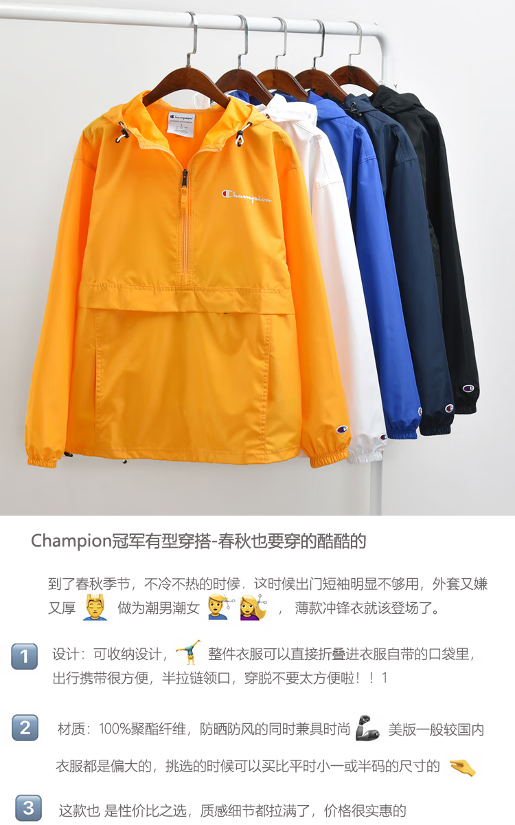Champion U.S. Champion Windproof Men's and Women's Unisex Half-Zip Windbreaker Jacket Top Pullover Jacket Loss Clearance Navy Blue Thin S 155-165cm/45-60kg