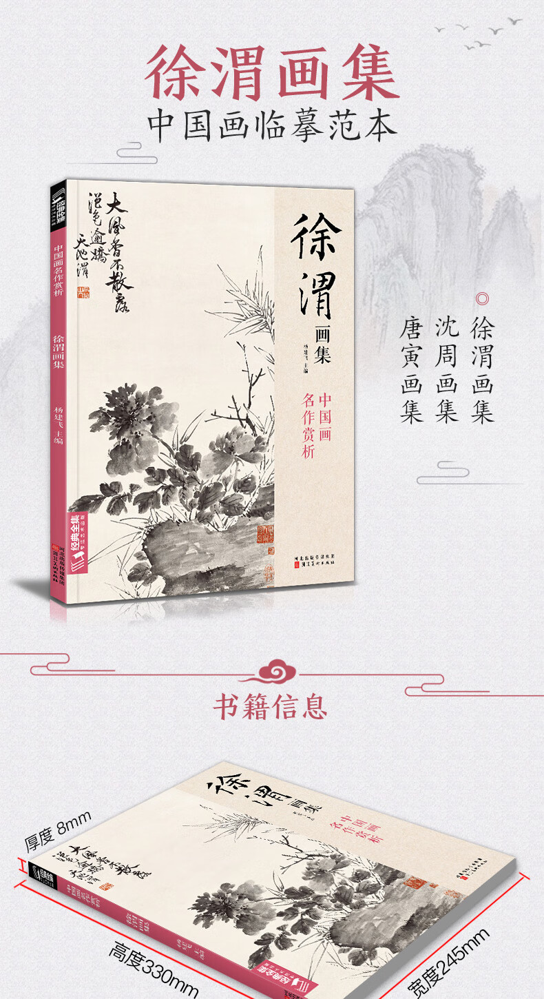 Complete collection of classics, Xu Wei's painting collection, 8-page Chinese painting copy album, freehand splash-ink ink Chinese painting miscellaneous flower and bird painting technique textbook, Cheng Qingqing's copy of this album, beginner's appreciation of flower masterpieces, editor-in-chief Yang Jianfei, no color, no Specifications