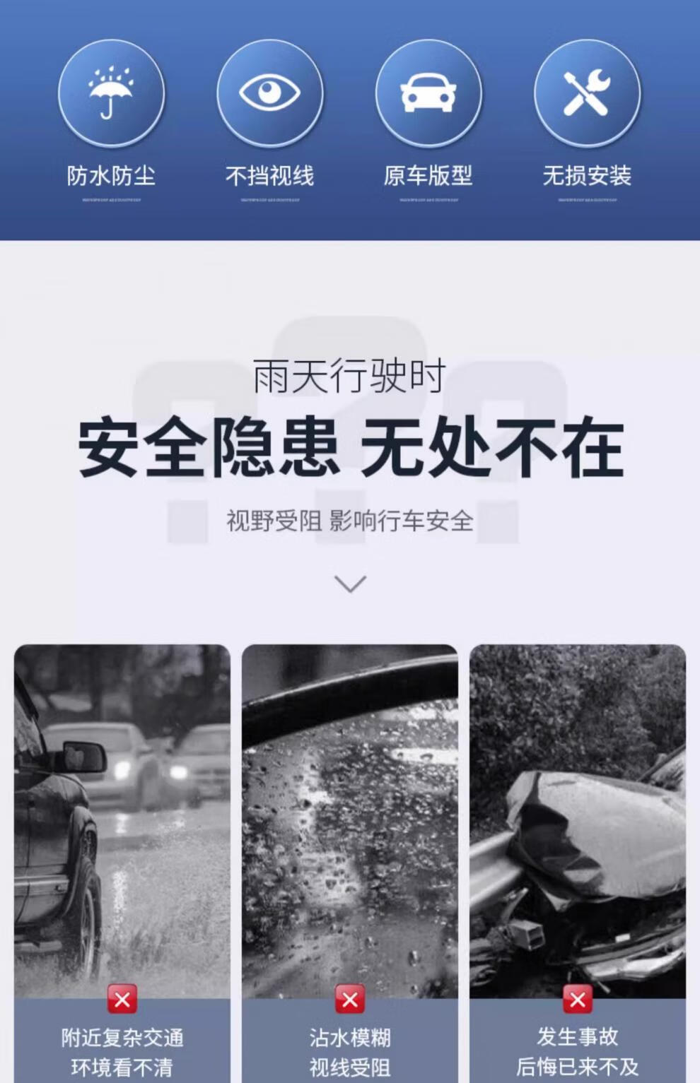 Car rearview mirror, rain shield, reverse mirror, rain shield, reflector, rainproof artifact, widened universal rain shield, Volkswagen snap-on rain shield (1 pair)