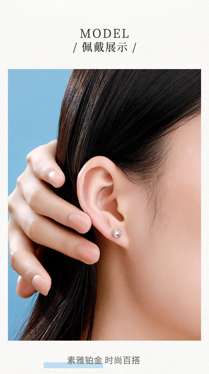 Zokai platinum earrings for women PT950 car flower beads platinum earrings earrings ear piercings to make your ears look bigger as a gift for your girlfriend E03603 small hemisphere about 0.97g More refund less supplement