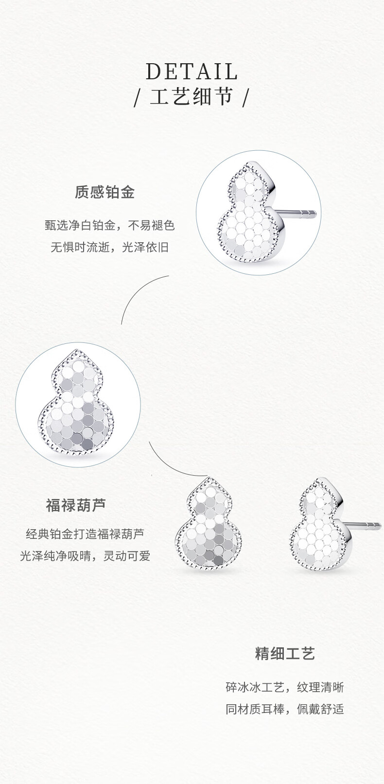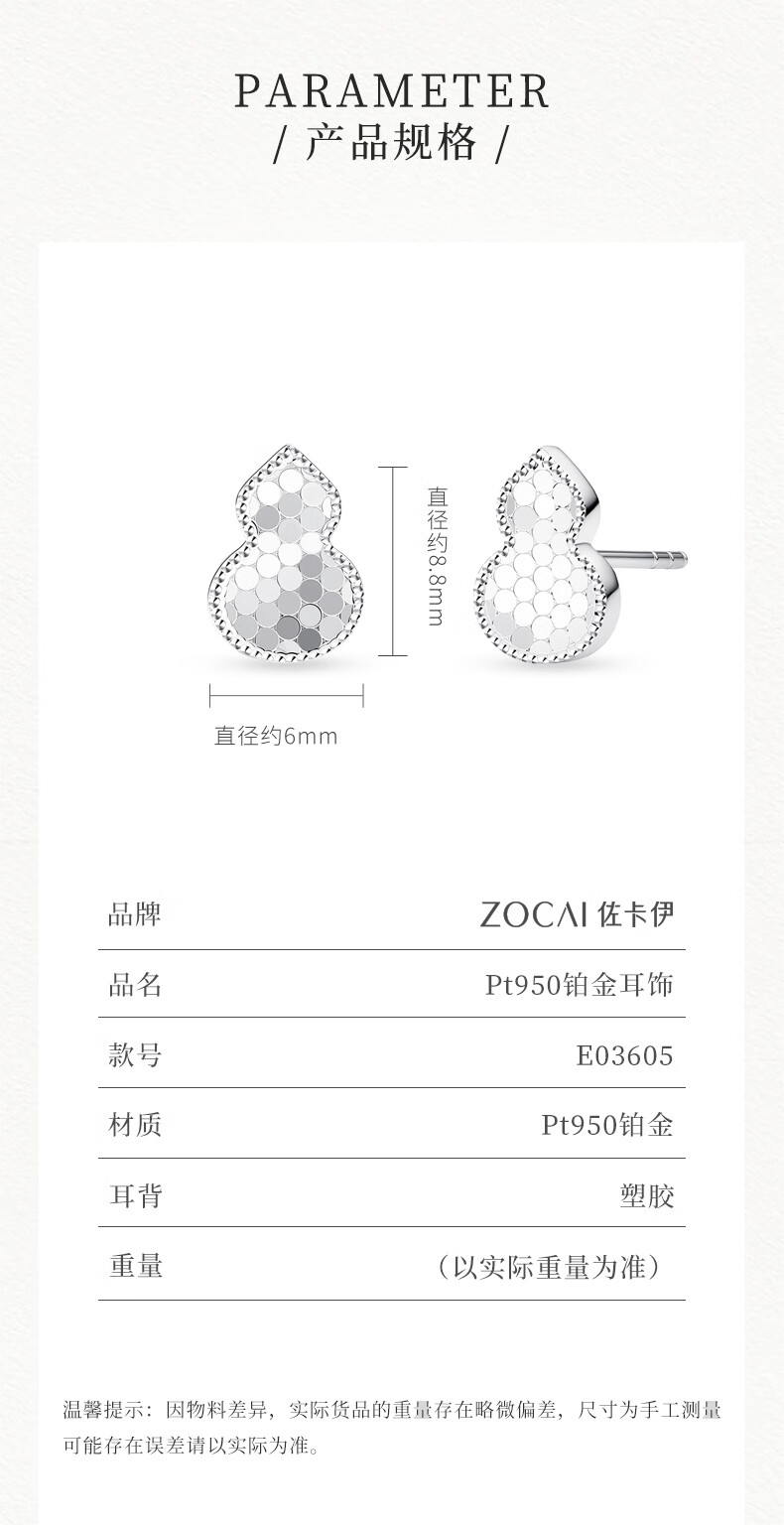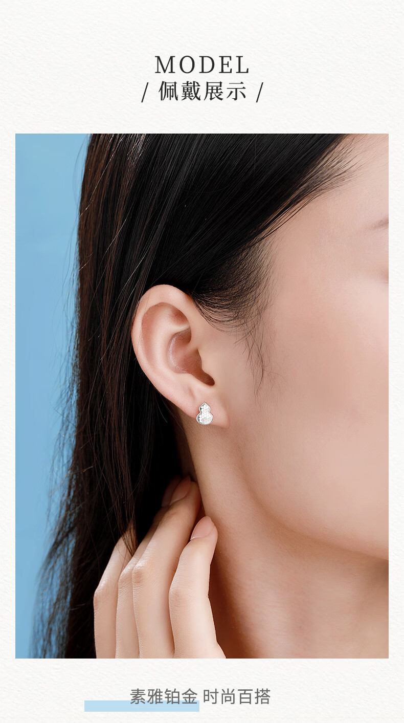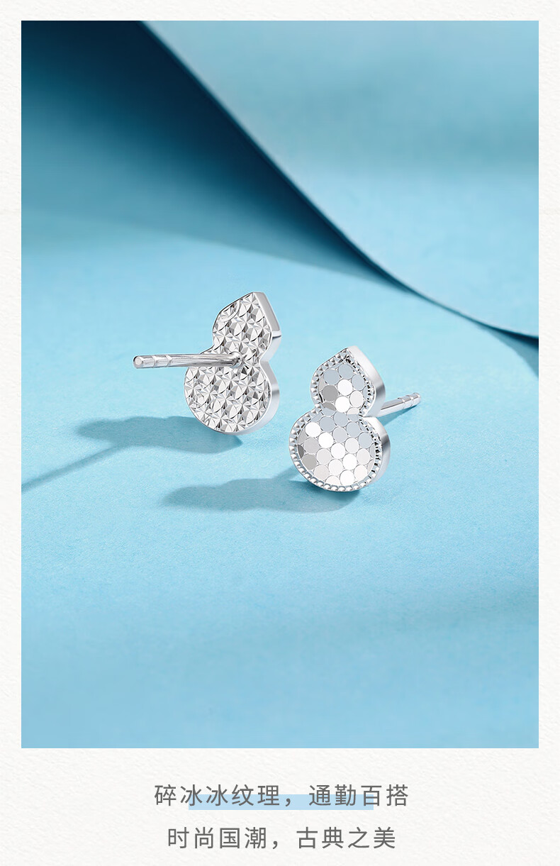 Zokai Fulu gourd PT950 platinum earrings 2025 new platinum crushed ice ice craft earrings gift, about 2.25g, more refund, less payment