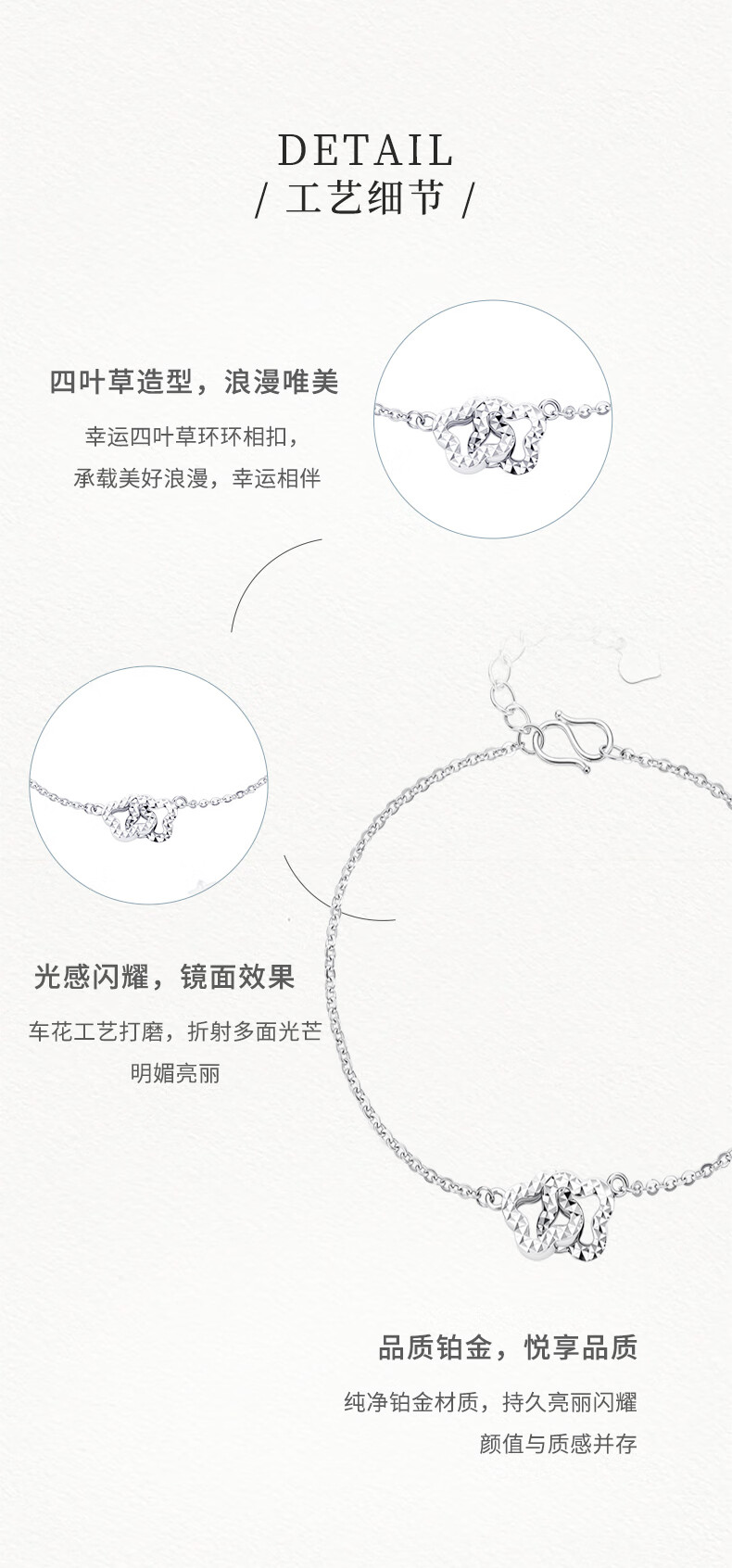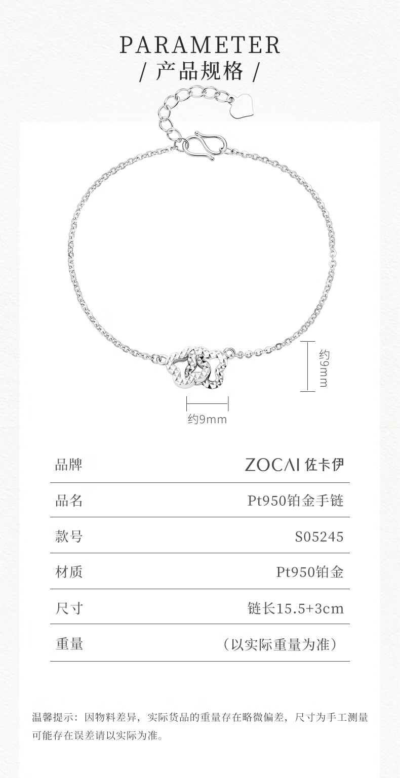 Zokai lucky four-leaf clover platinum bracelet Pt950 platinum chain bracelet 2025 new style gift for girlfriend, about 3.68g, more refund, less compensation