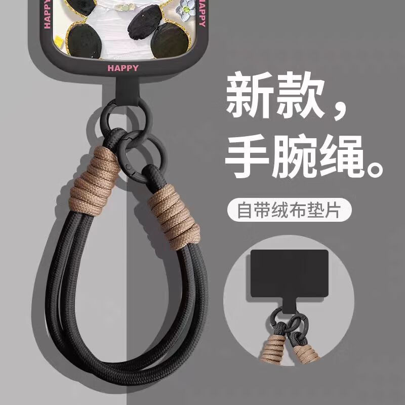 Yuanqi Dopamine mobile phone lanyard wrist pendant advanced double buckle lanyard mobile phone case lanyard simple anti-lost multi-functional anti-fall wrist rope women's water bottle water cup children's smoke blue double short hand rope + velvet gasket of the same color