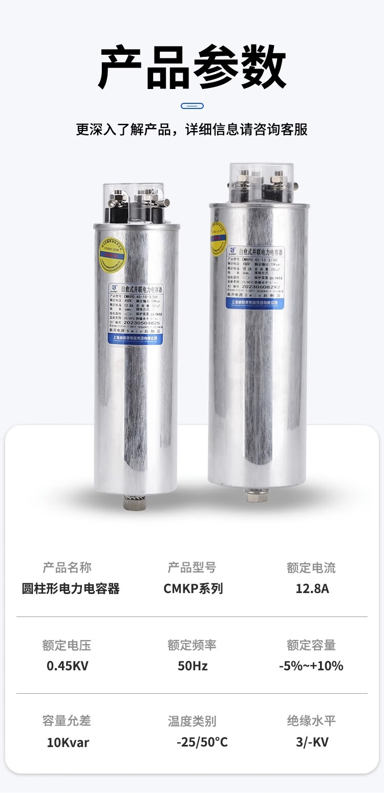 Viscon cylindrical self-healing parallel compensation power capacitor AMKP 0.48-15-3 (SH) filter CMKP0.525-10-3