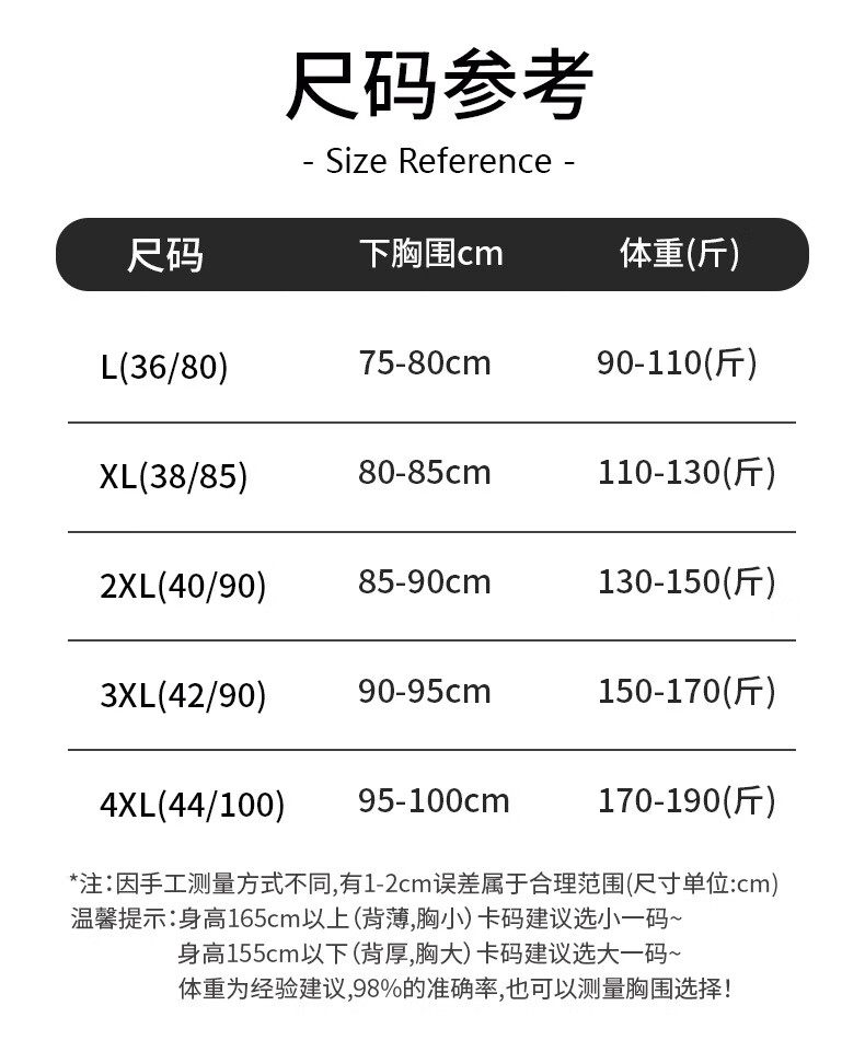 China (cm) 165 / 88-90 170 / 96-98 175 / 108-110 180 / 118-122 185 / 126-130