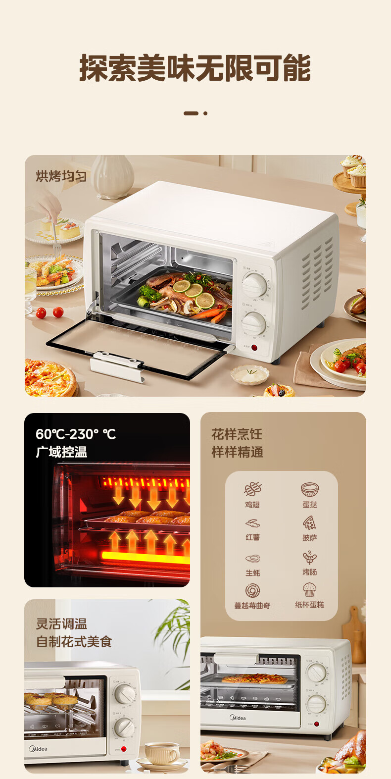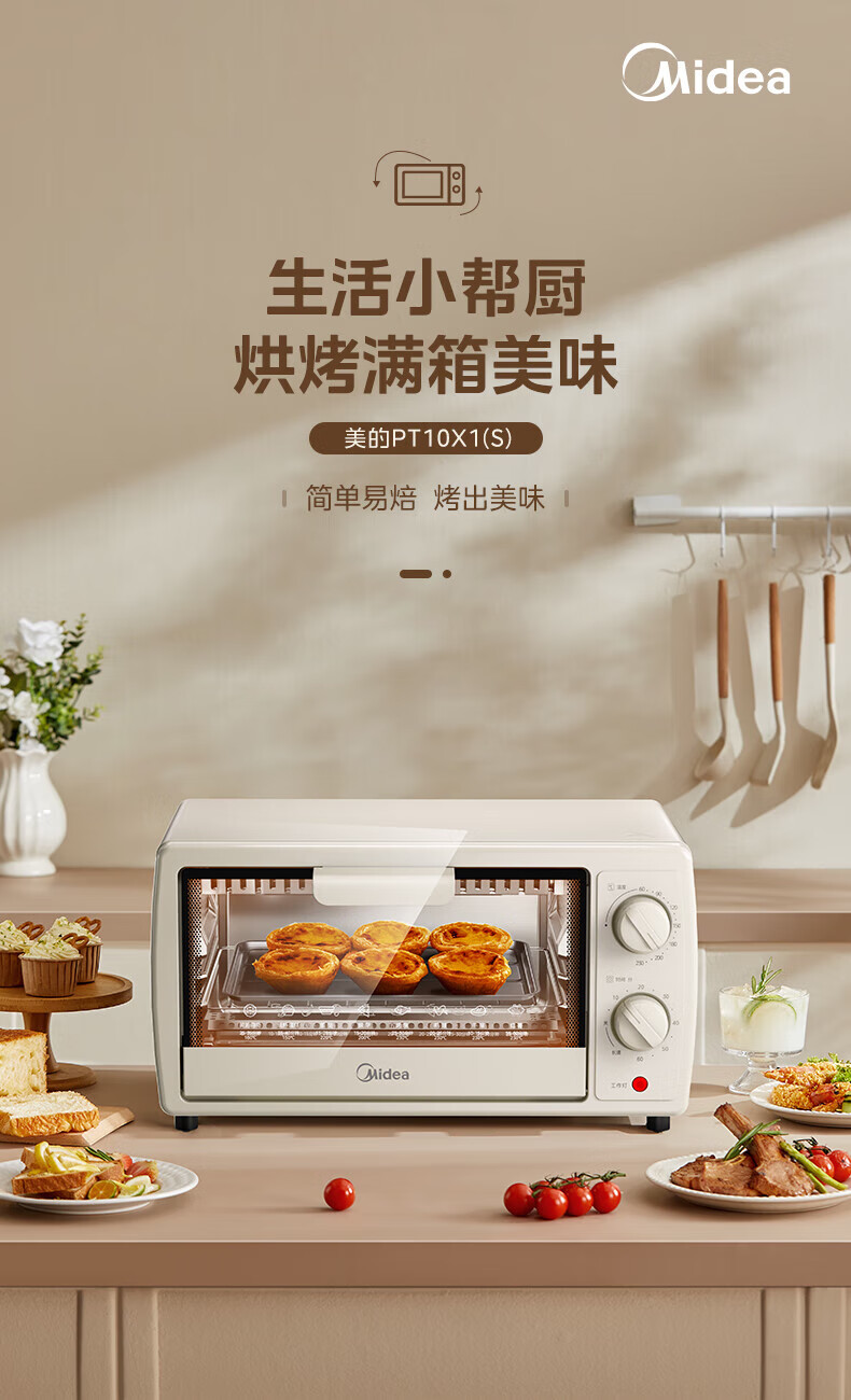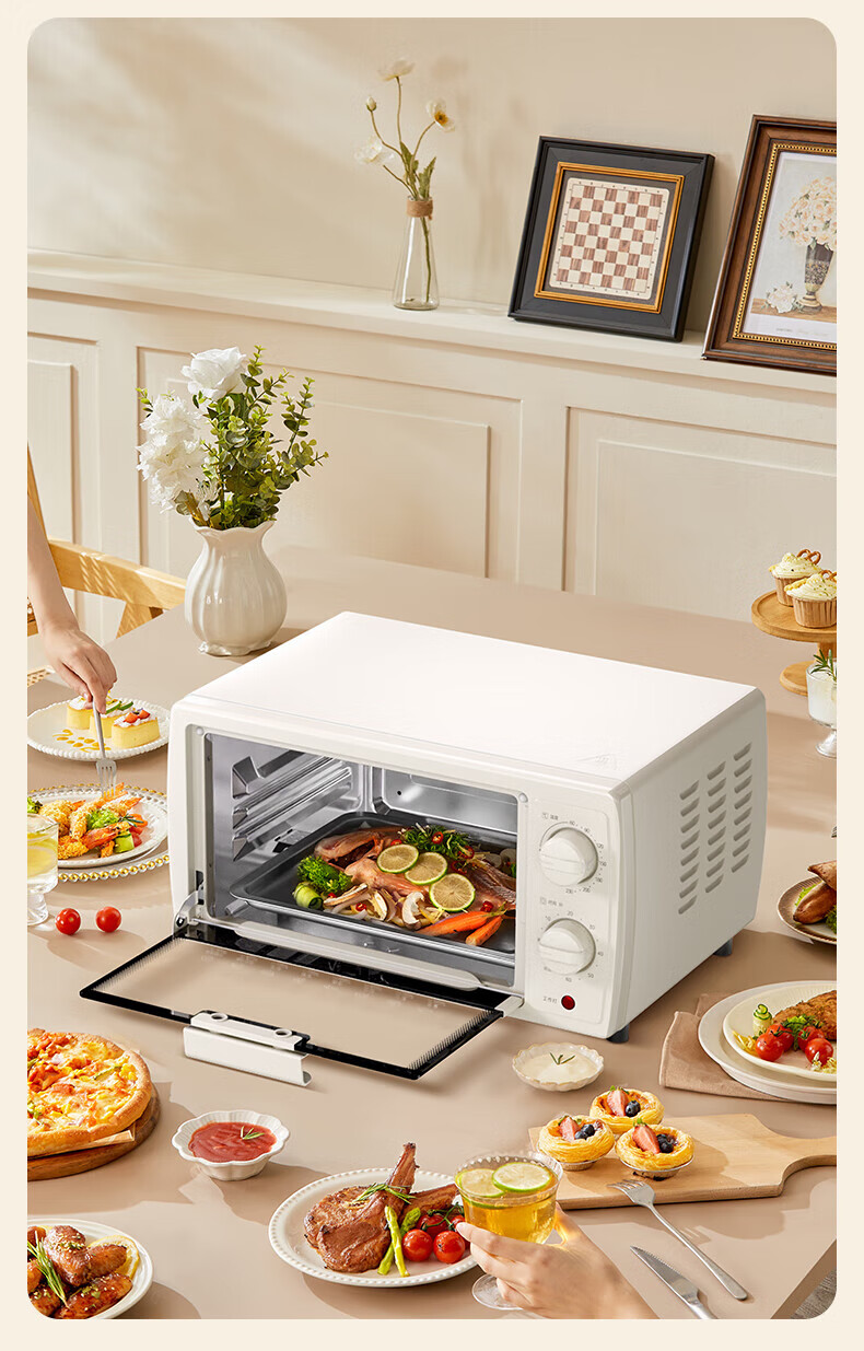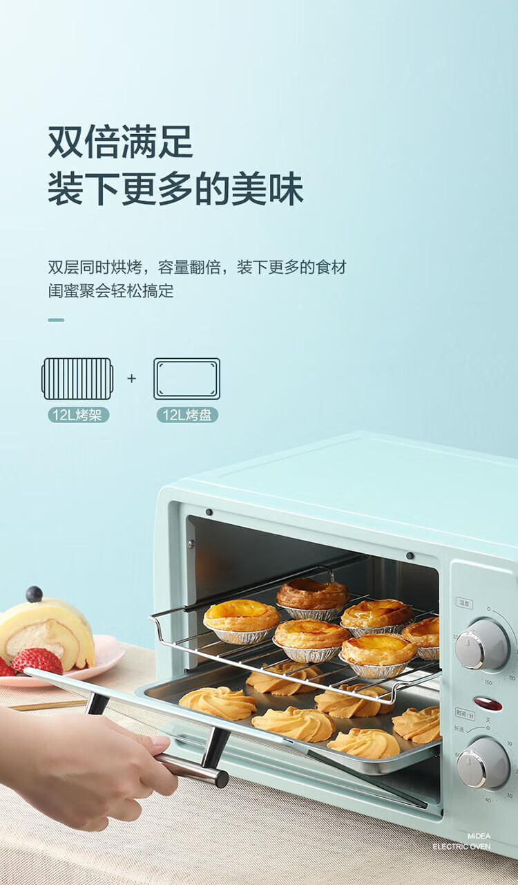 Midea household multifunctional electric oven with mechanical control, professional baking, easy operation, baking cakes and breads PT12X3, hot air baking and frying 12L