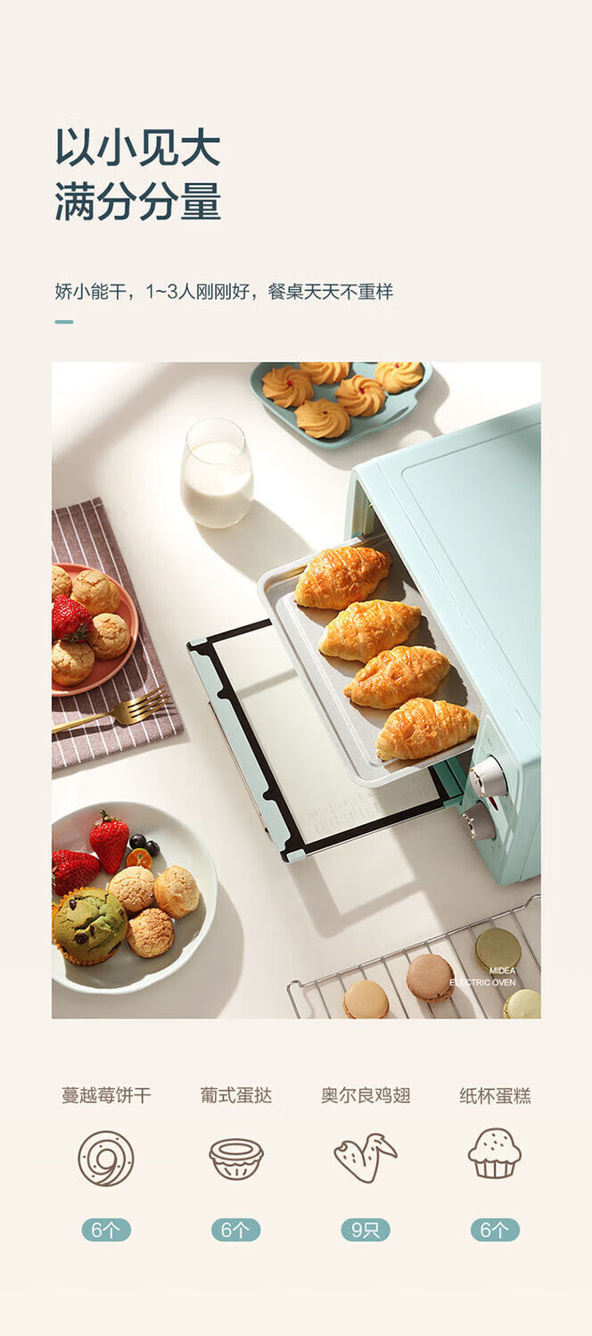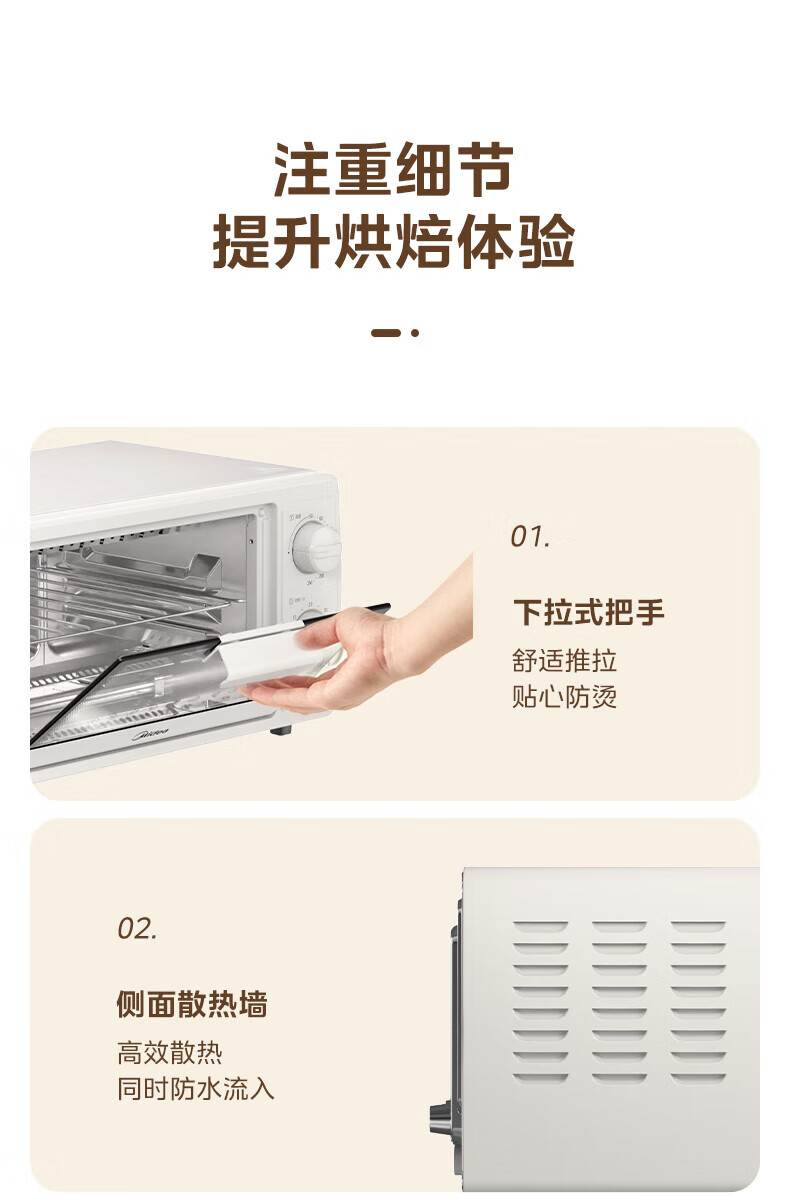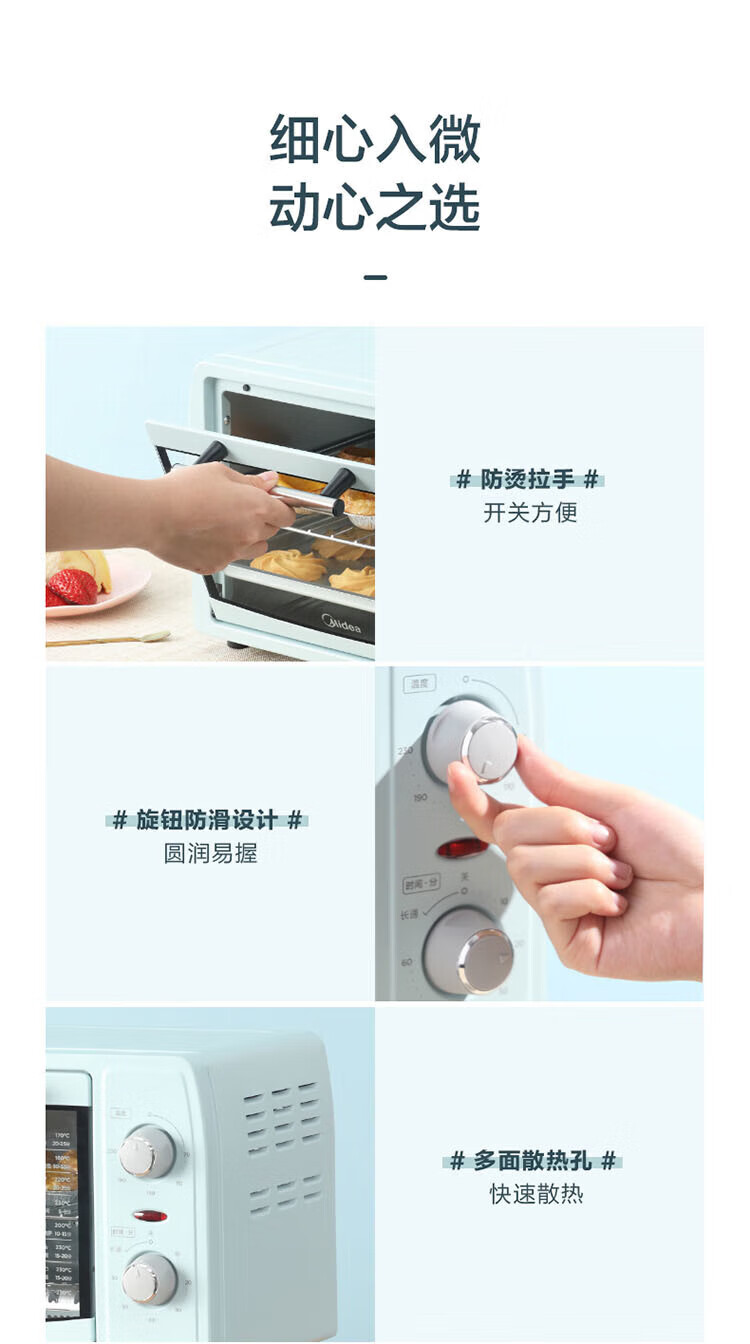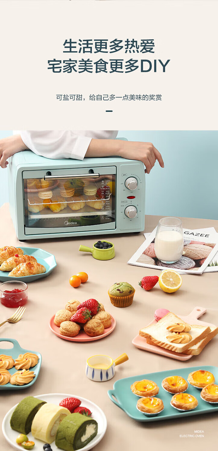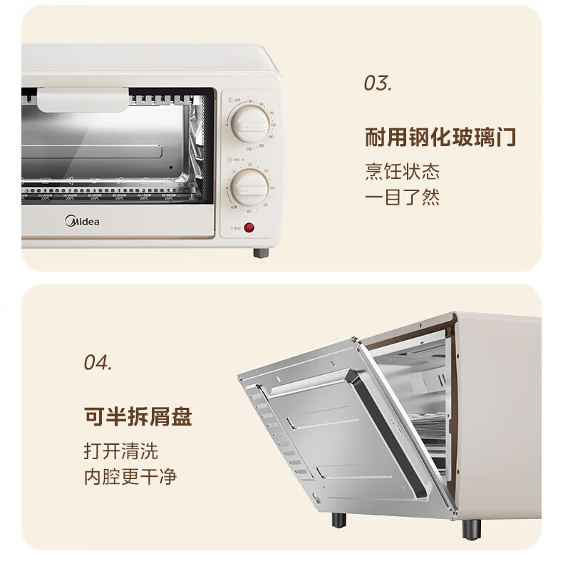 Midea household multifunctional electric oven with mechanical control, professional baking, easy operation, baking cakes and breads PT12X3, hot air baking and frying 12L