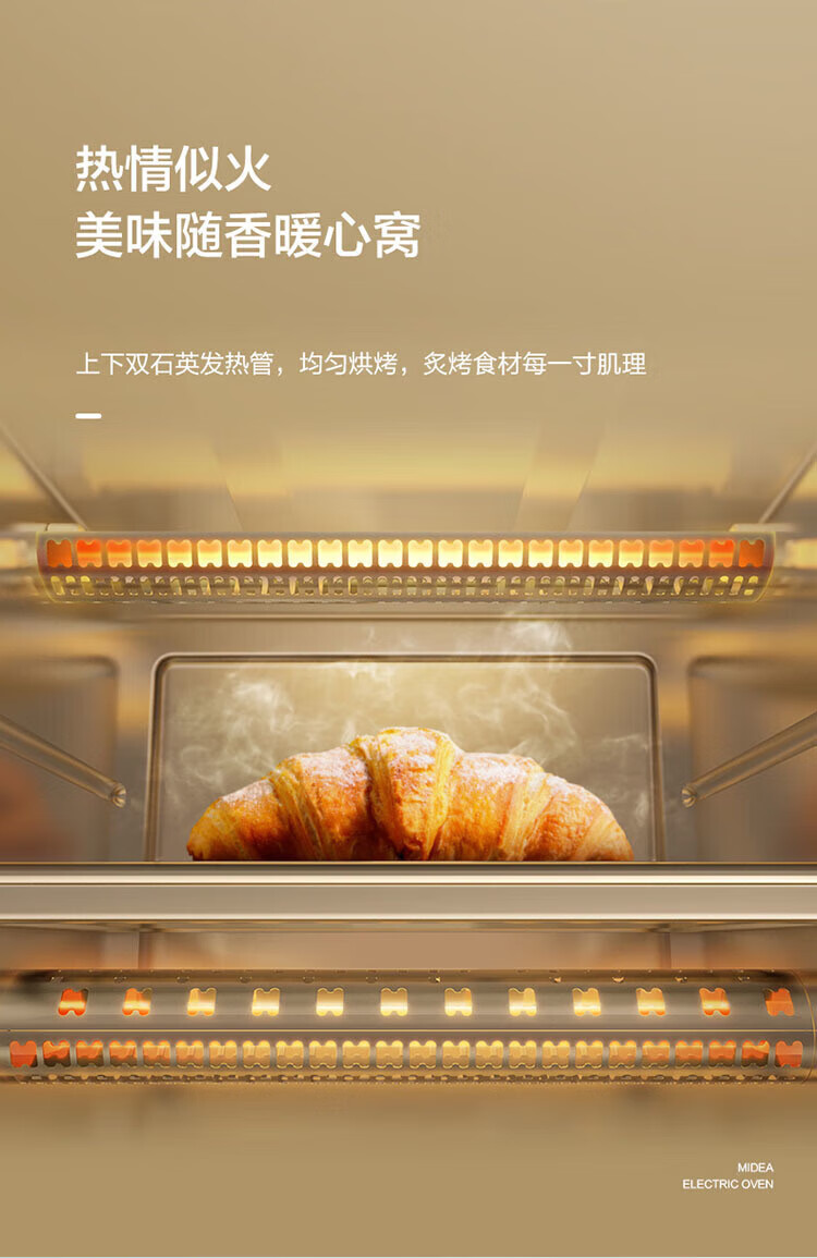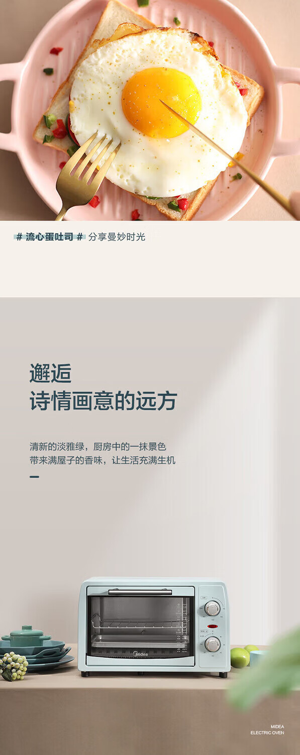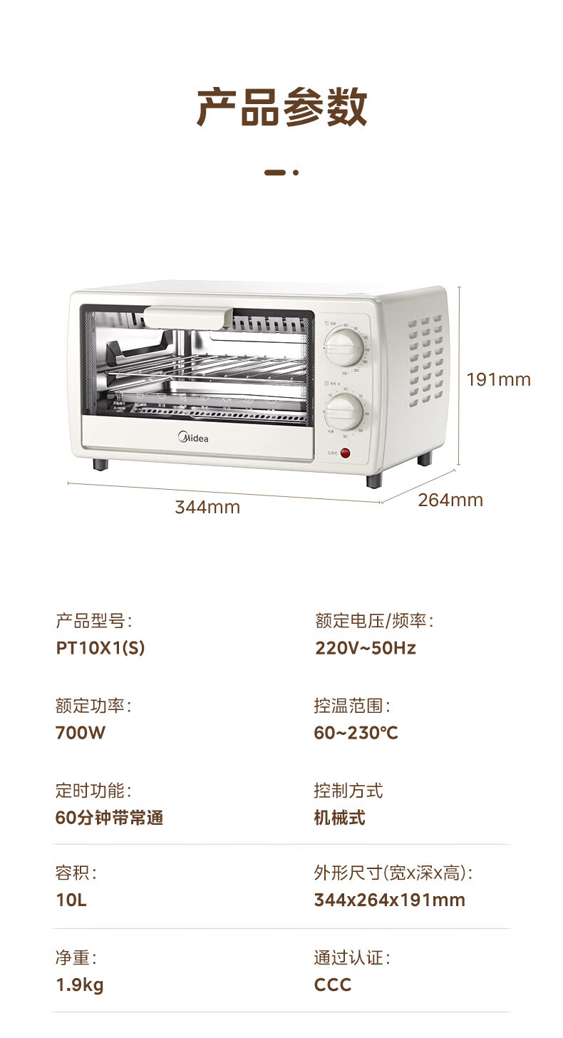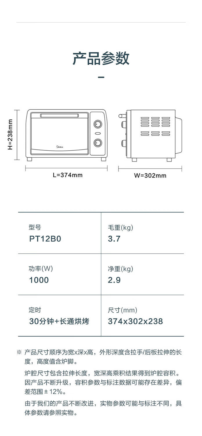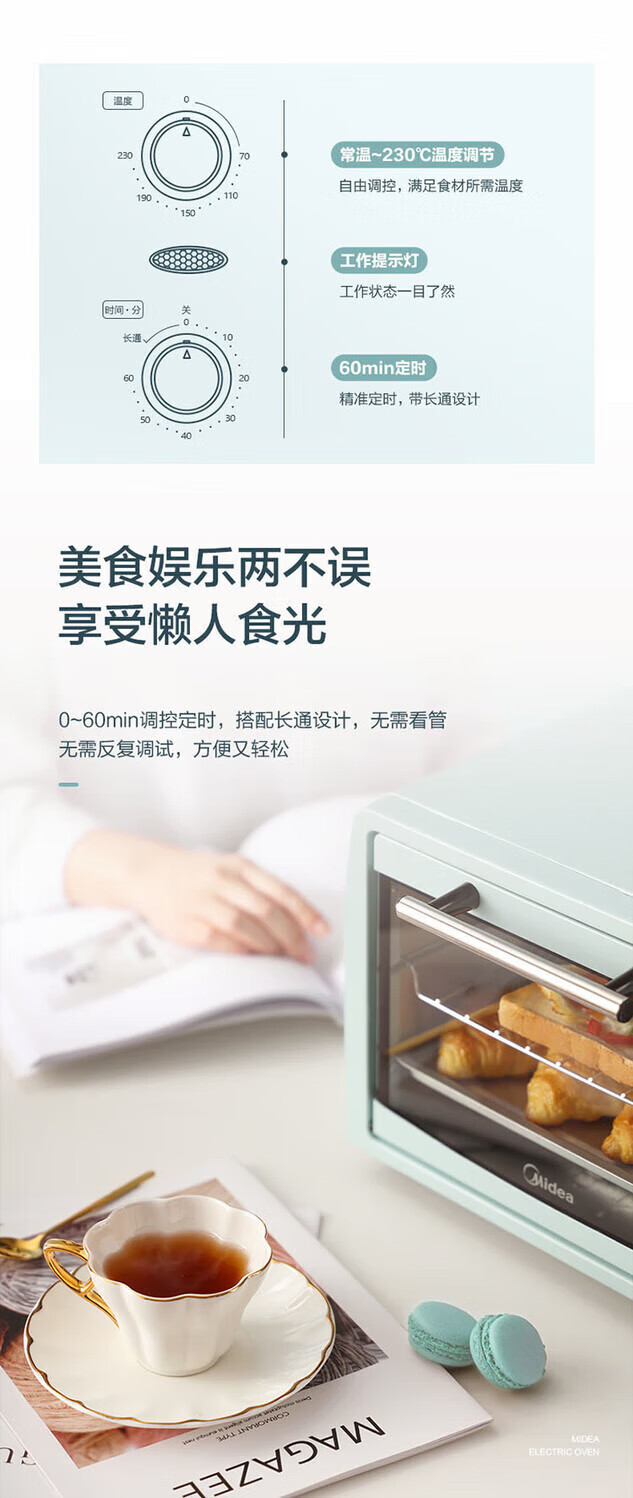 Midea household multifunctional electric oven with mechanical control, professional baking, easy operation, baking cakes and breads PT12X3, hot air baking and frying 12L