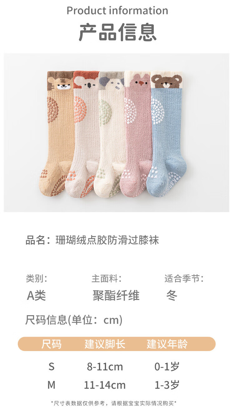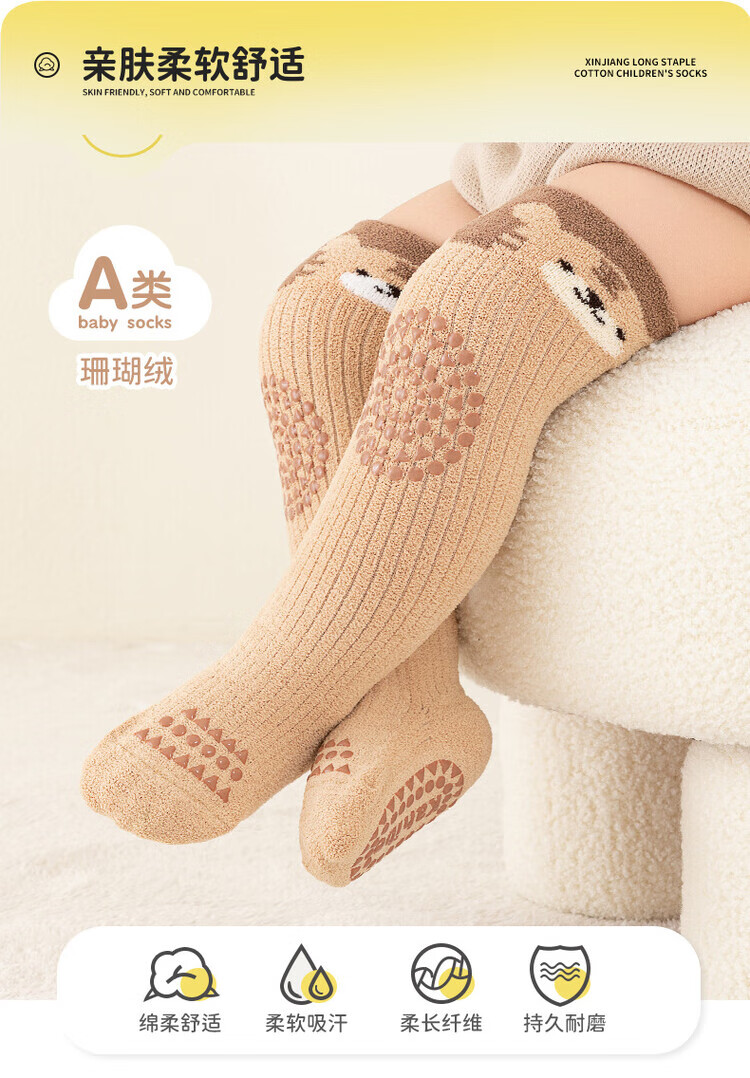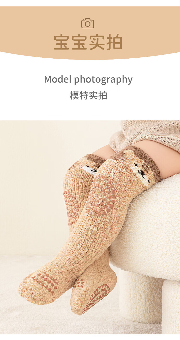 Autumn and winter thickened baby stockings, baby socks, children's over-the-knee socks, class A stockings, non-slip toddler floor socks, orange koala, 1-3 years old, M size, 1-3 years old