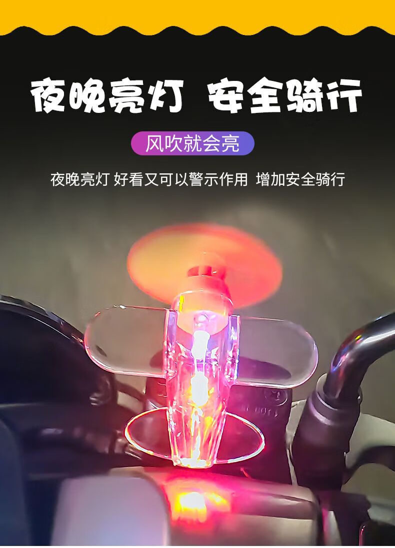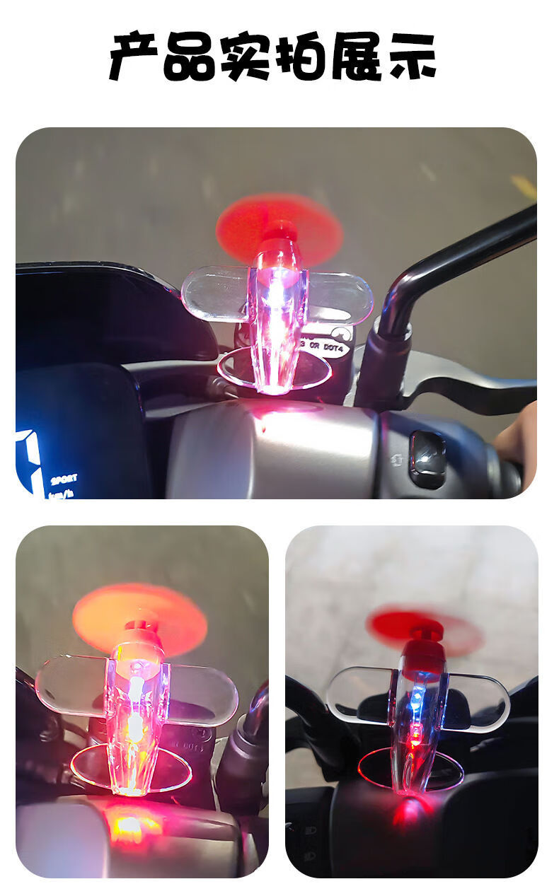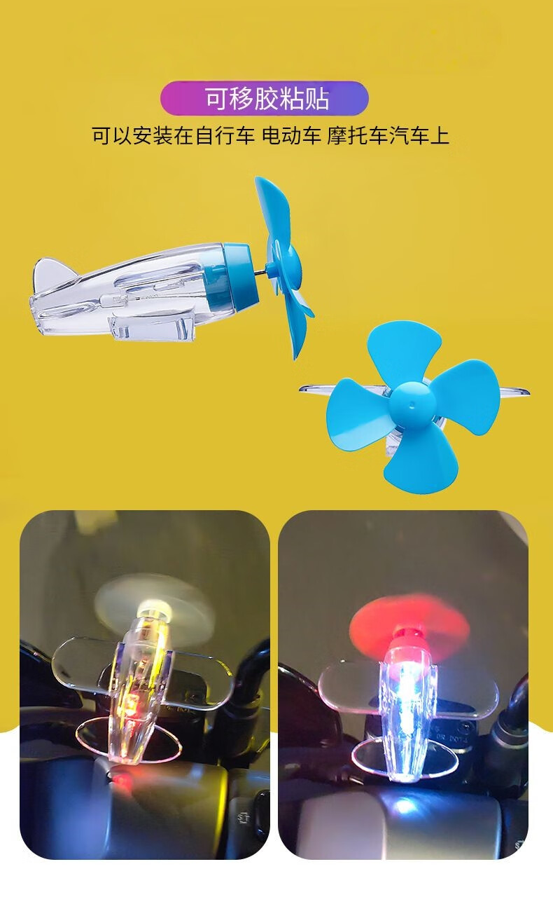 Wind-powered small plane, electric vehicle, motorcycle, wind power, LED light-emitting colorful lights, car-mounted rotating ornaments, decorative riding wind-powered light-emitting small plane, mini FJ01, red, wind-driven + cool light effects
