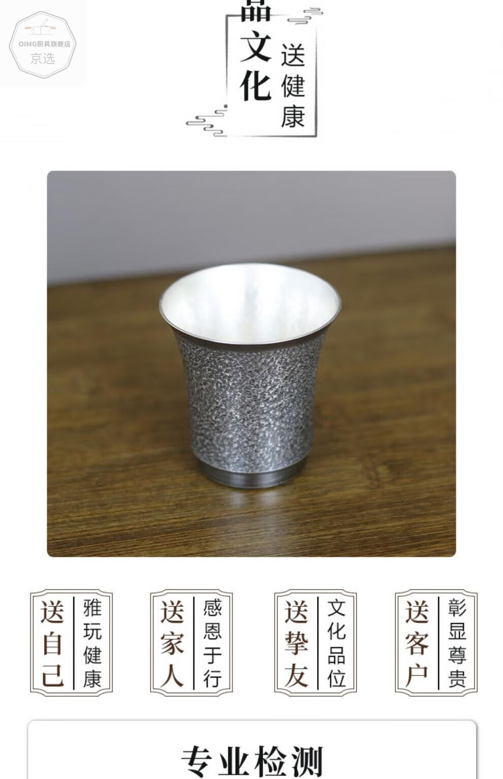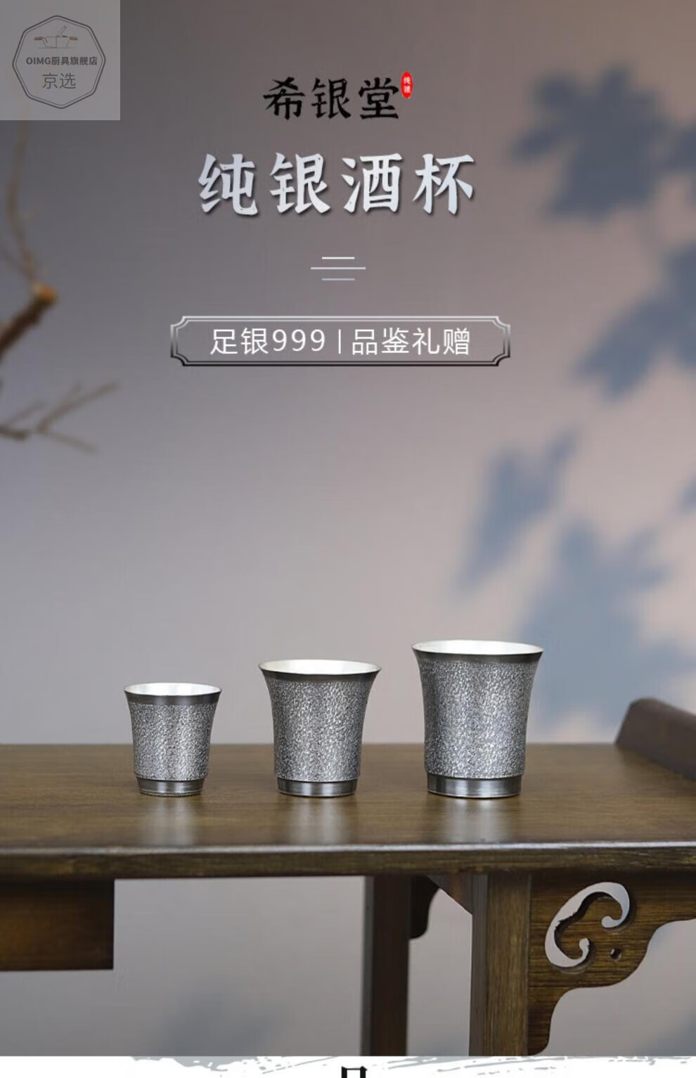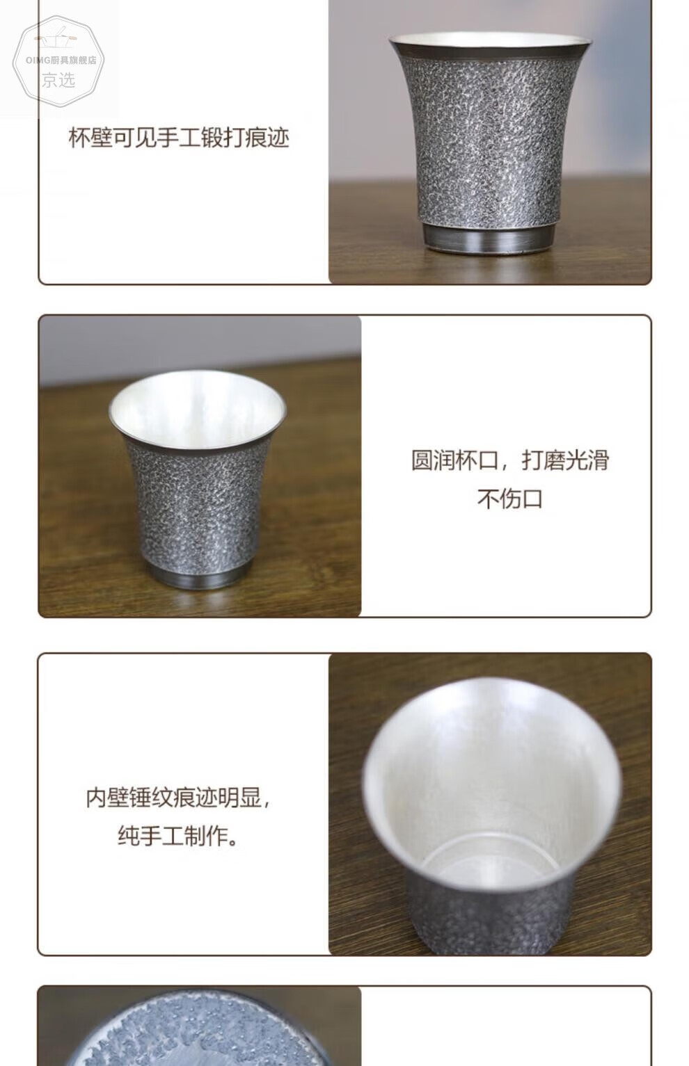 ZHIO old hammer pattern wine cup sterling silver 999 handmade Chinese white wine cup master cup home gift medium 87g+certificate+gift box 100ml