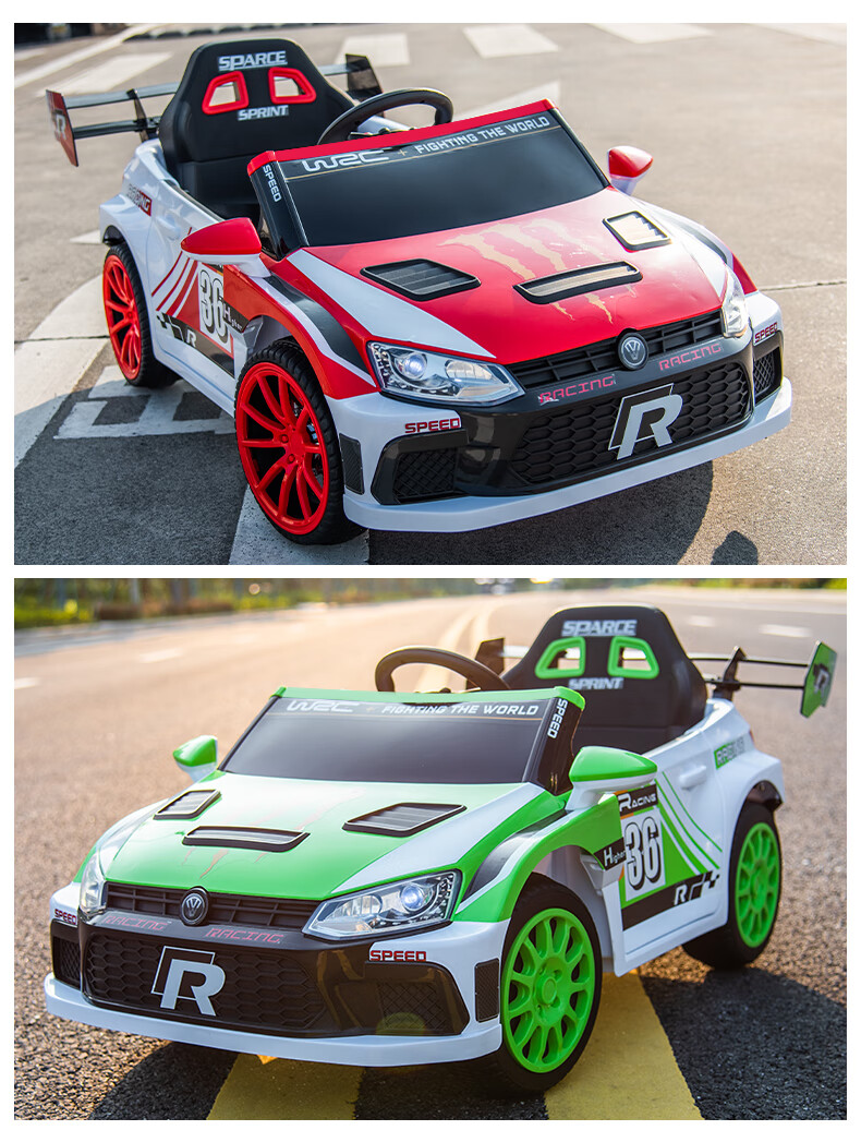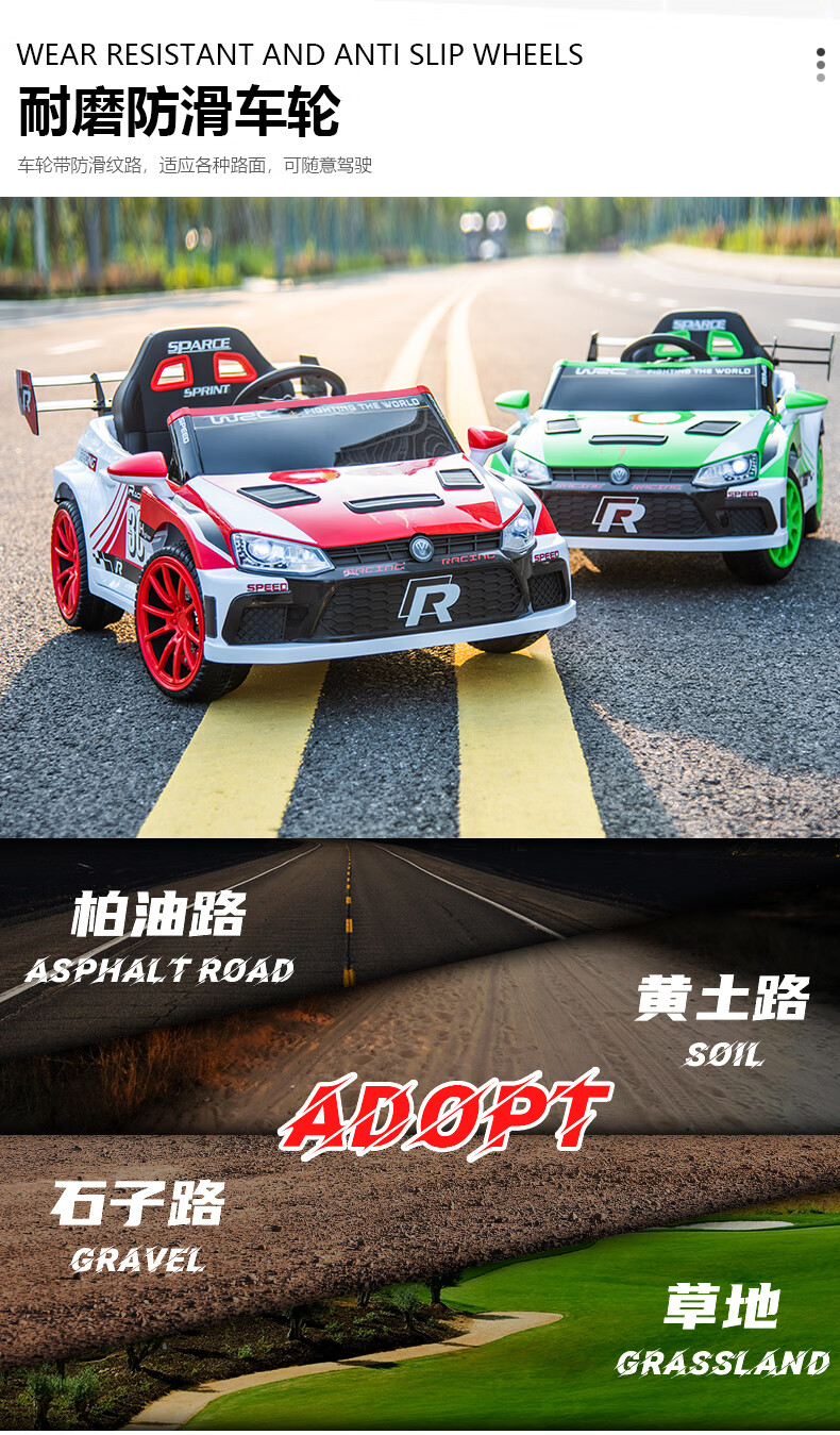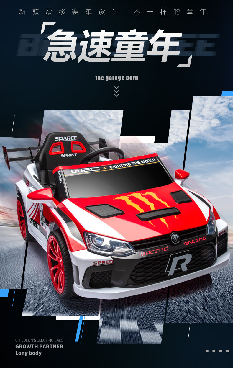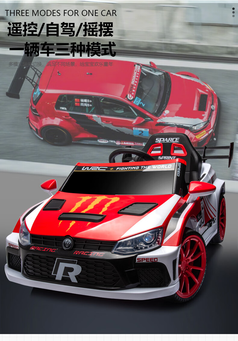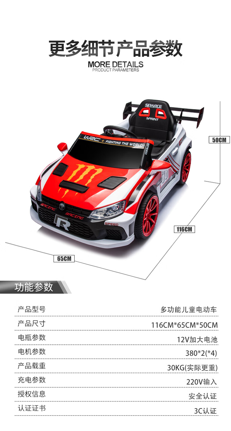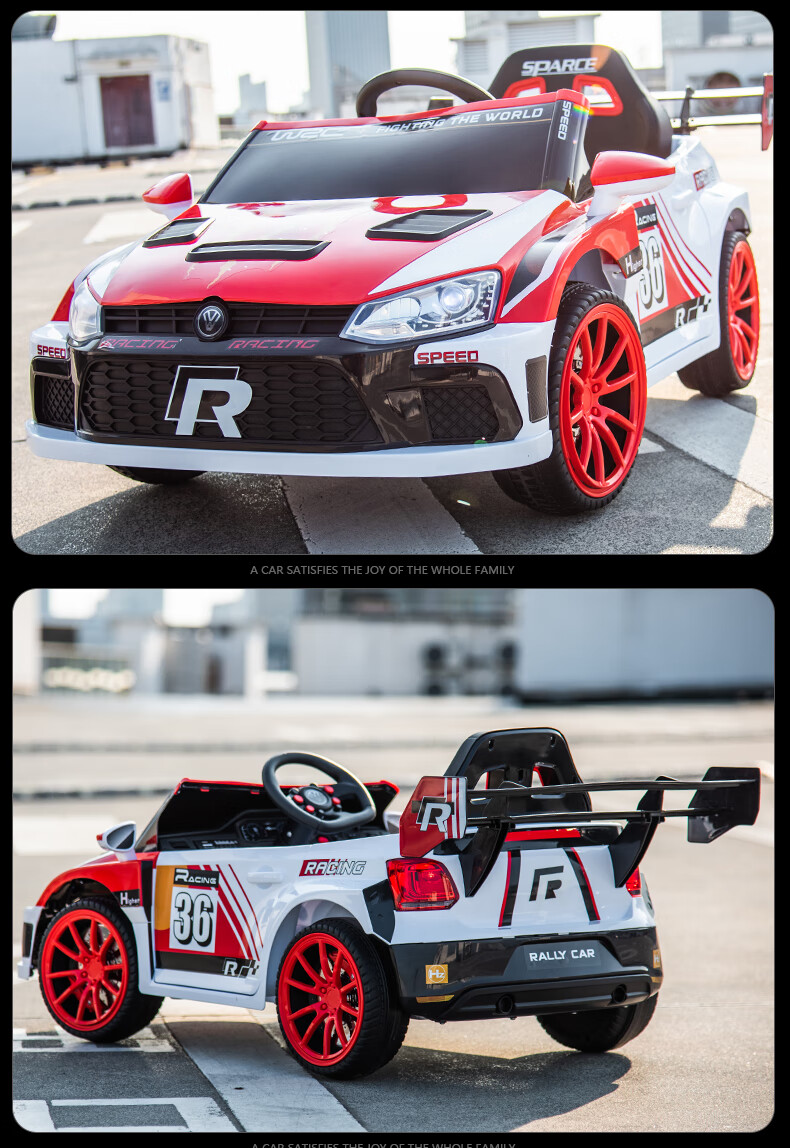 Children's electric four-wheeled baby car 2-7 years old baby car child birthday gift remote control toy car can sit on multi-functional dual drive + leather seat - flame red standard