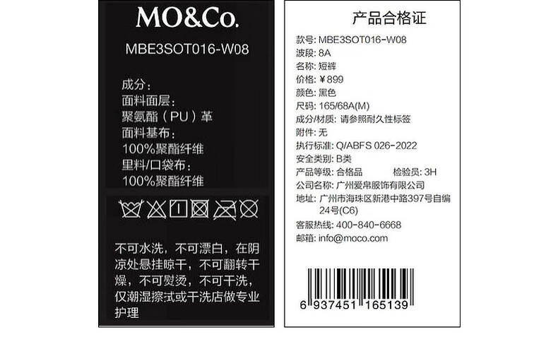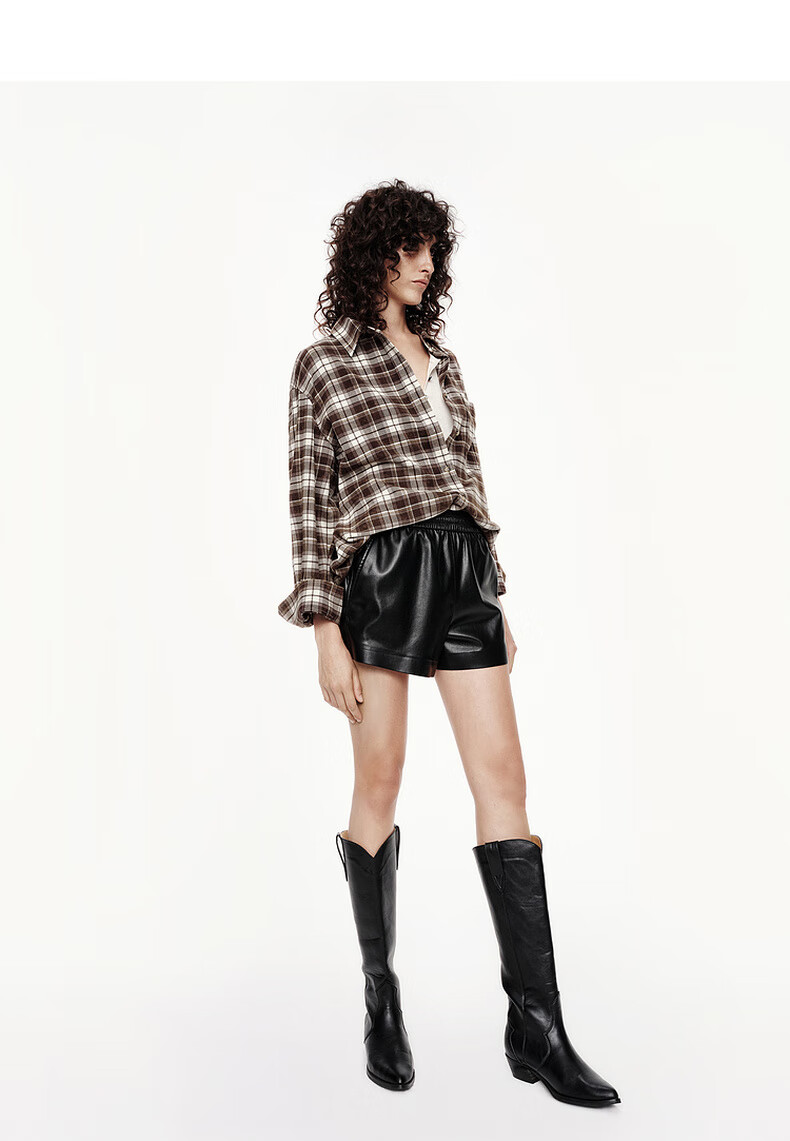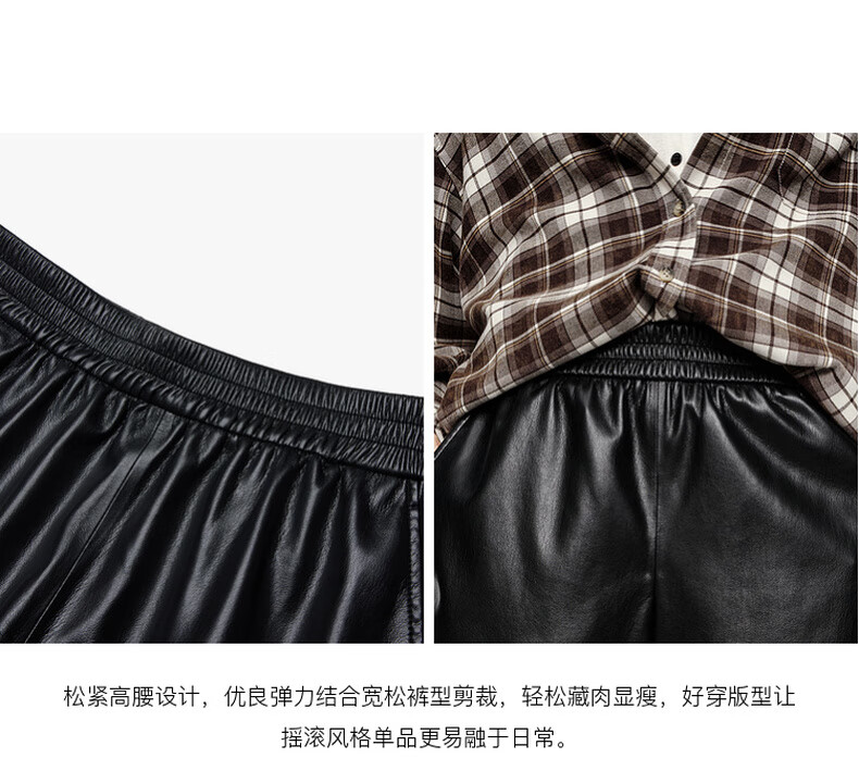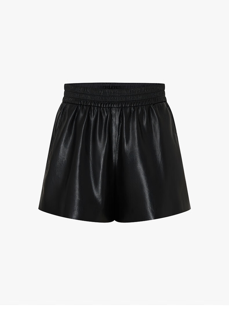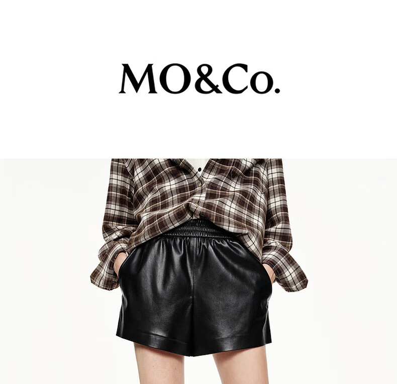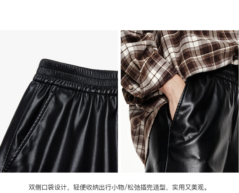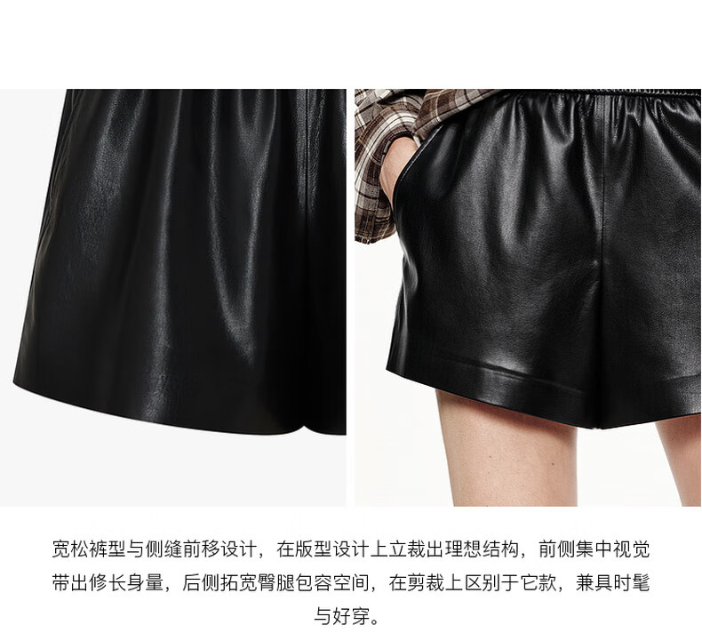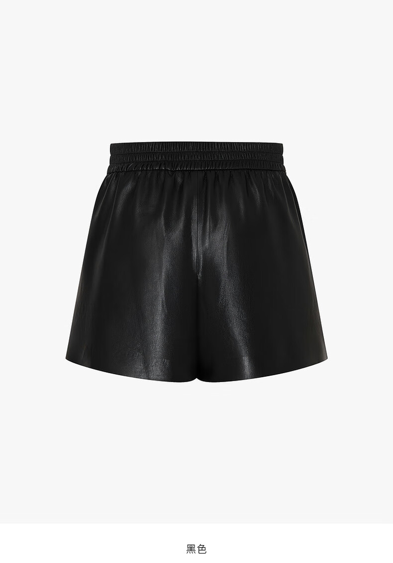MO&Co. Shorts 2025 Autumn New Product Light Rock Plain Leather Elastic High Waist Loose Black Casual Pants MBE3SOT016 Black S /160
