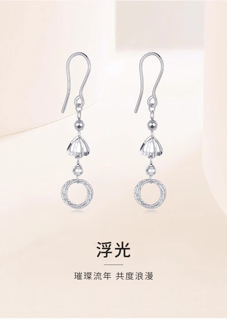 Lao Fengxiang PT950 platinum wire-wound ring ear hooks for women, versatile birthday, Valentine's Day, birthday gift for girlfriend and wife, platinum wire-wound ring ear hooks, one pair, about 2.9g + brand gift box
