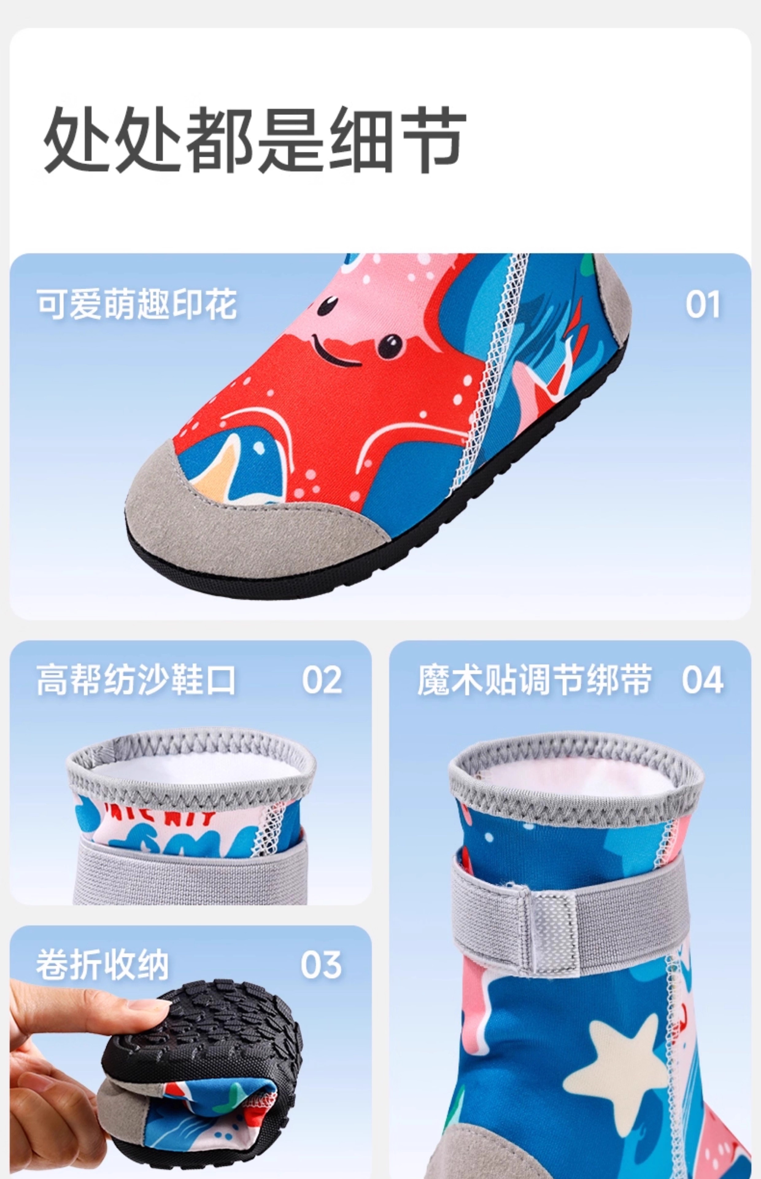 Tuban children's beach shoes, non-slip, anti-cut, swimming and diving socks, quick-drying sandproof foot covers, high-top wading shoes for adults, children's style - cute starfish L 34/35, foot length 18.9-20.3cm
