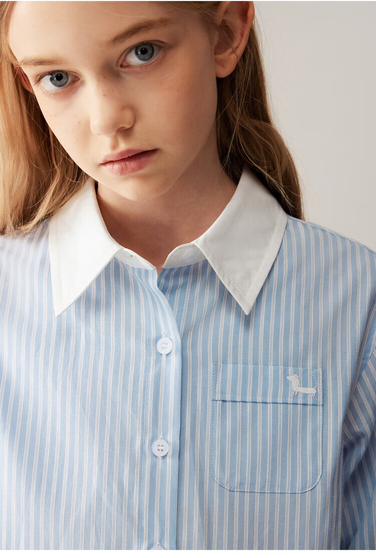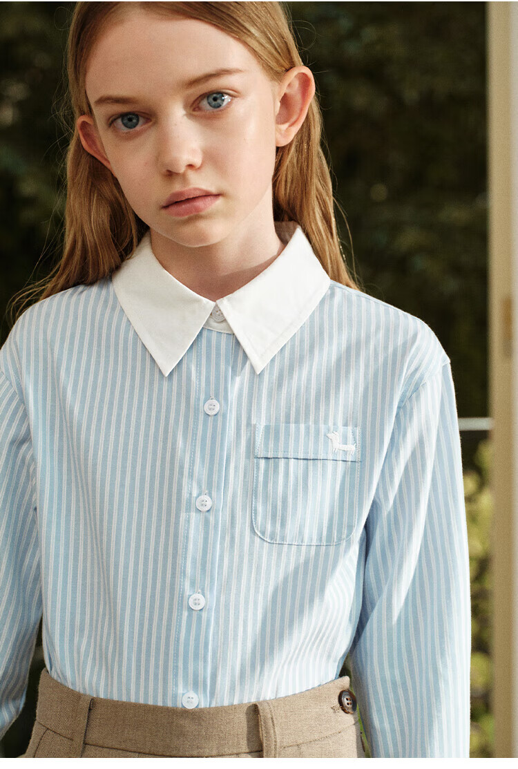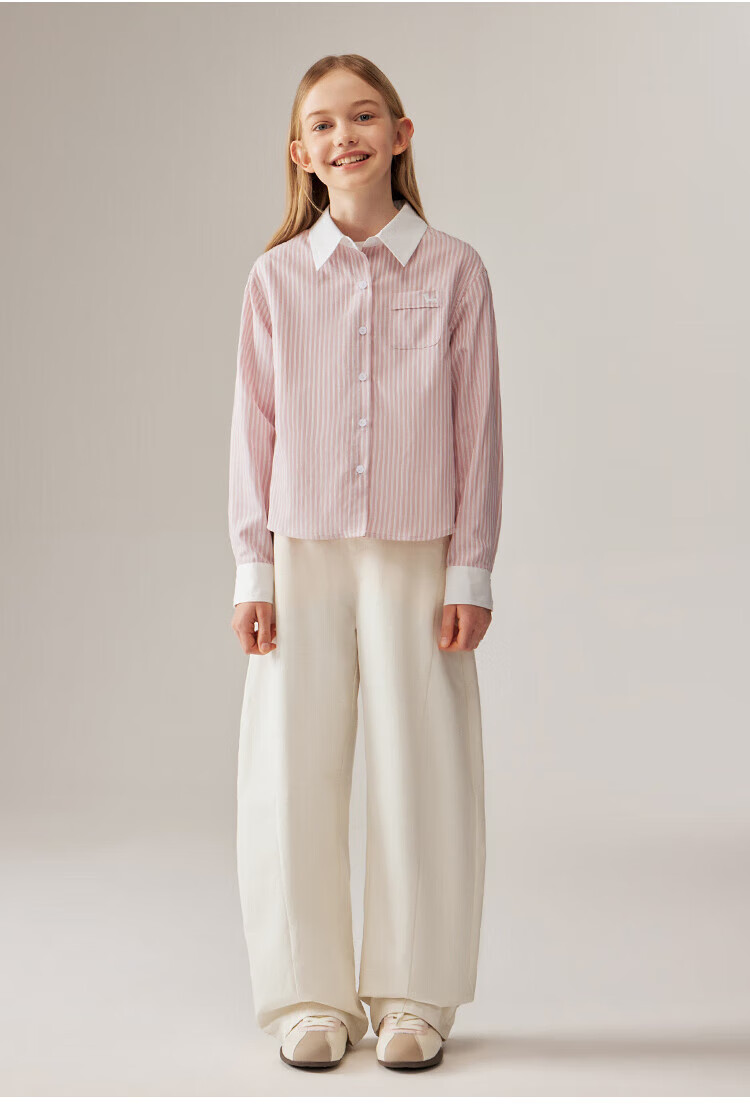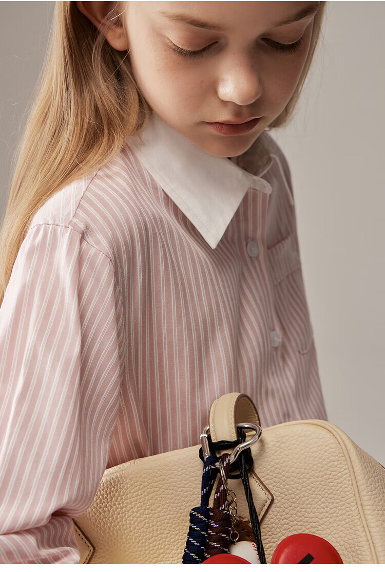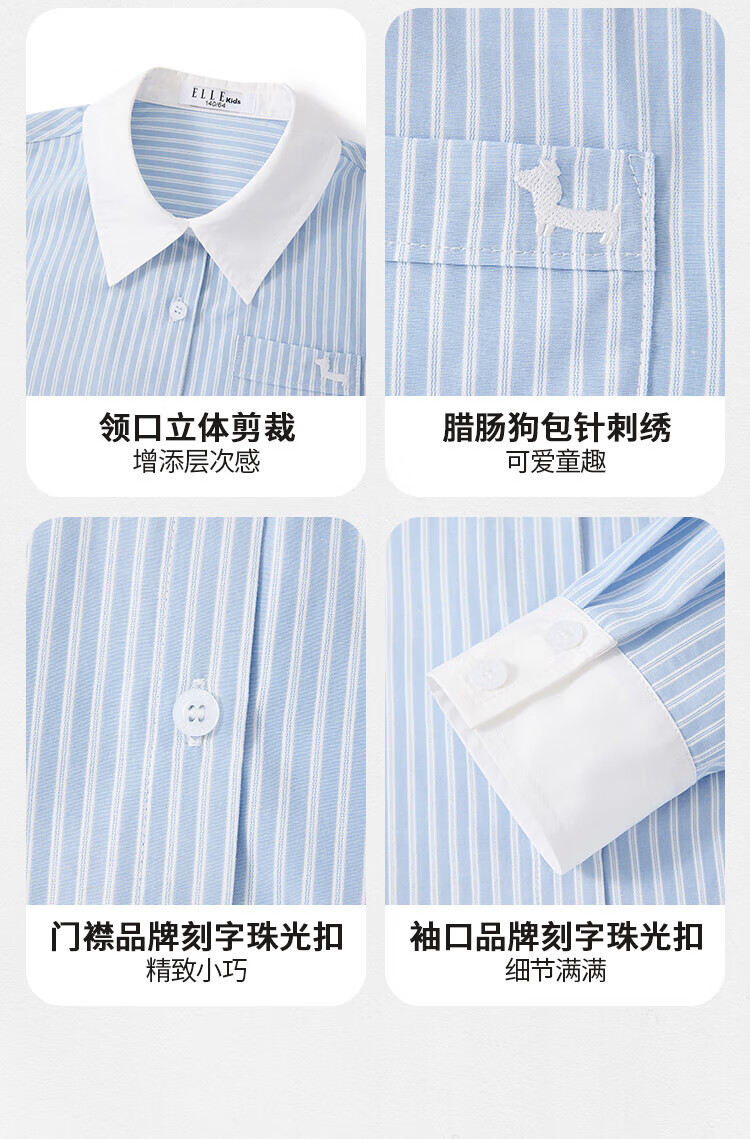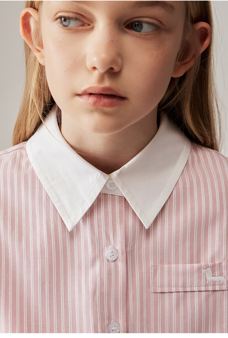 ELLE KIDS Children's Clothing Contrast Stripe Embroidered Shirt Girls Autumn New French Classic Fresh Top Pink and White Strips 150