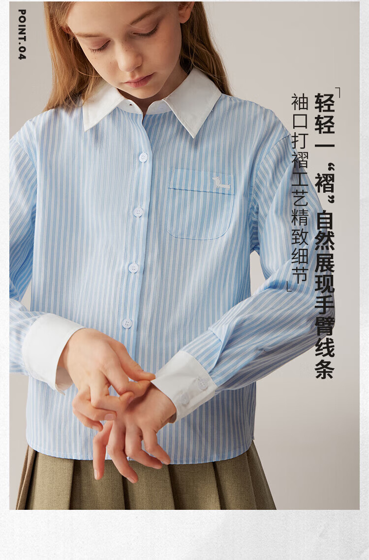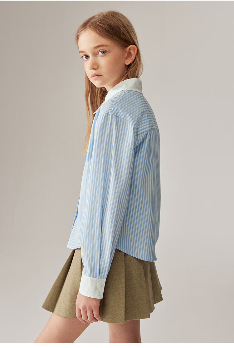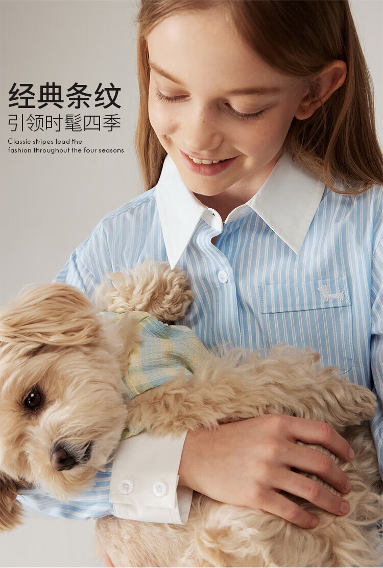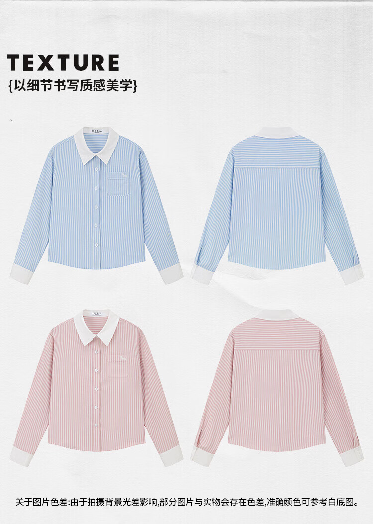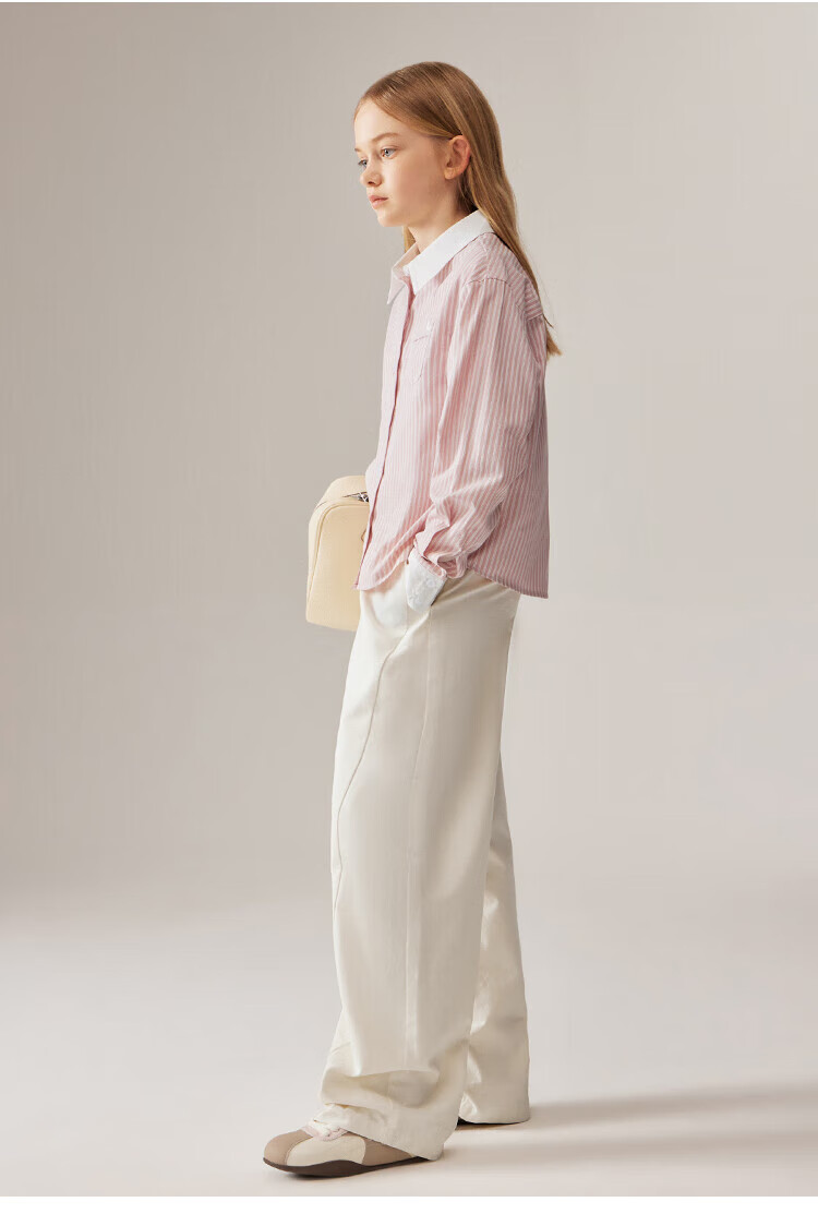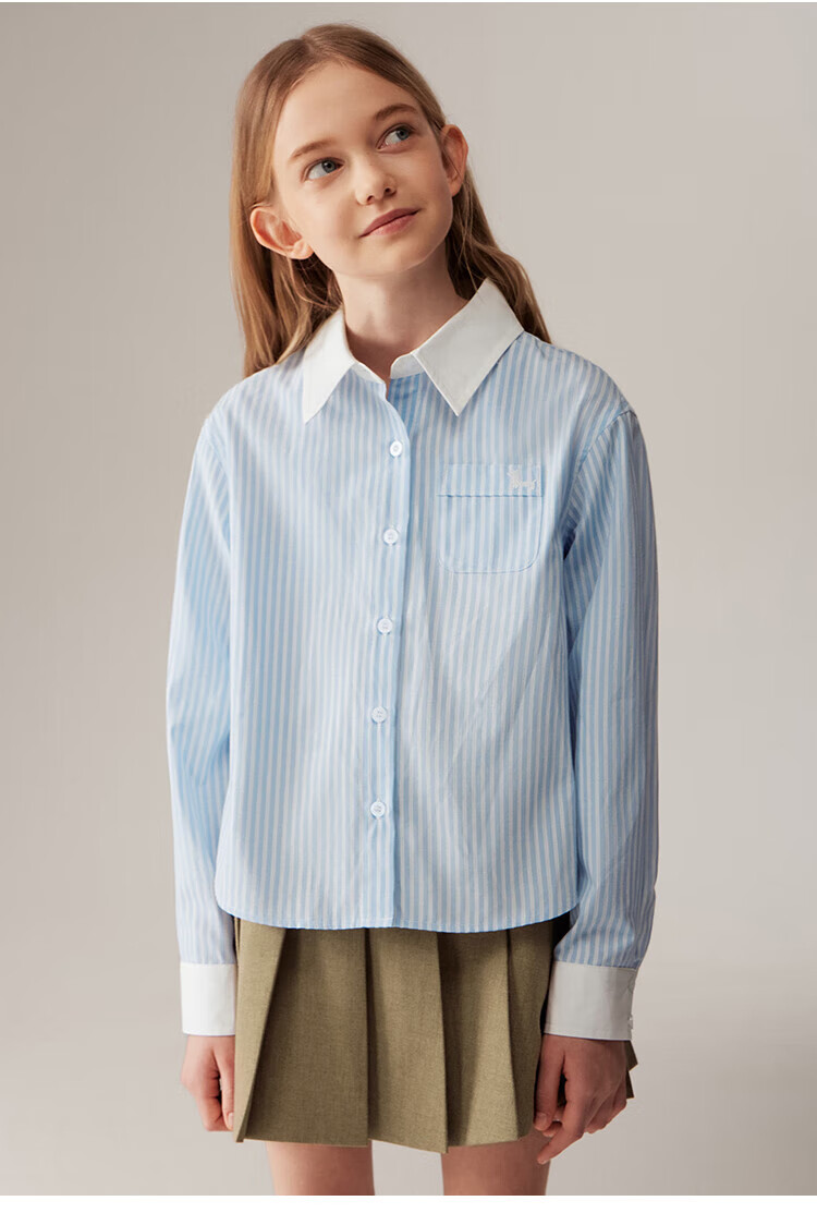 ELLE KIDS Children's Clothing Contrast Stripe Embroidered Shirt Girls Autumn New French Classic Fresh Top Pink and White Strips 150