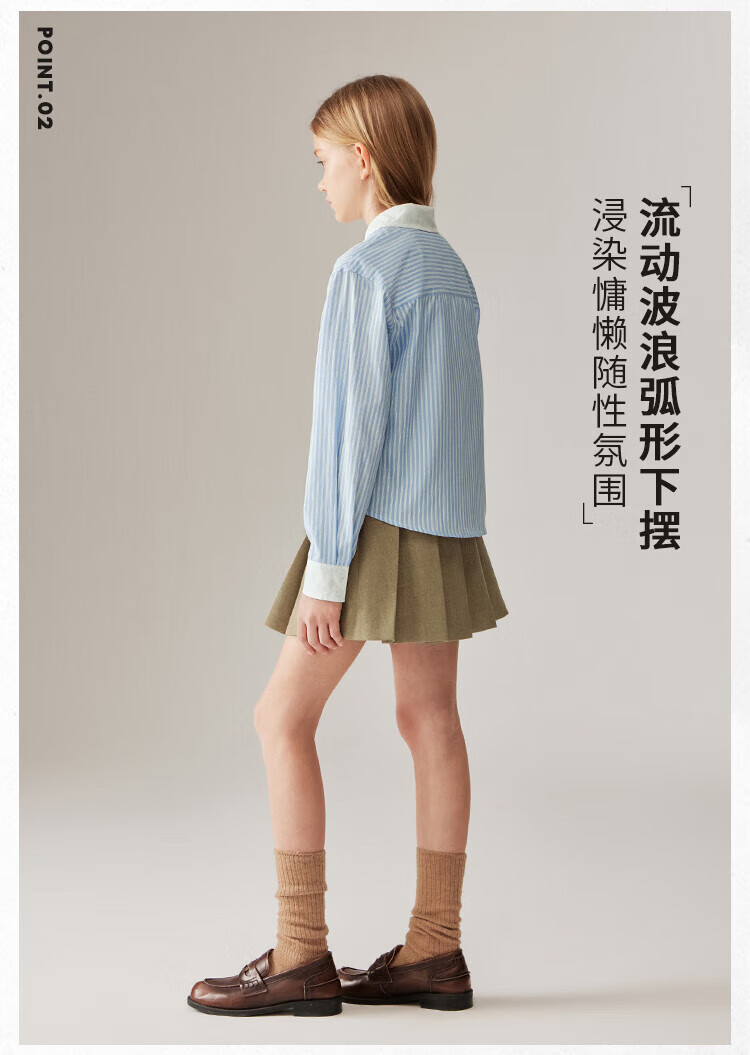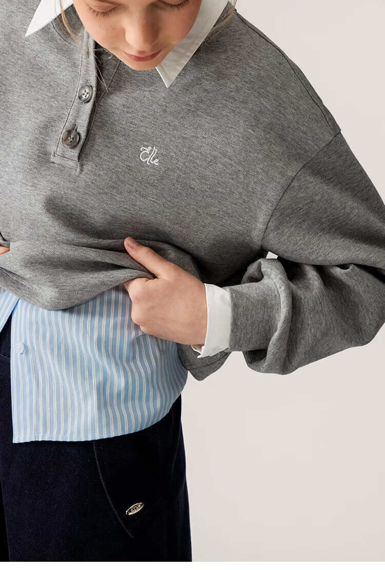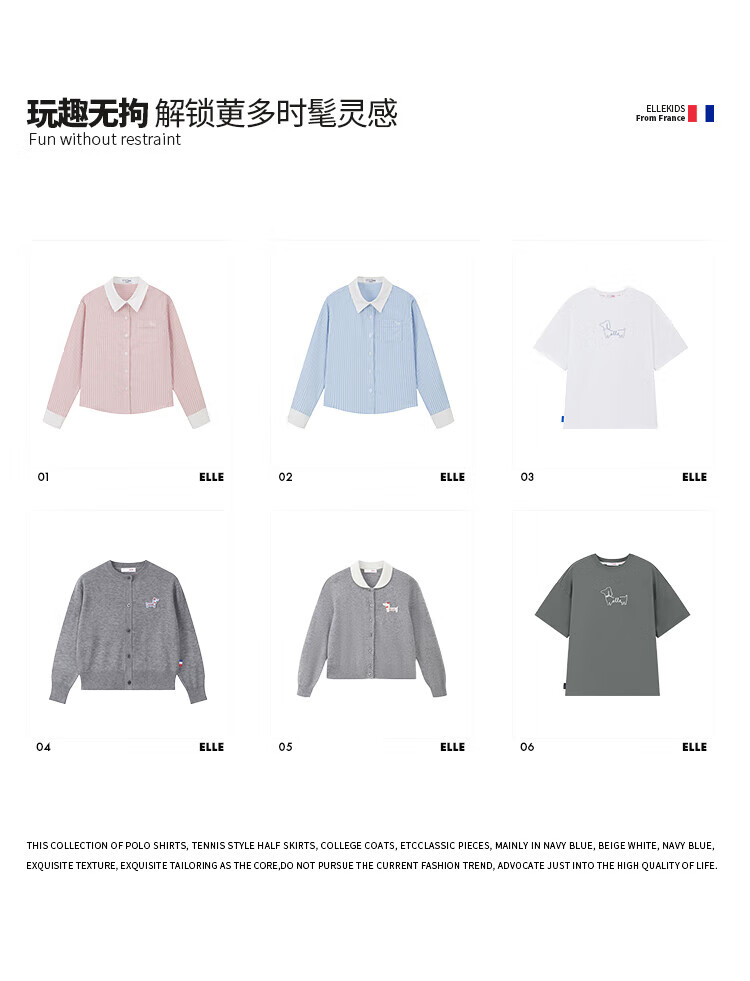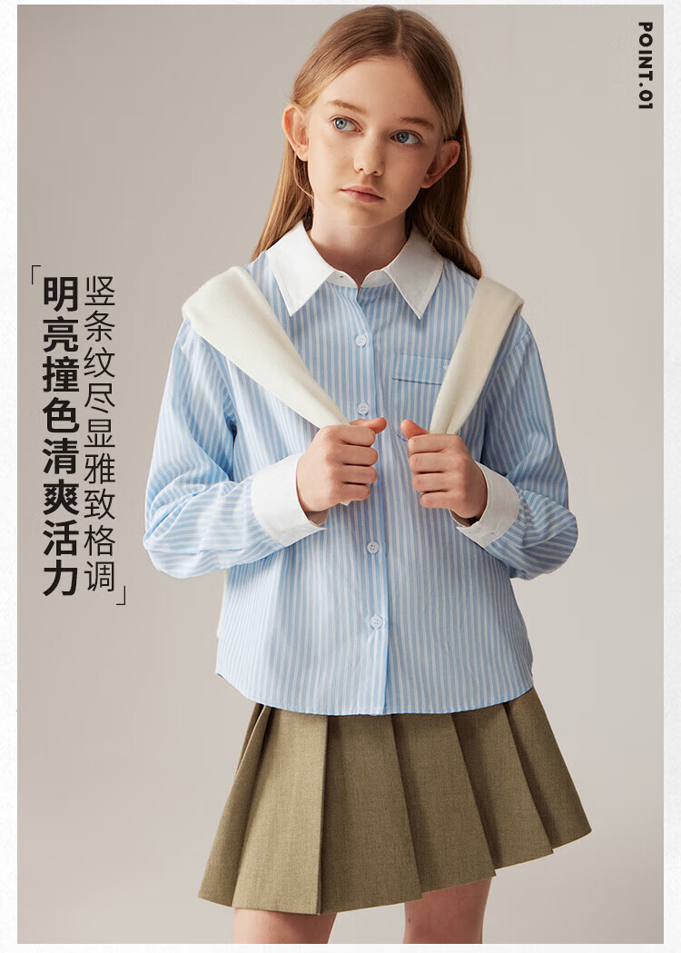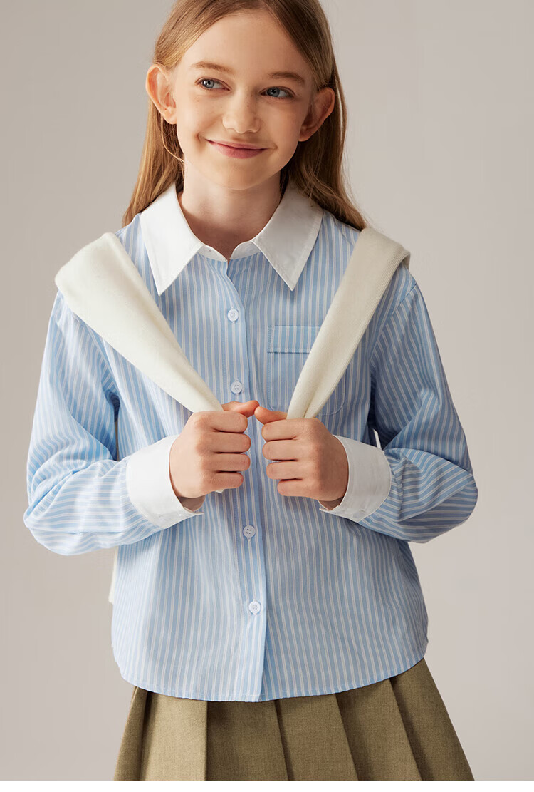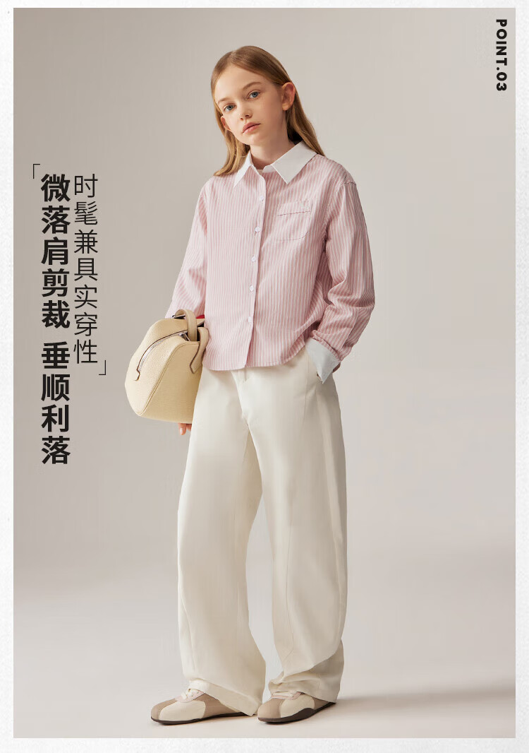 ELLE KIDS Children's Clothing Contrast Stripe Embroidered Shirt Girls Autumn New French Classic Fresh Top Pink and White Strips 150