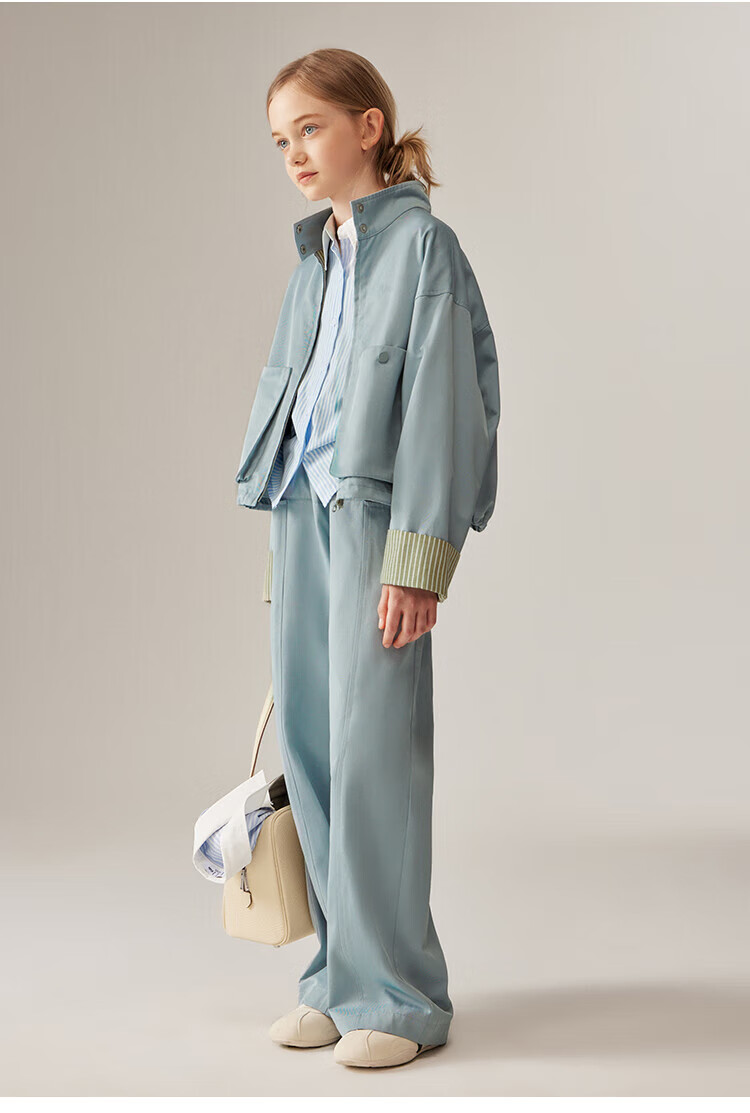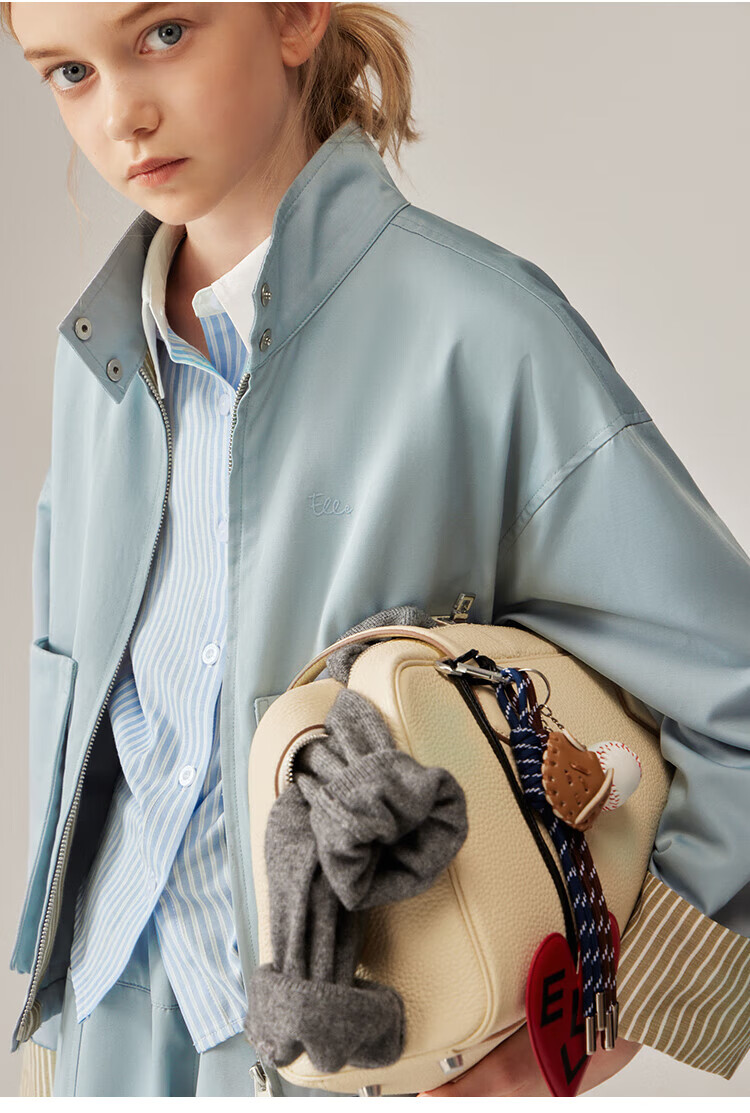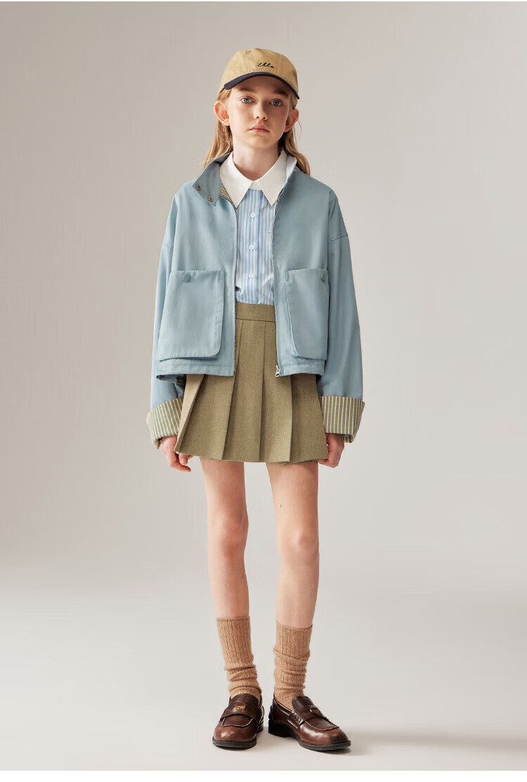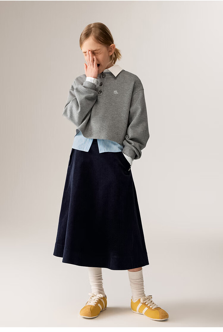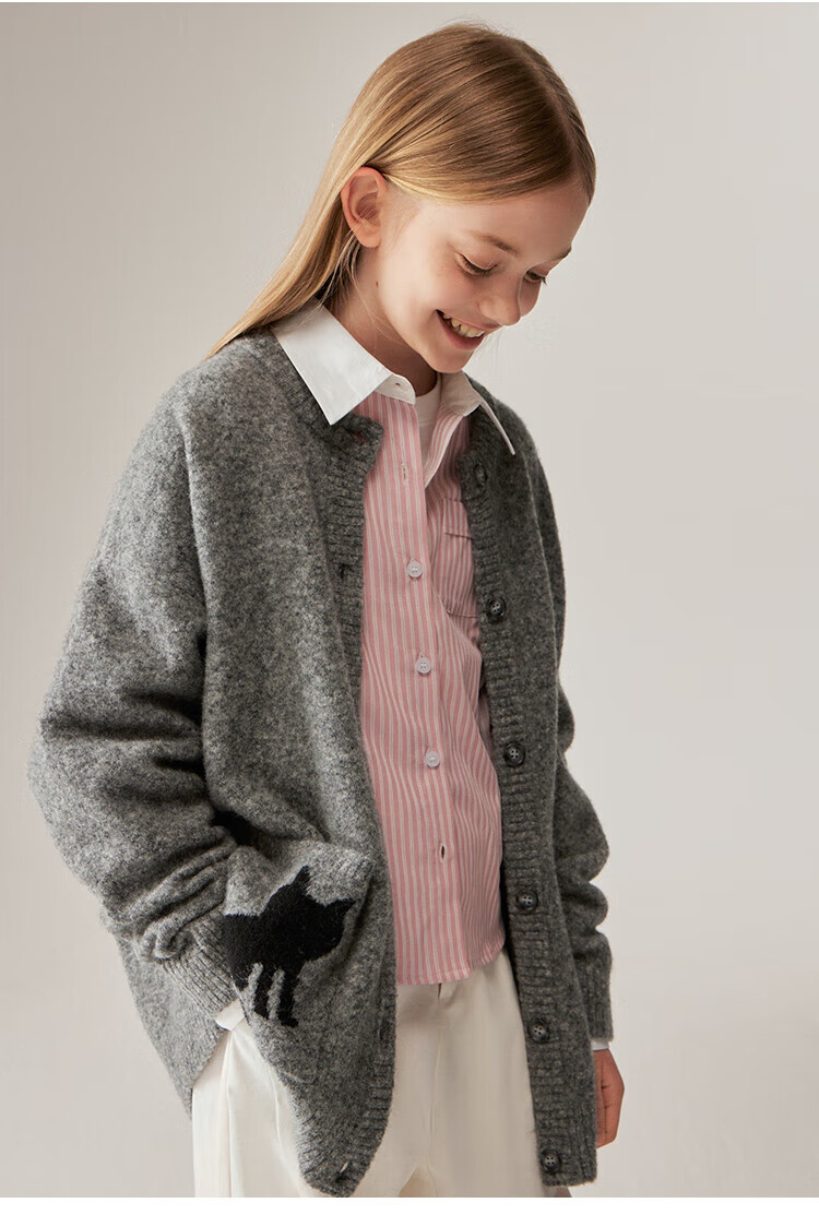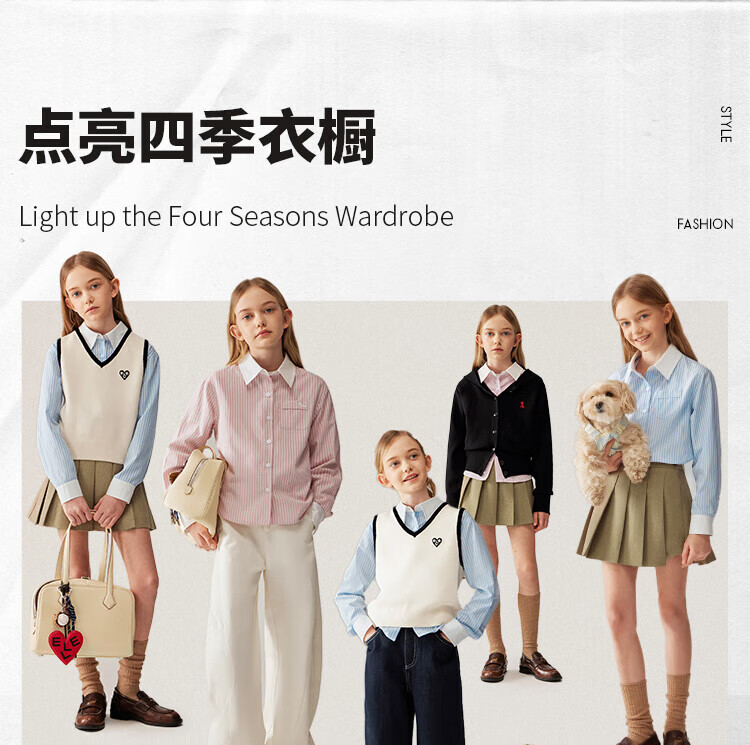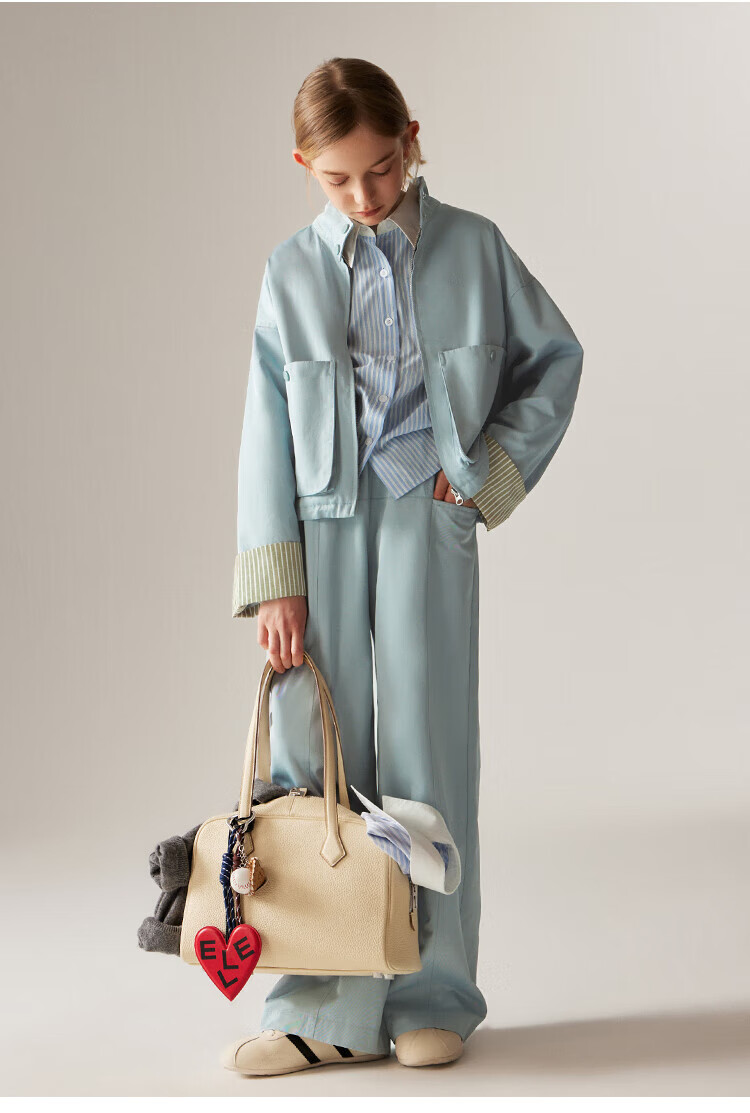 ELLE KIDS Children's Clothing Contrast Stripe Embroidered Shirt Girls Autumn New French Classic Fresh Top Pink and White Strips 150