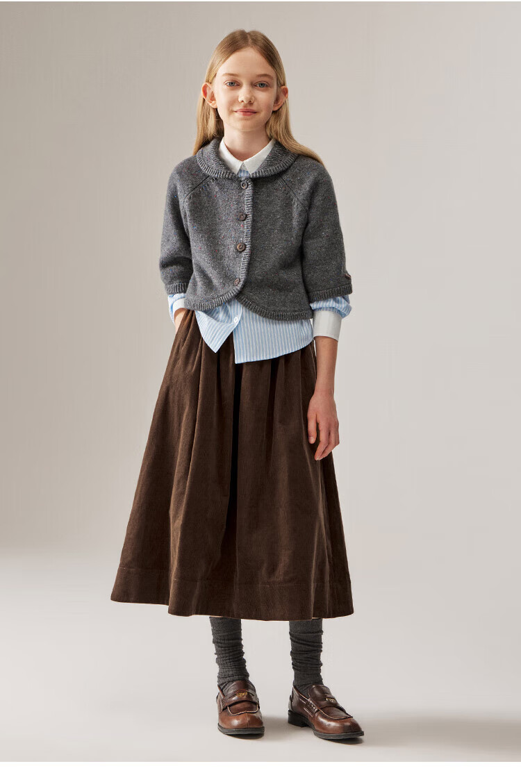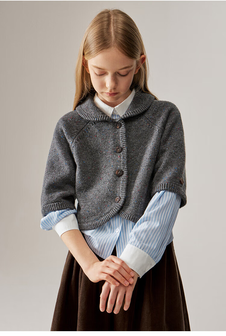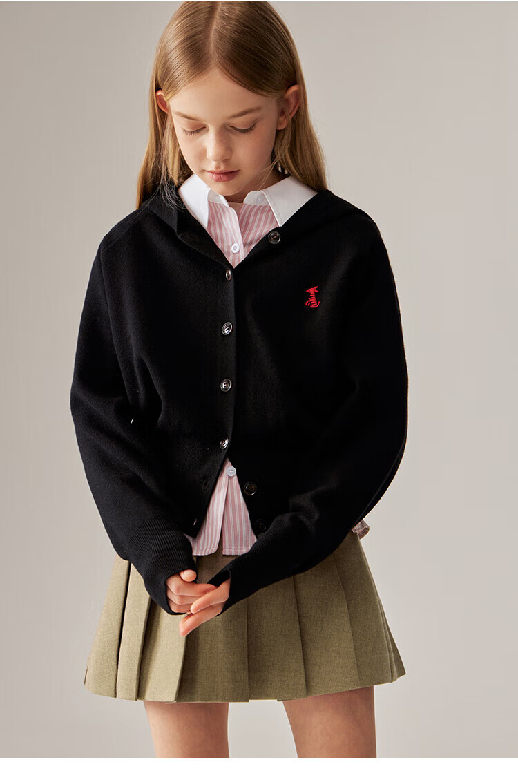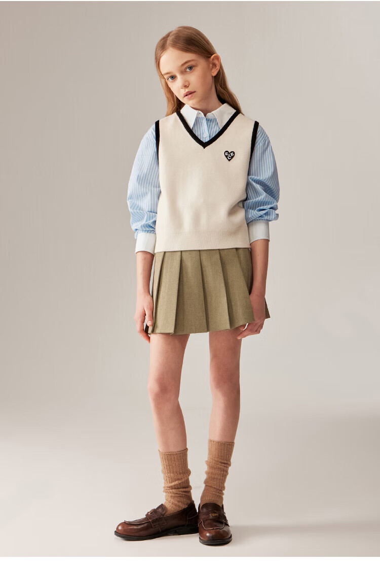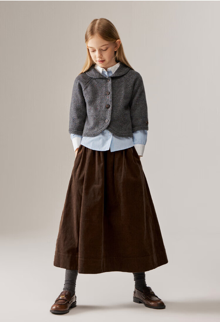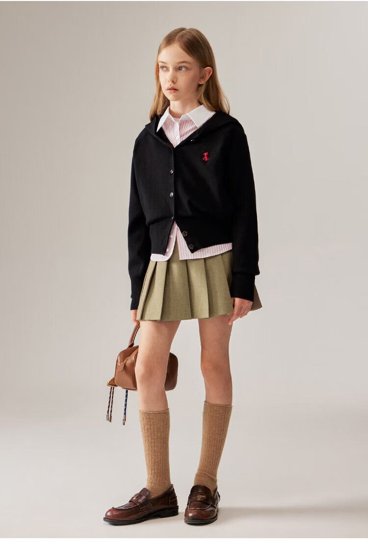 ELLE KIDS Children's Clothing Contrast Stripe Embroidered Shirt Girls Autumn New French Classic Fresh Top Pink and White Strips 150