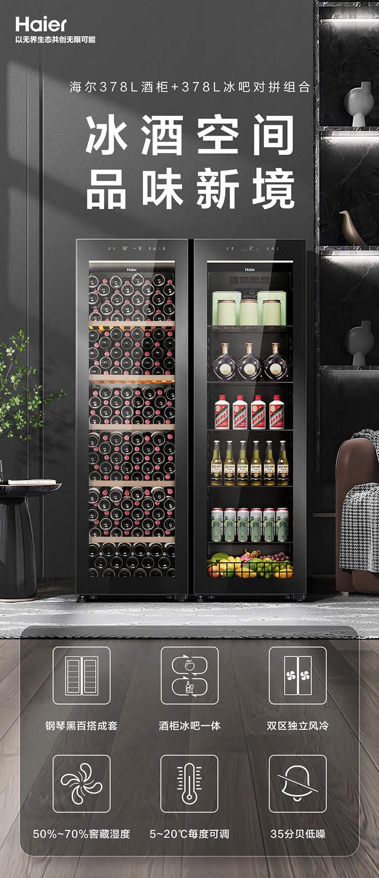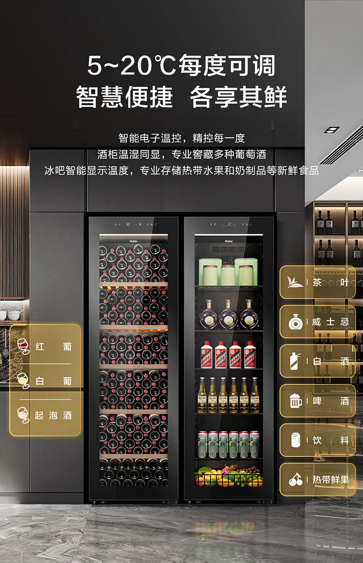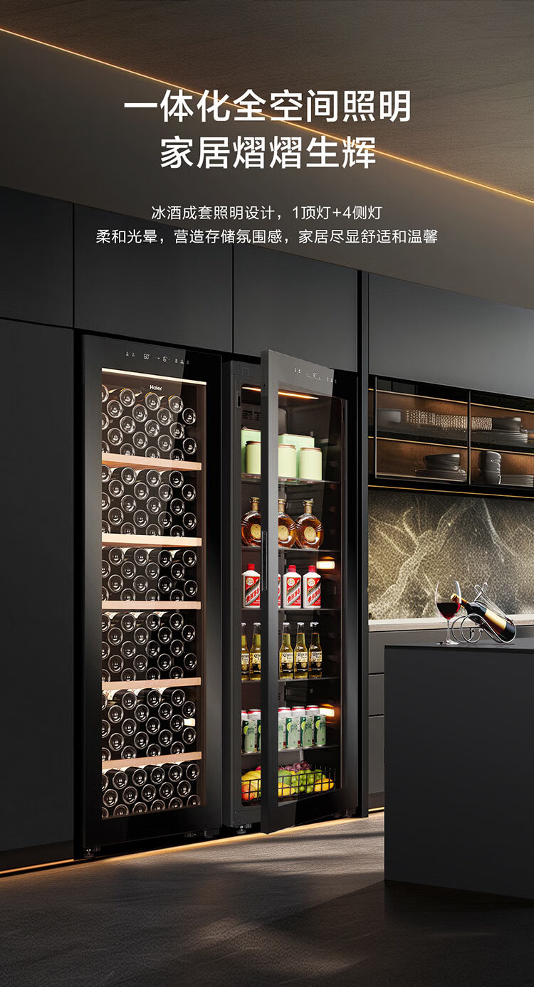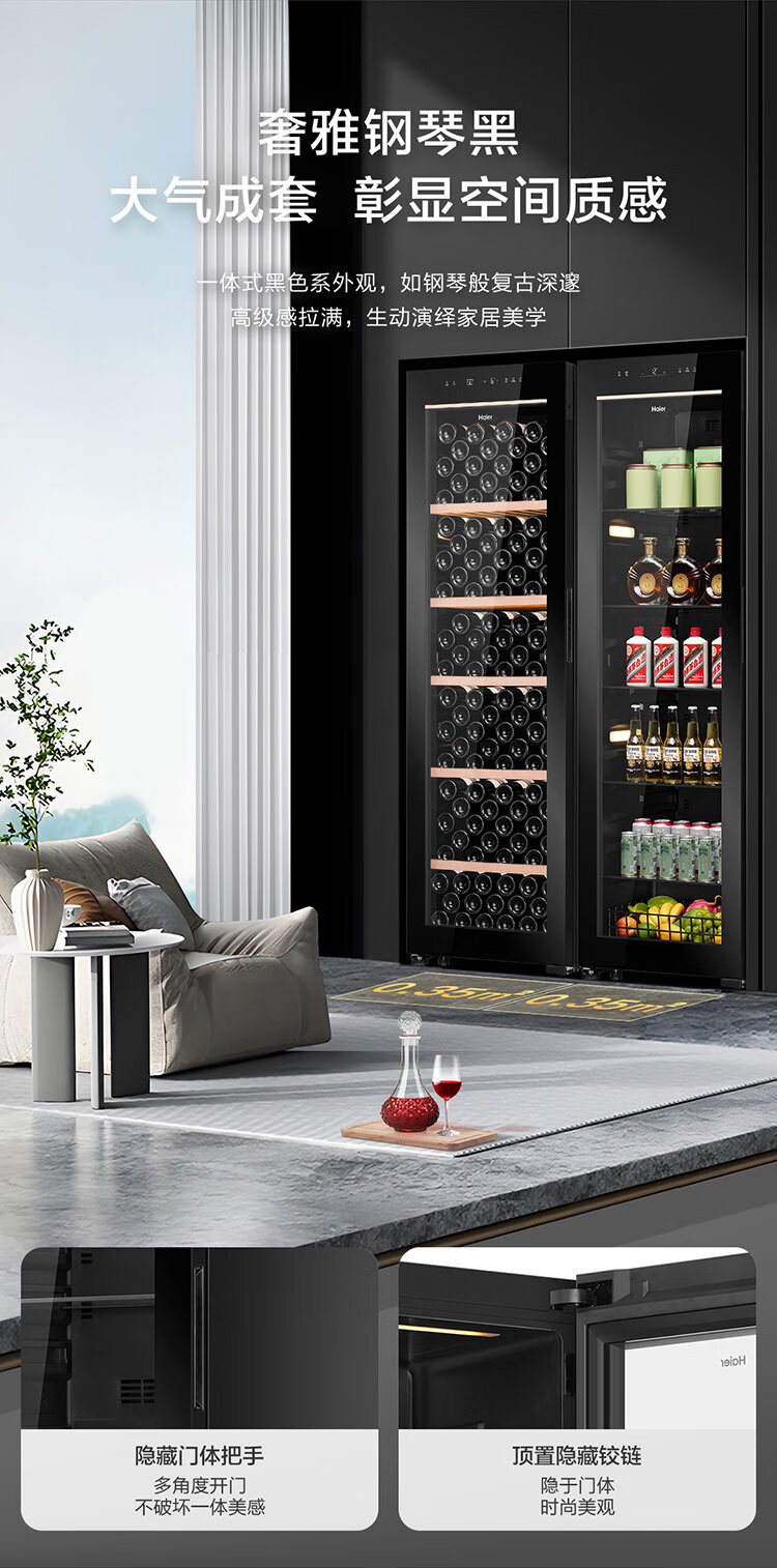 Haier new product embedded ice bar constant temperature and humidity wine cabinet home vertical humidifier office living room refrigerated fresh cabinet air-cooled cabinet wine red wine display cabinet ice bar + wine cabinet combination 756L丨air-cooled frost-free丨free splicing