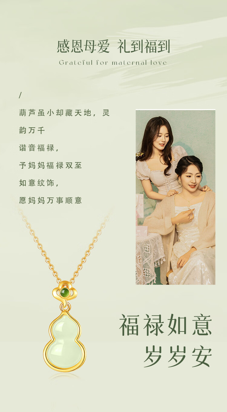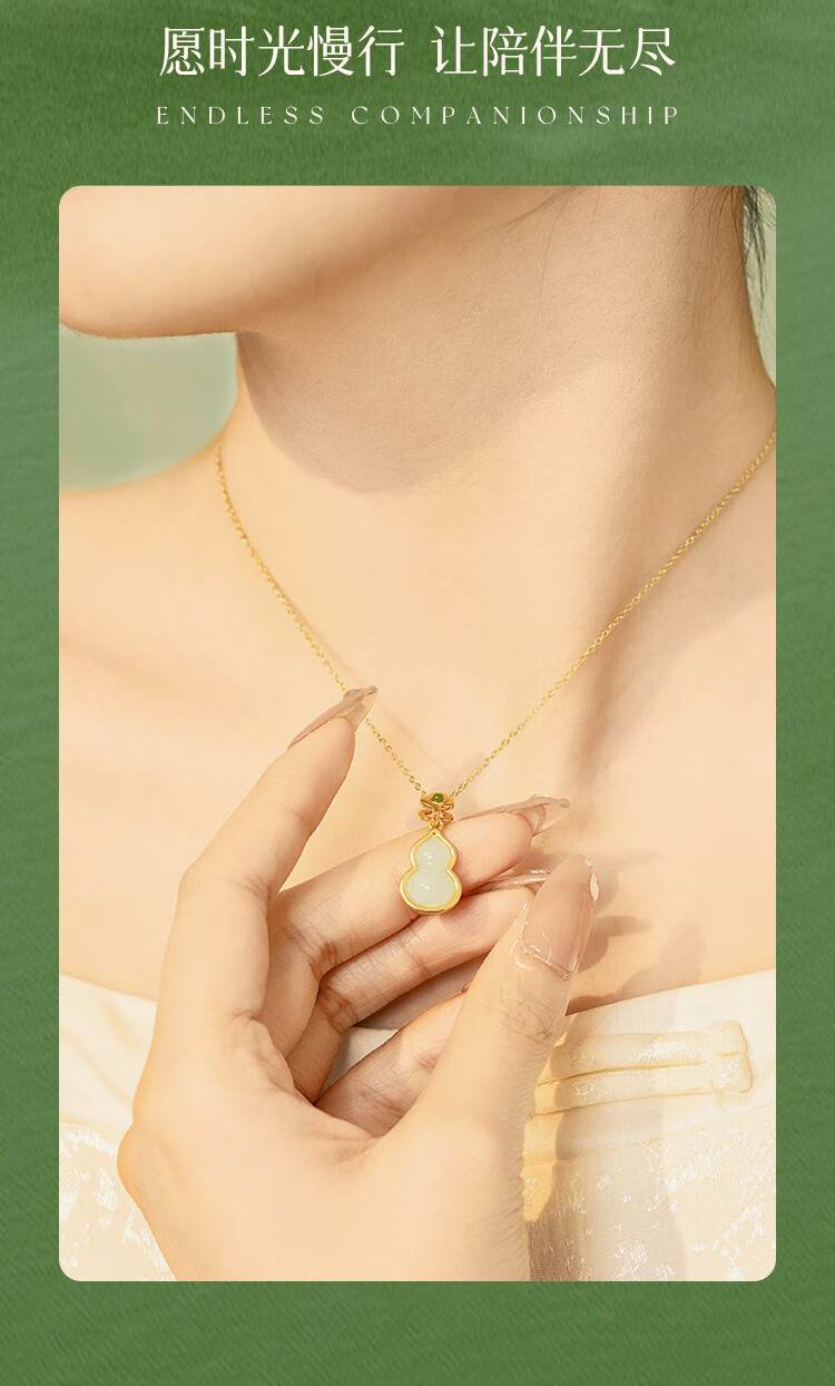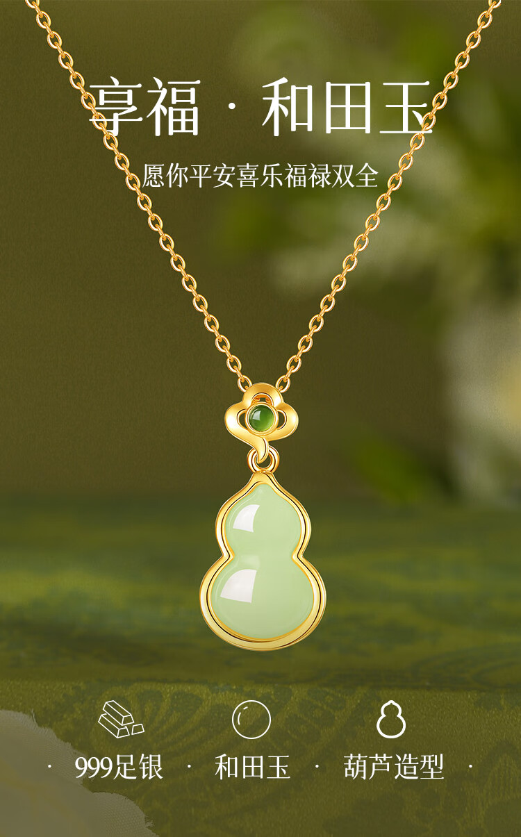 Gin Qianhui 999 sterling silver Hotan jade gourd necklace for women 2025 new light luxury pendant birthday gift for girlfriend and mother Bamboo wishful luck necklace/inlaid with high-quality jasper selected seal grade Hotan jade/with certificate/rose gift box for wife