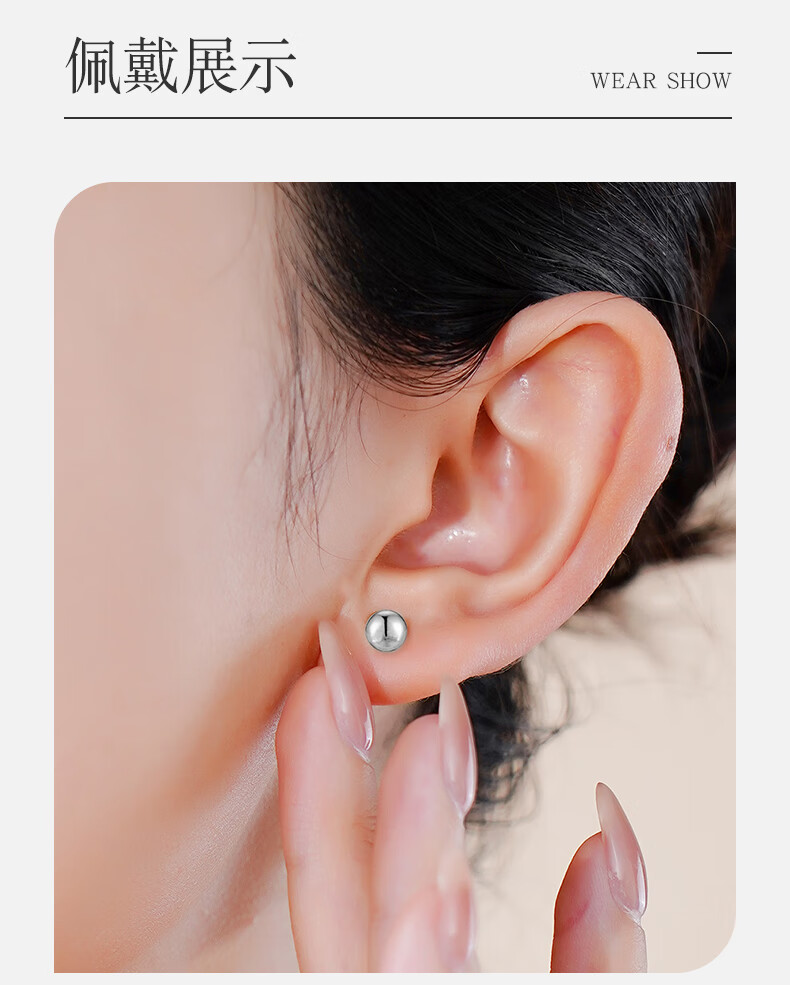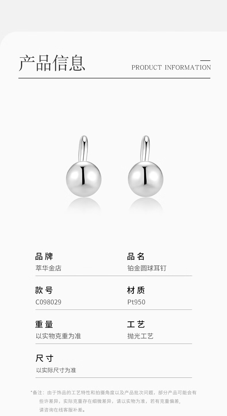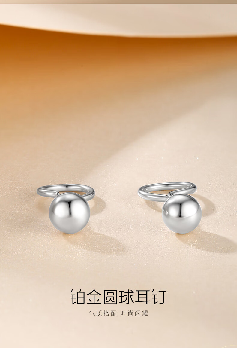 Cuihua platinum pt950 round ball bean earrings platinum jewelry anniversary gift for girlfriend and wife birthday gift round ball earrings about 1.2g