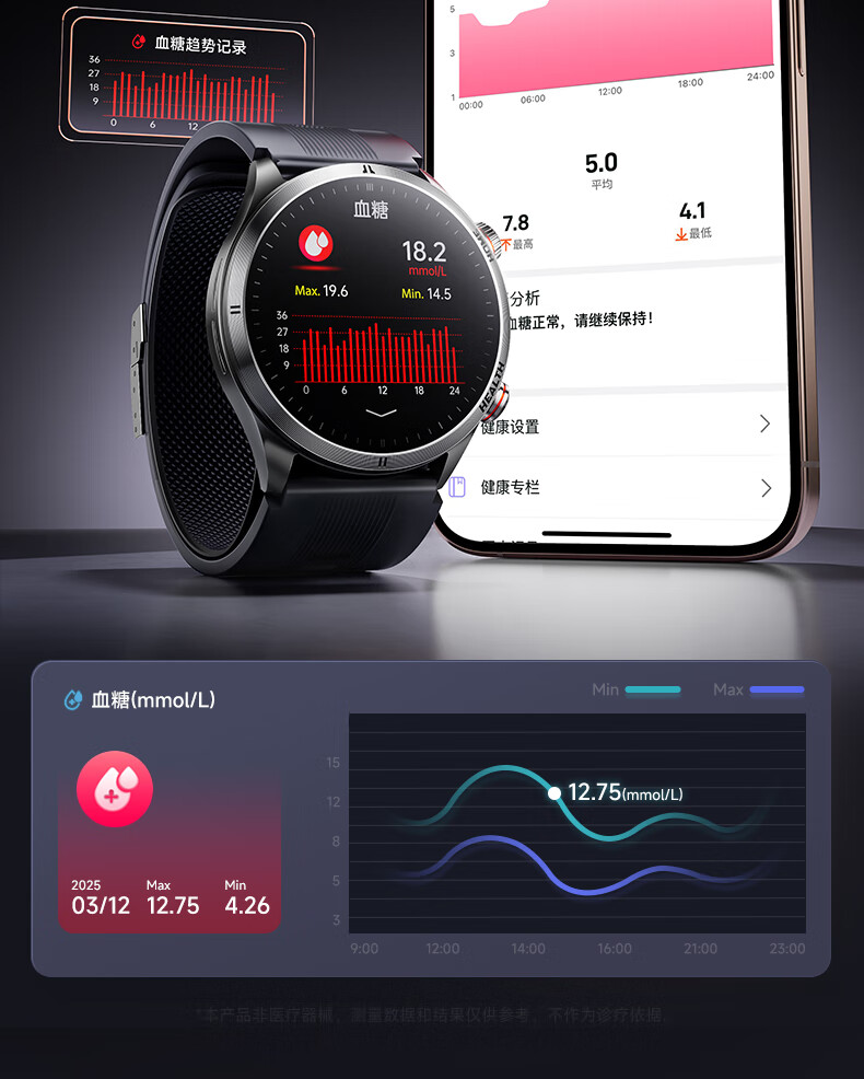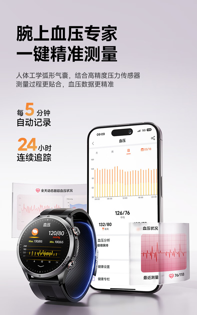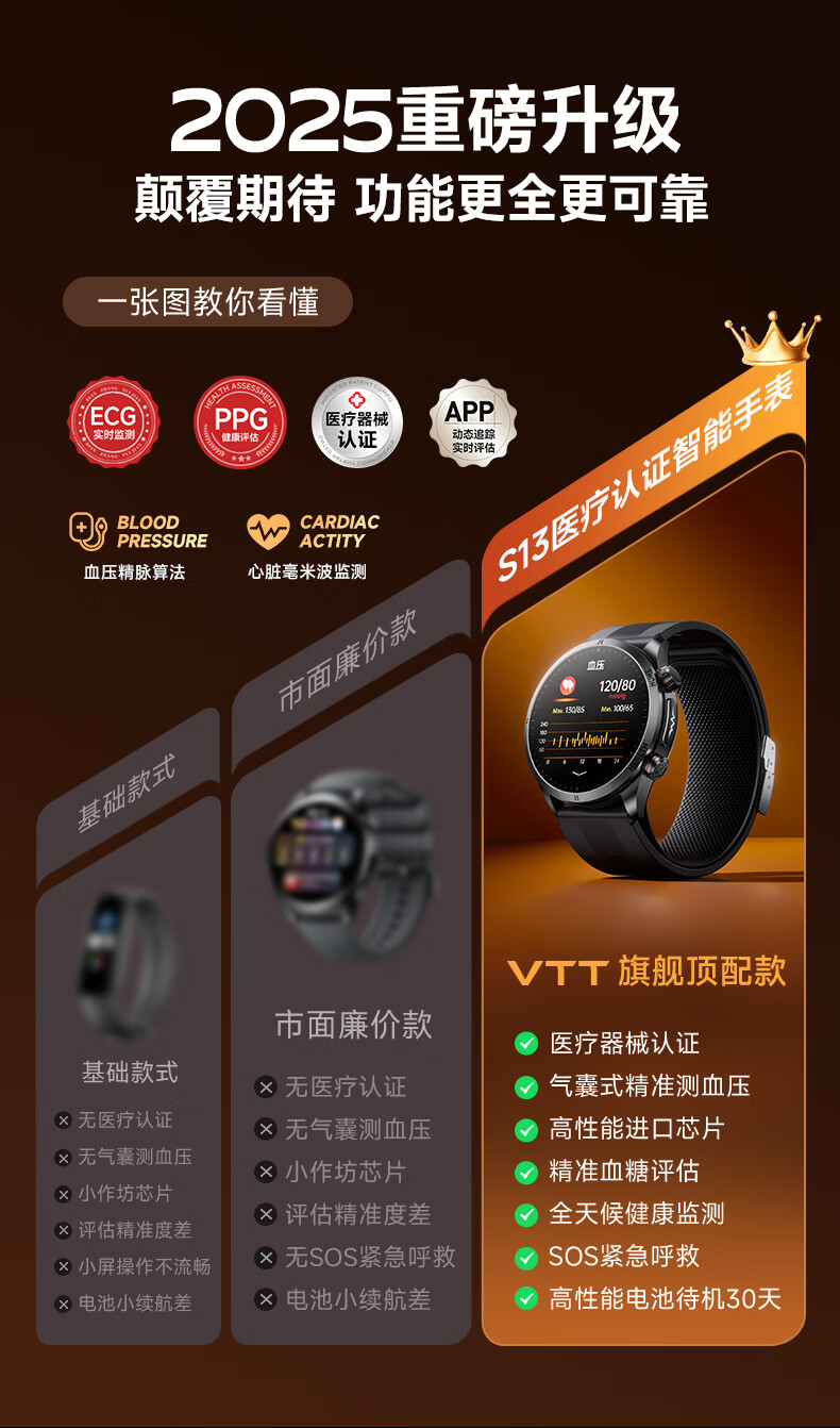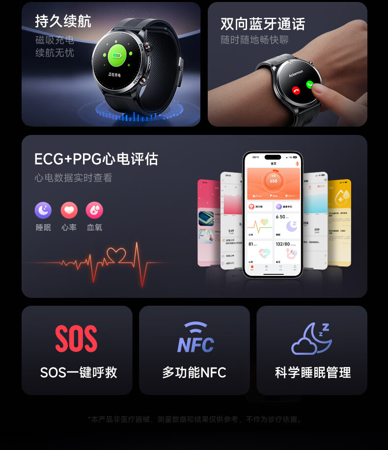 VTT national subsidy Huawei machine suitable for heart rate blood pressure blood oxygen blood sugar medical grade equipment monitoring watch men and women ECG blood lipids uric acid sleep smart health bracelet all-in-one medical airbag model blood sugar blood pressure sleep uric acid blood lipid monitoring