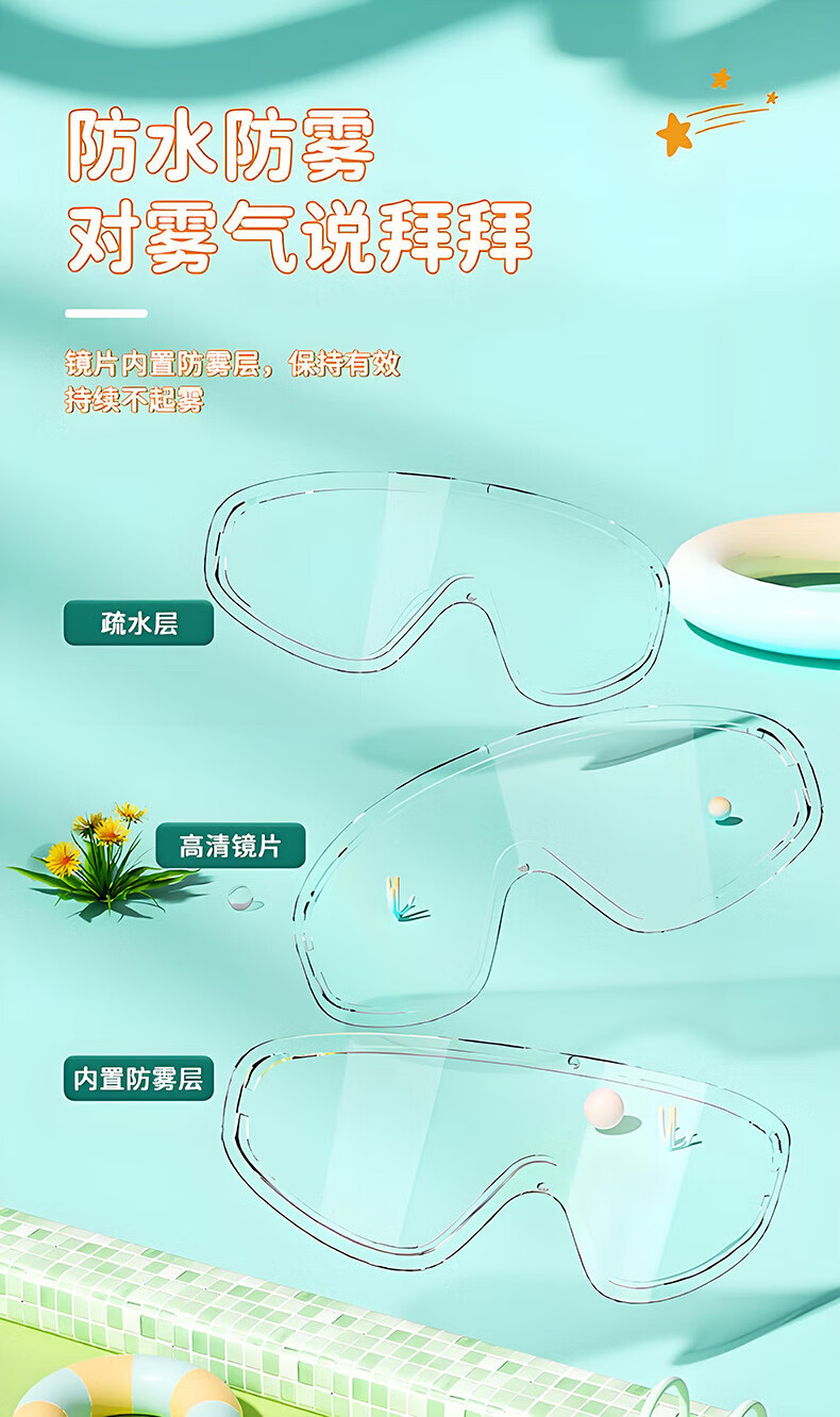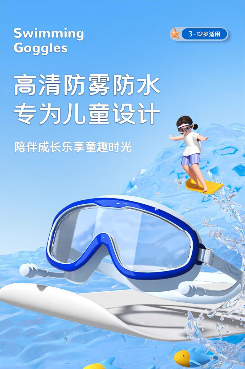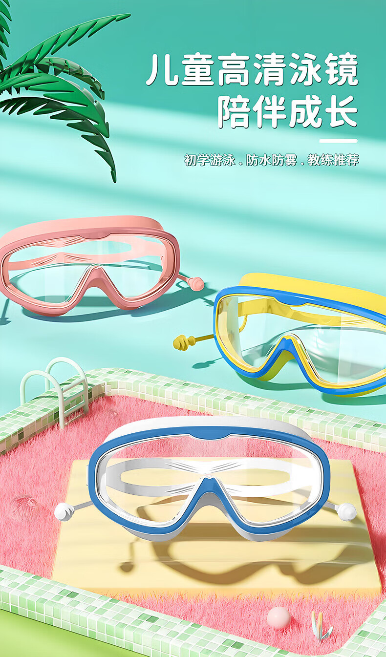 Special words children's swimming goggles boys and girls swimming goggles waterproof and anti-fog high-definition large-frame goggles children's diving goggles pink swimming goggles 3-12 years old