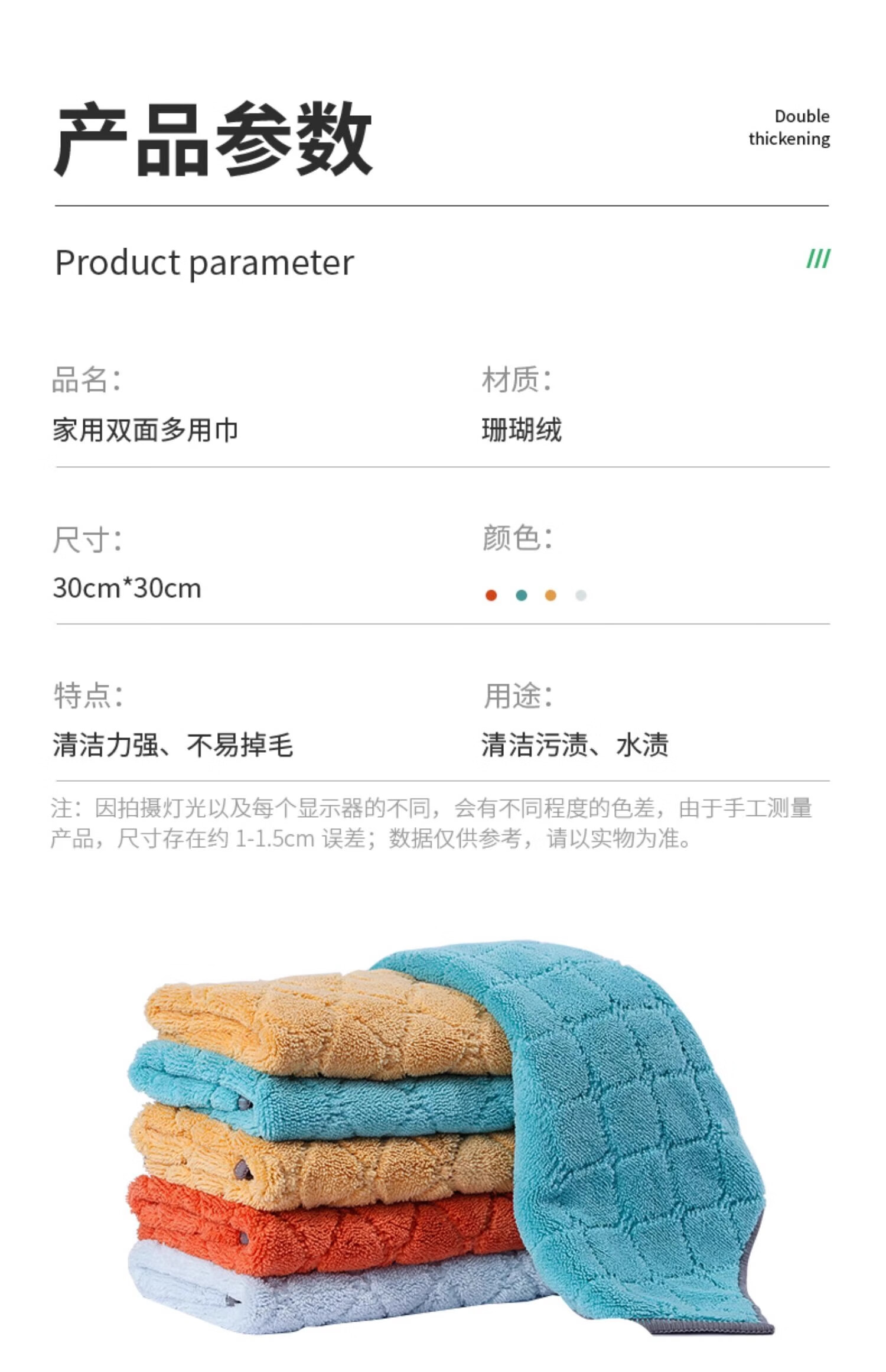 Rag kitchen special dishwashing cloth not easy to stain oil and water absorbent towel household thickened table cleaning cloth 10 pieces large size 30*40cm double thickened