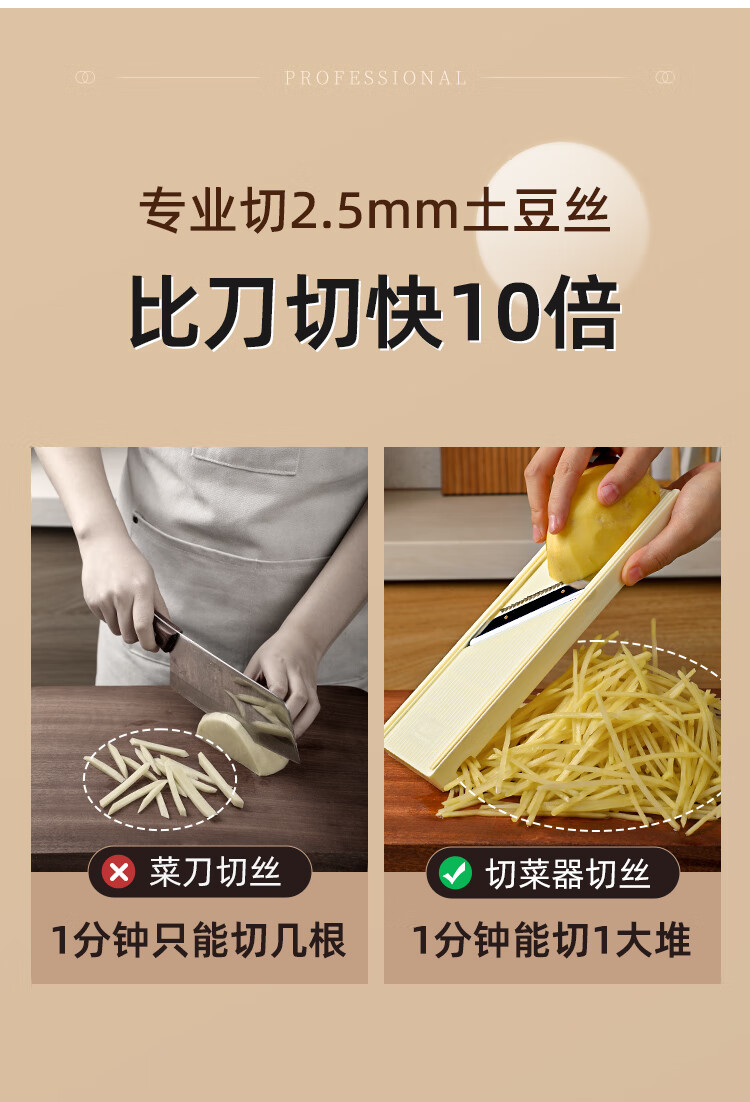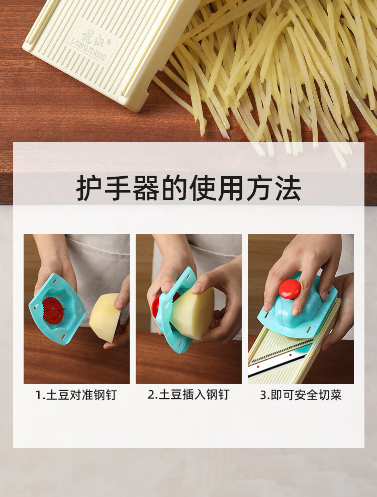 Longjiang potato shredder, Longjiang grater, household filament grater, vegetable cutting artifact, hand guard shredder, professional 2.5mm potato grater