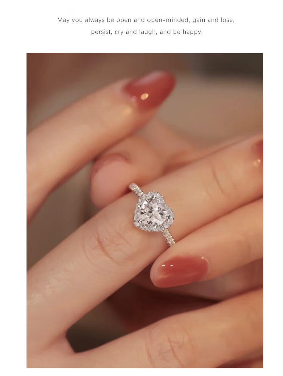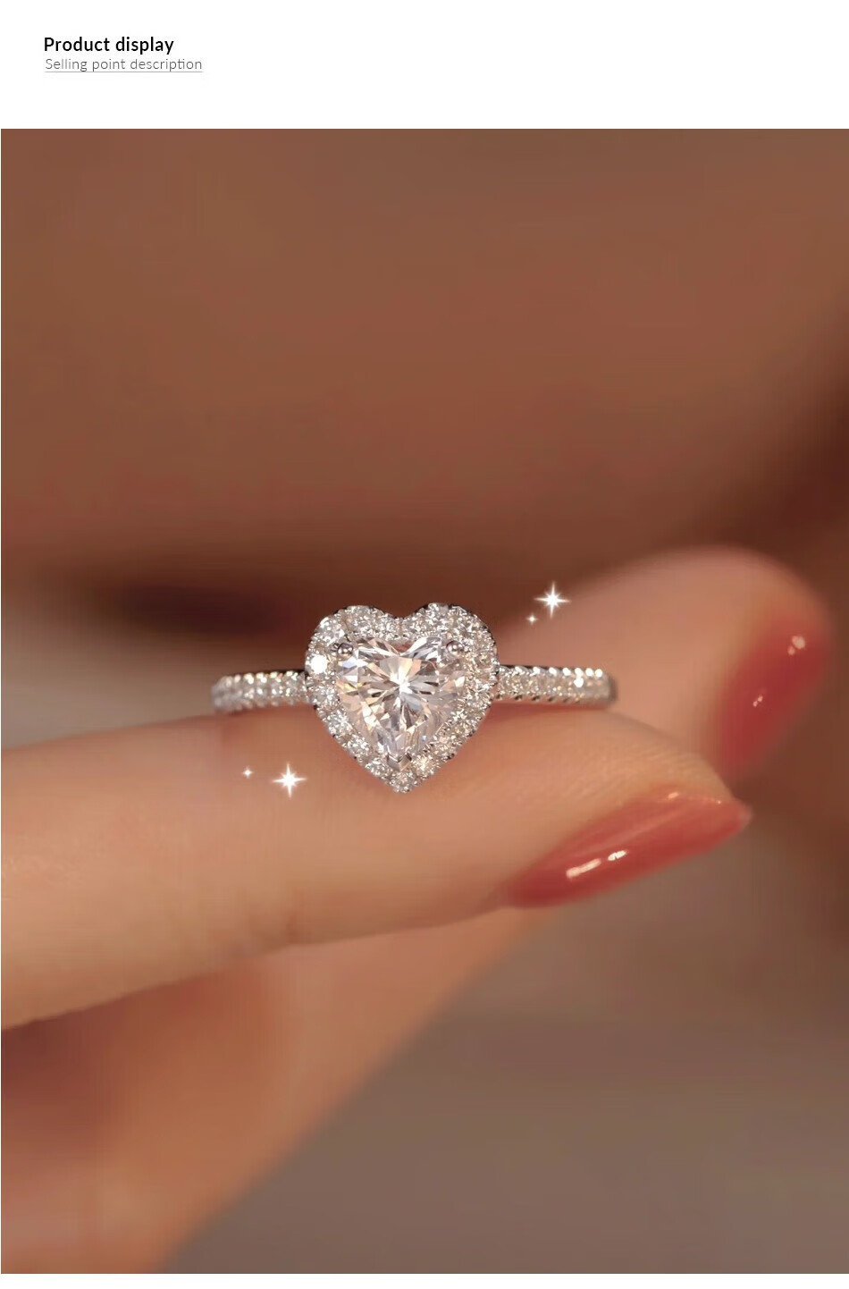 DR Love Diamond Ring Moissanite Ring Heart Shape Diamond Ring Sterling Silver One Carat Ring Order Proposal Ring for Women Valentine’s Day Main Diamond One Carat Closed Contact Customer Service Remarks for Size