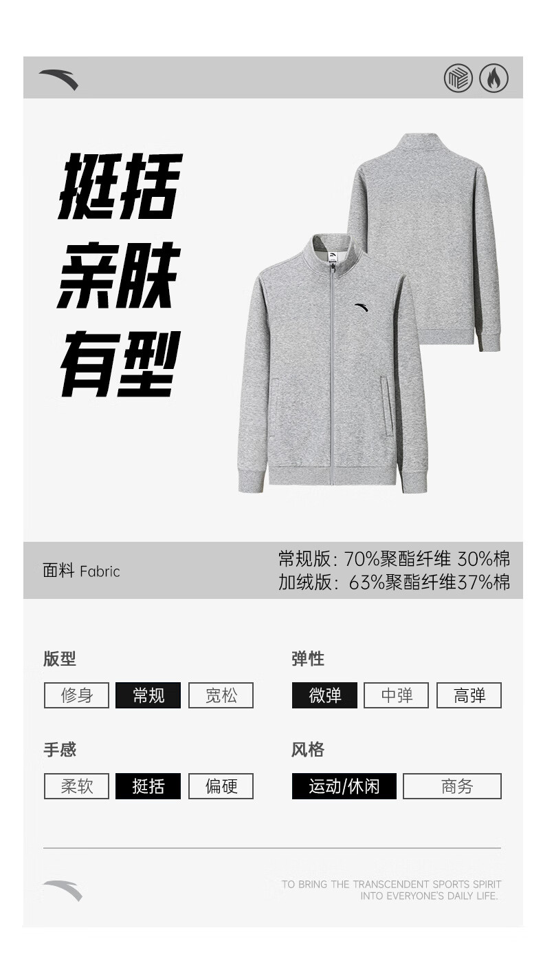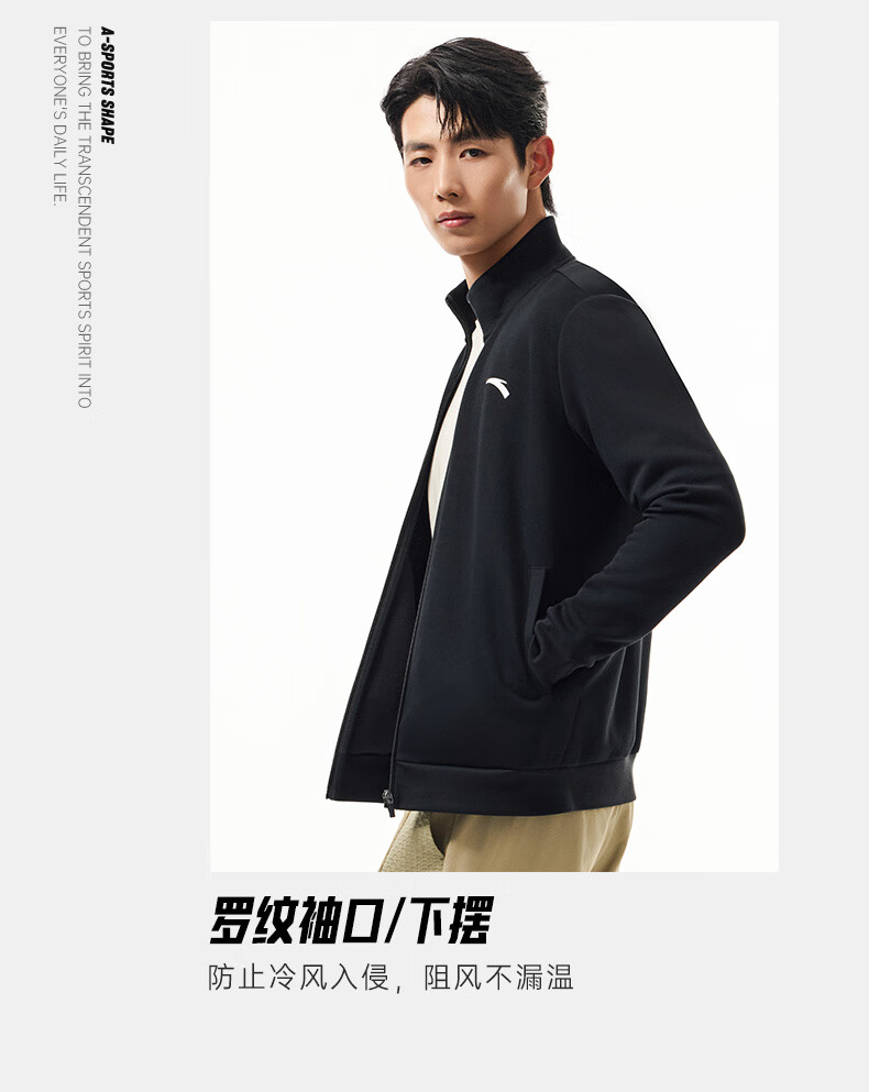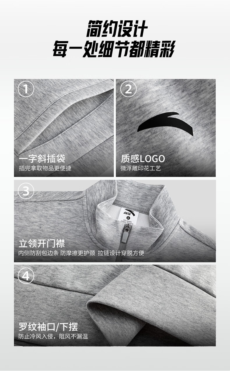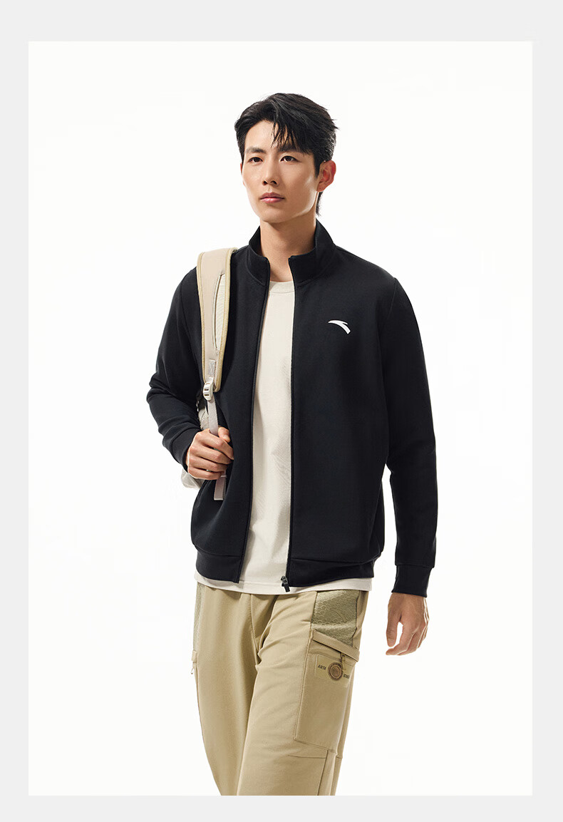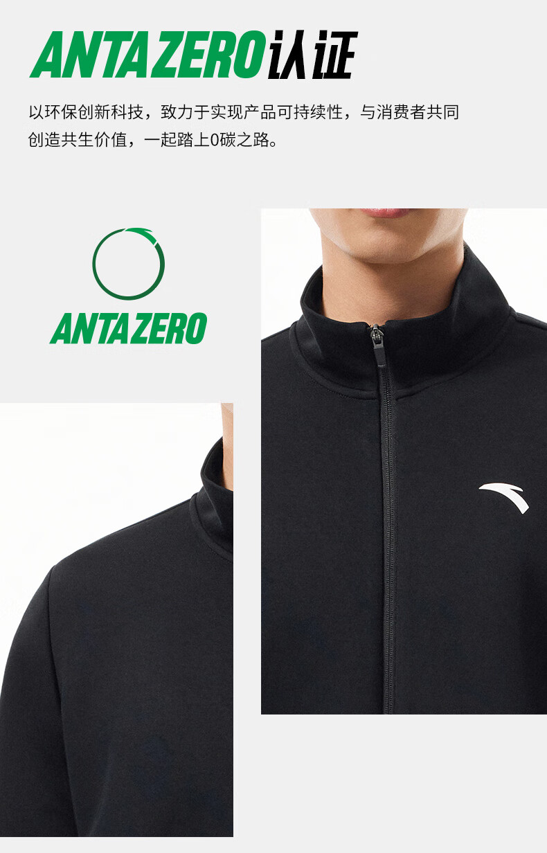 ANTA velvet sports coat men's autumn and winter knitted cardigan stand collar casual sweatshirt zipper thickened warm jacket top velvet stand collar basic black 7710-1 L