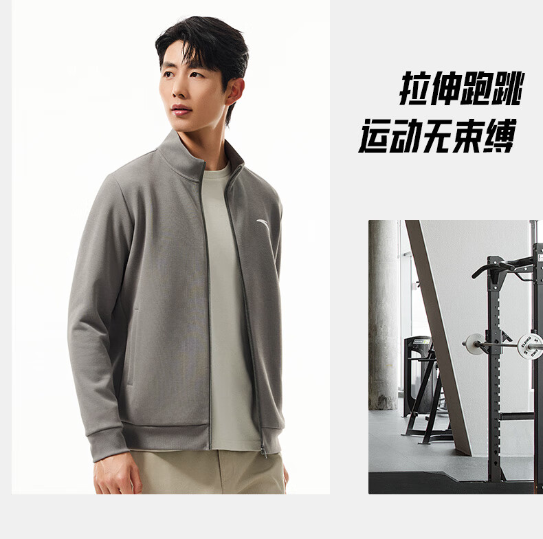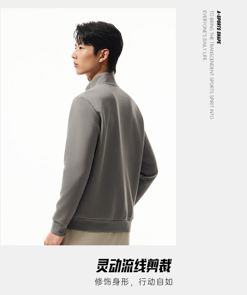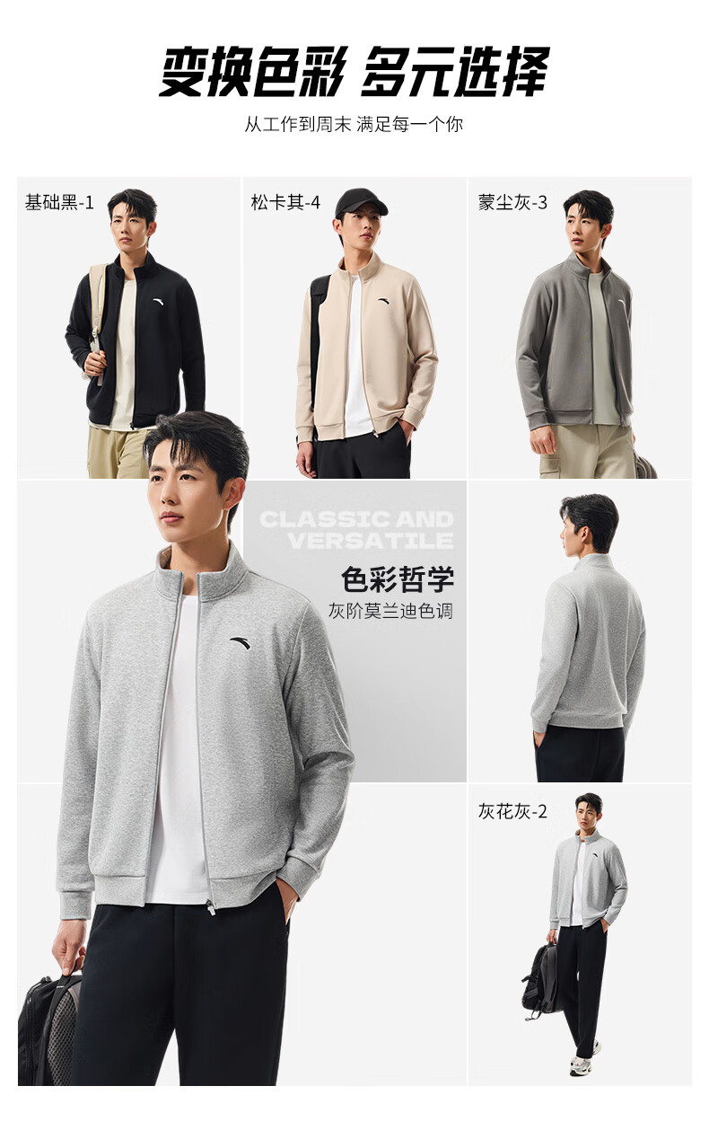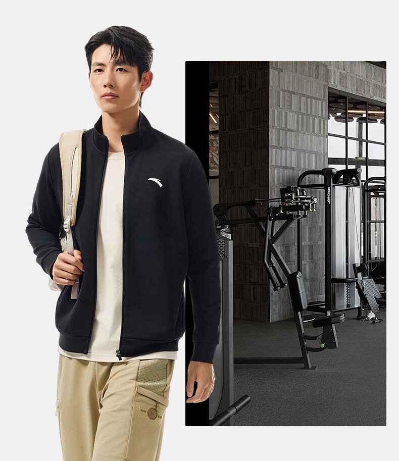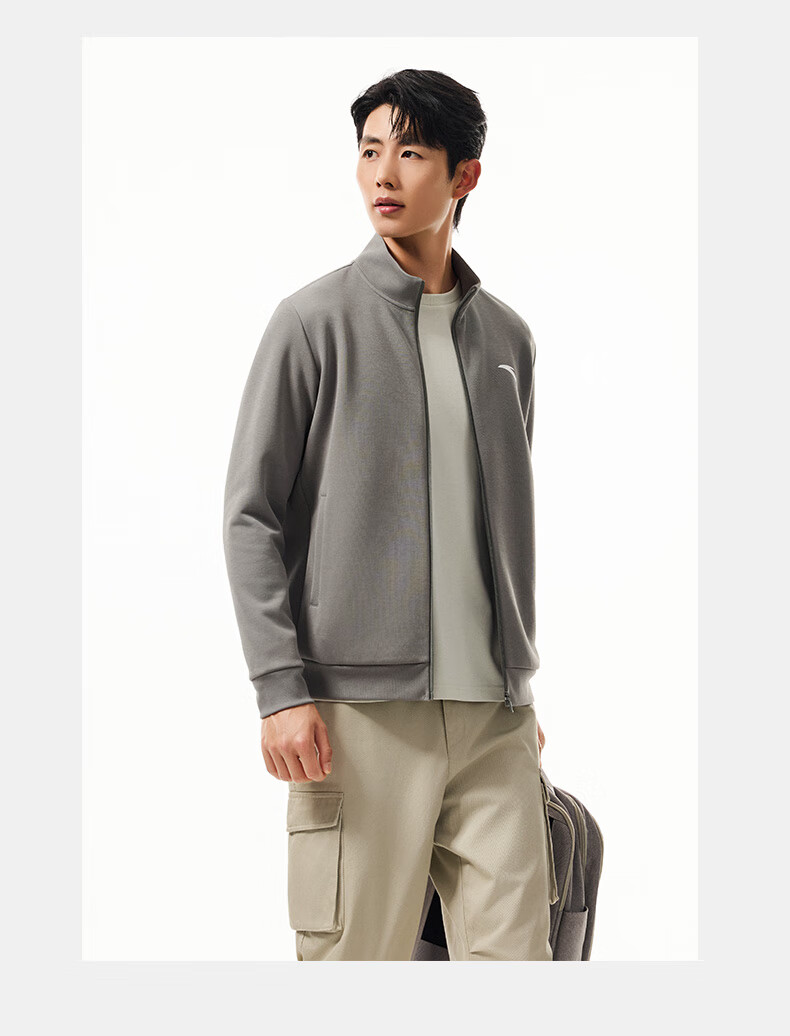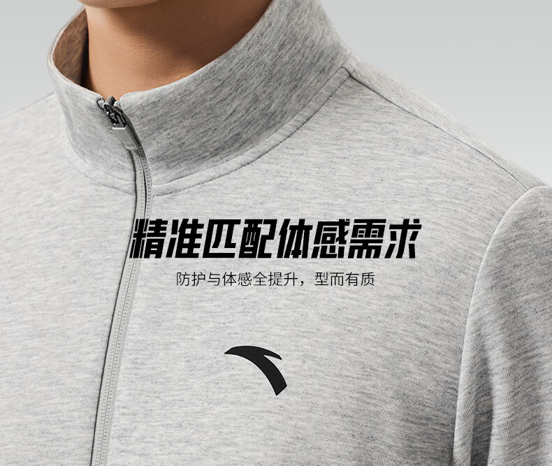 ANTA velvet sports coat men's autumn and winter knitted cardigan stand collar casual sweatshirt zipper thickened warm jacket top velvet stand collar basic black 7710-1 L