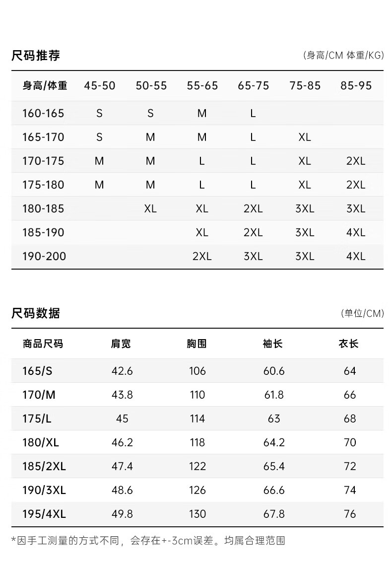 China (cm) 165 / 88-90 170 / 96-98 175 / 108-110 180 / 118-122 185 / 126-130