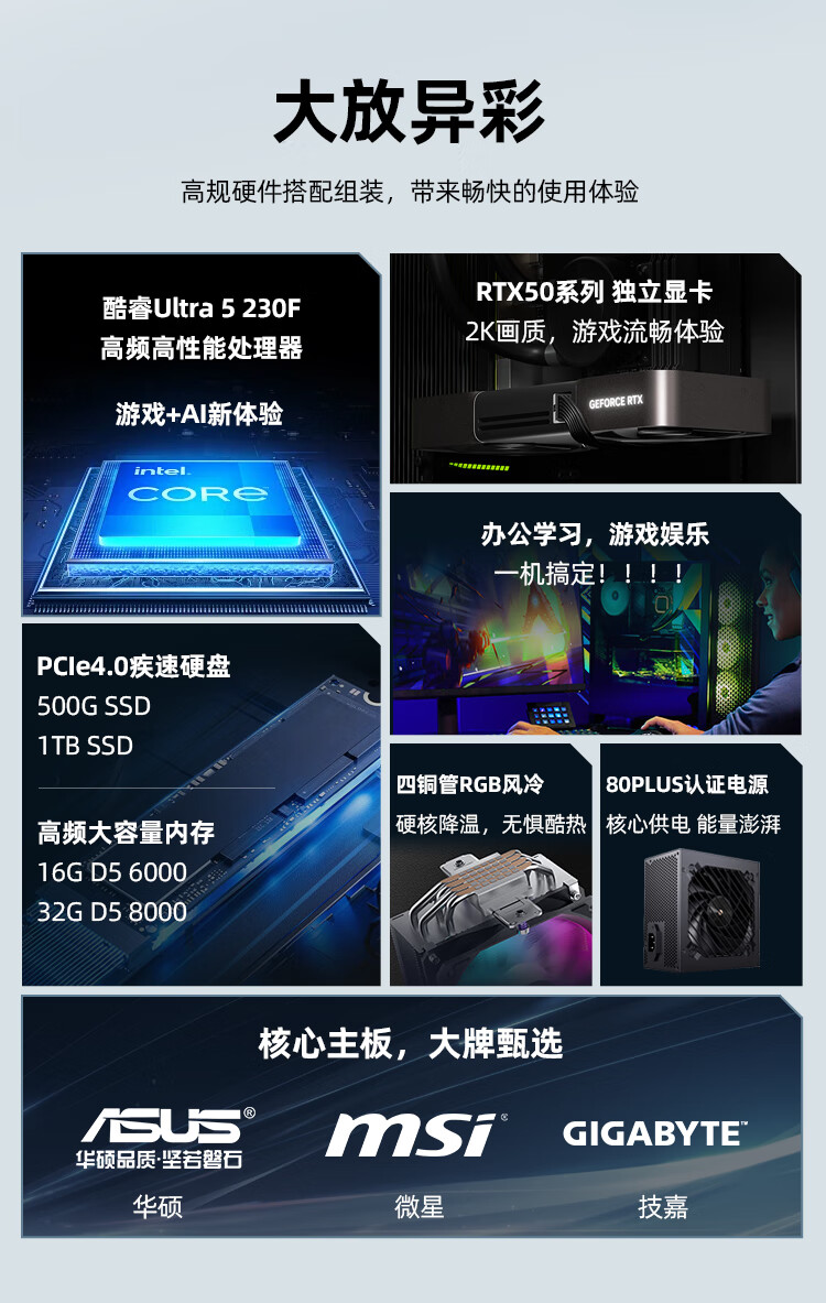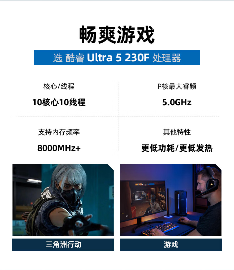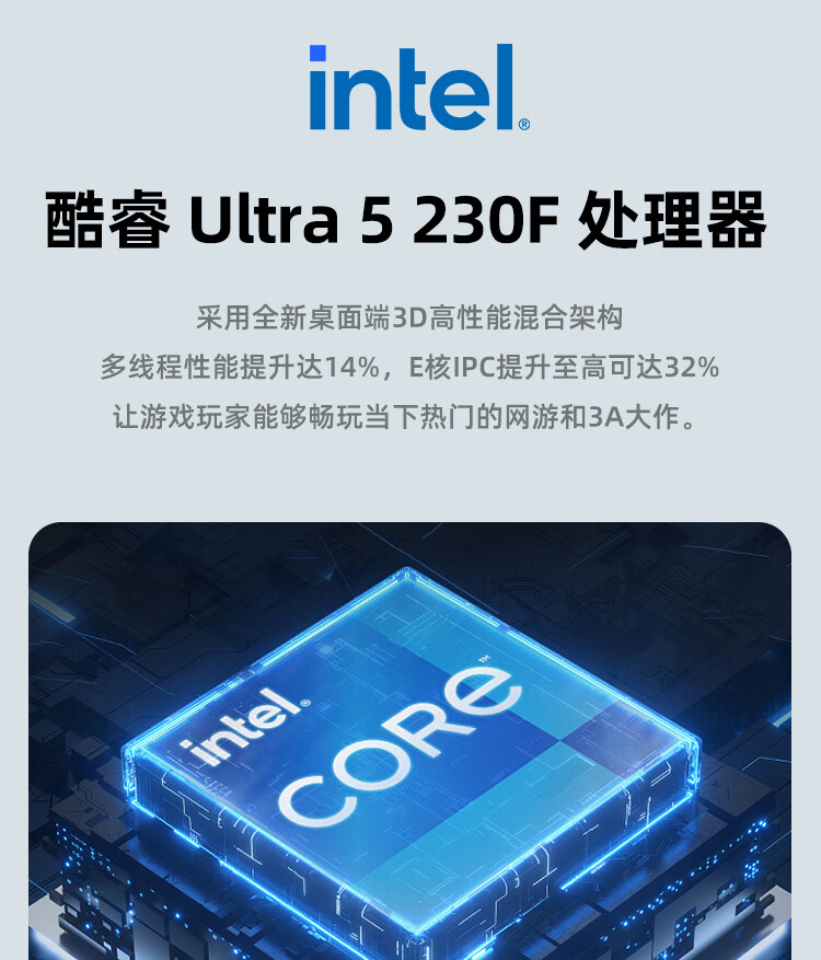 Intel's new blockbuster Core Ultra5 230F series RTX5060Ti small laptop game design live broadcast desktop computer host DIY assembly computer with two U5 230F+RTX5060