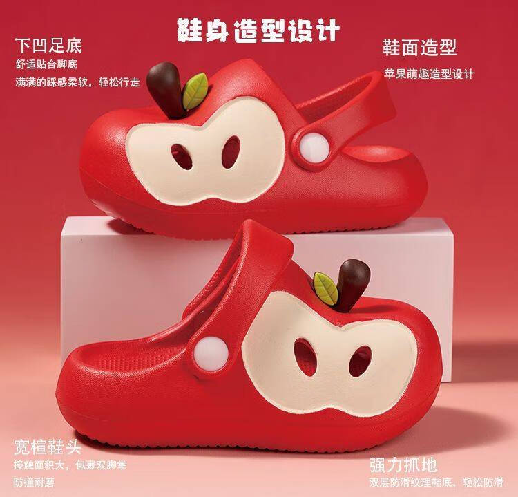 G.duck Little Yellow Duck Children's Apple Slippers Boys' Summer Parent-child Crocs Non-slip Indoor Bathing Girls' Sandals and Slippers Pink New Material Upgraded Version_Shock Absorbing Anti-Slip Sizes 38-39/Inner Length 24.0cm