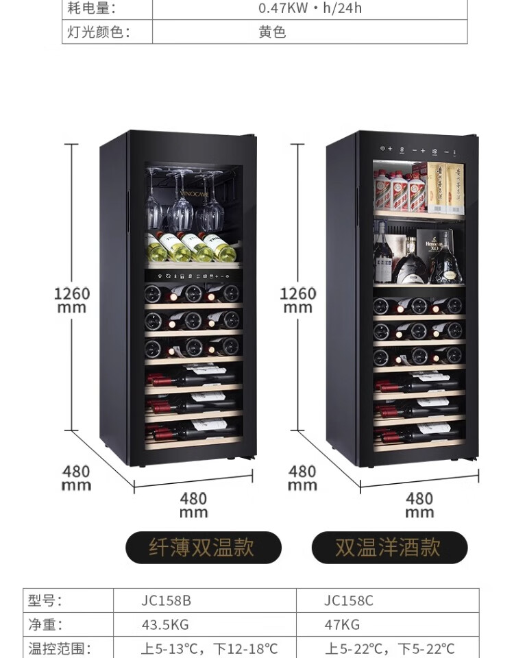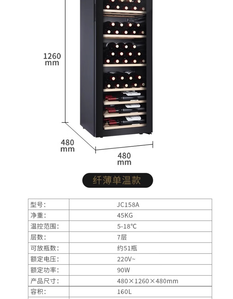 Vinocave JC-158A red wine cabinet constant temperature wine cabinet household refrigerator small refrigerator dual temperature model