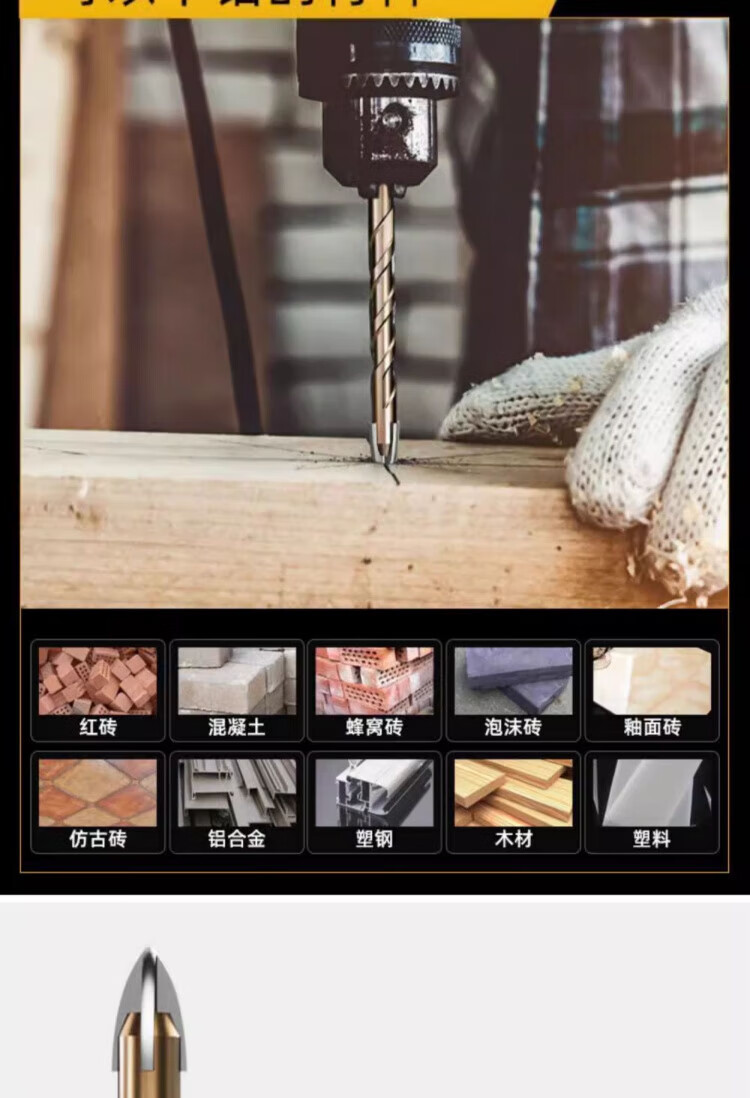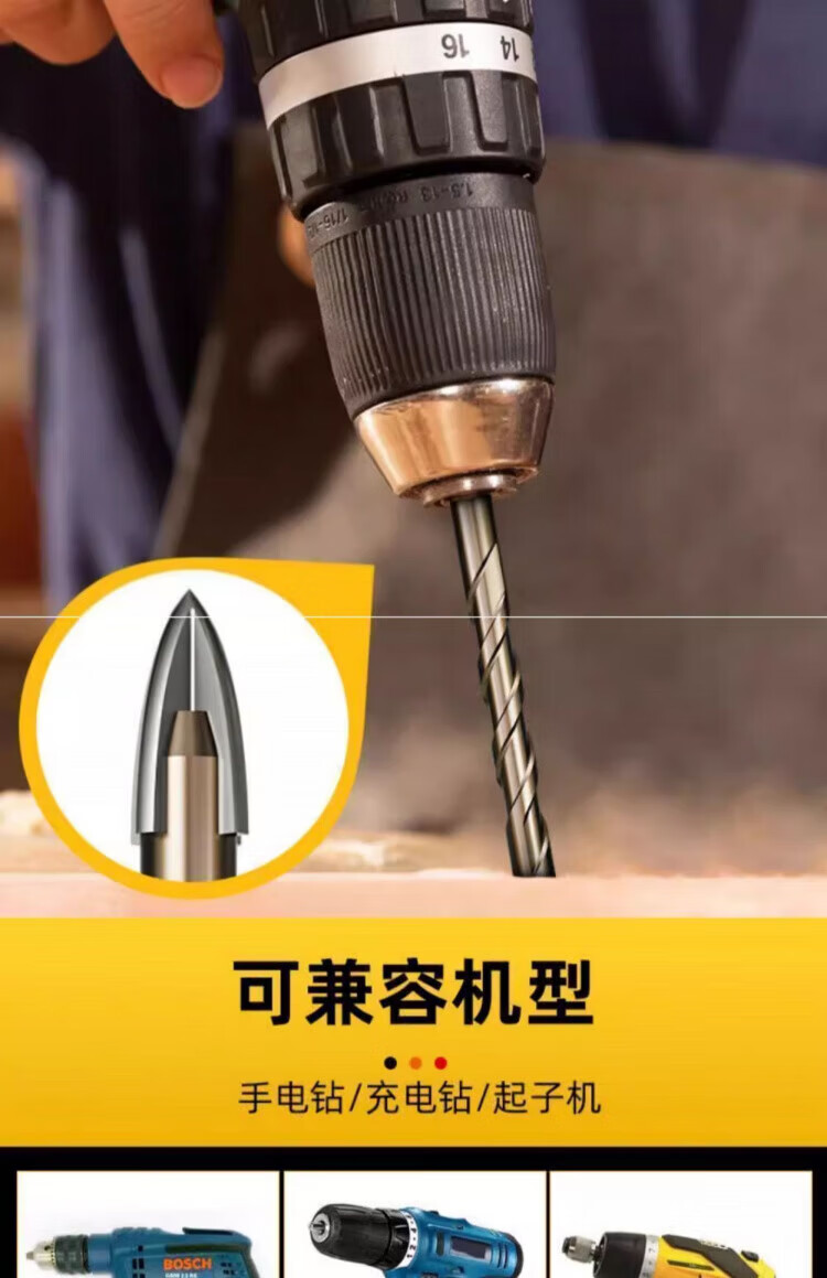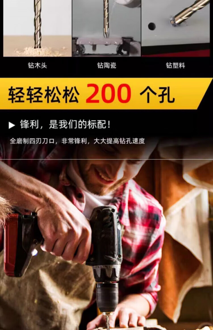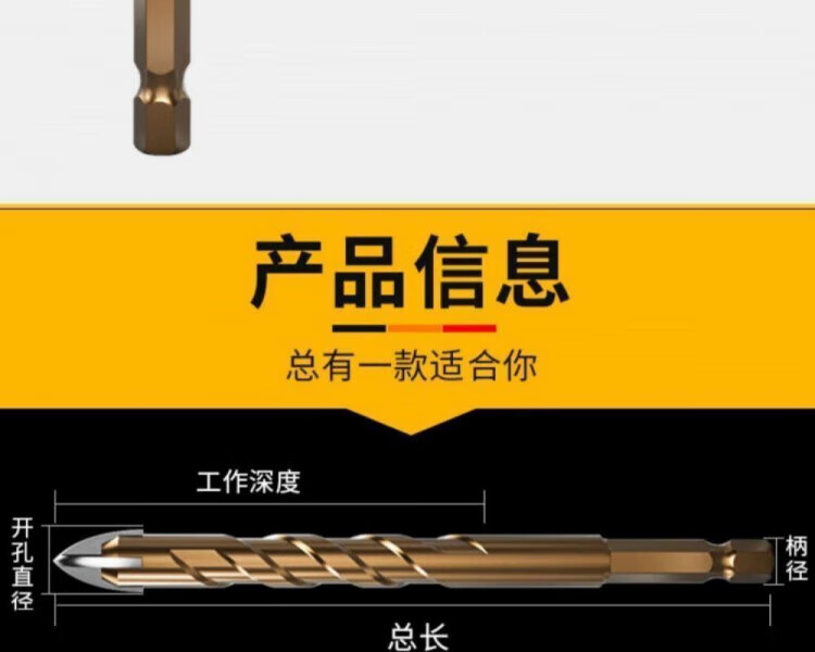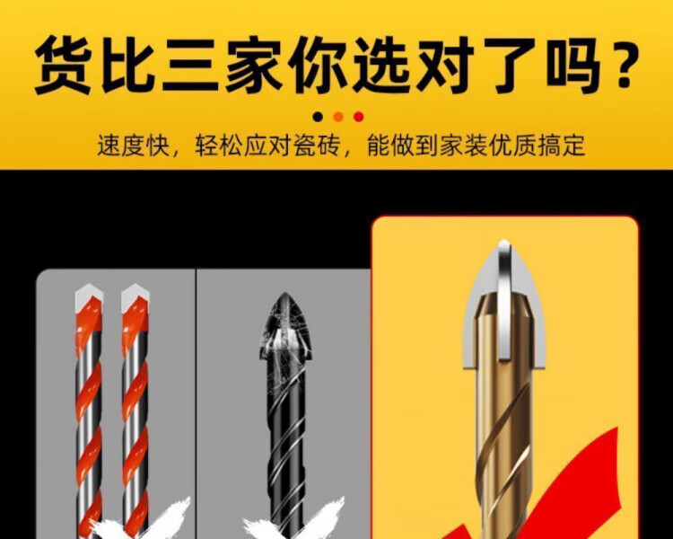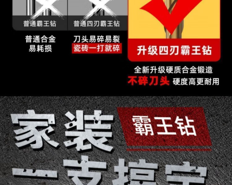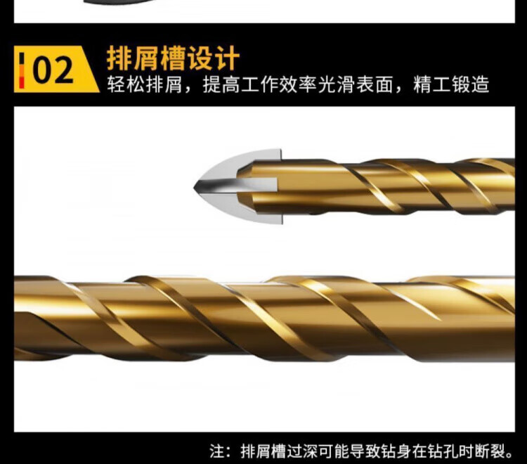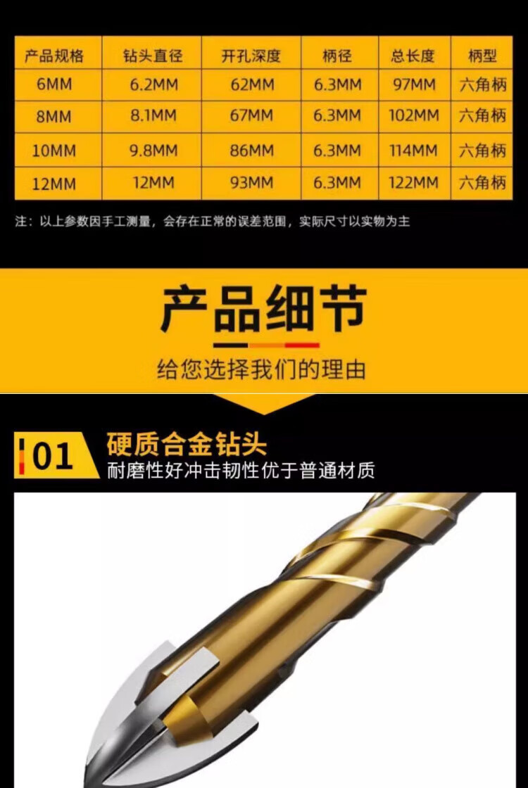 JCZS German precision ceramic tile special drill bit four-edged Overlord alloy drill high hardness glass all-ceramic dry drilling four-edged Overlord drill 6mm 2 pieces