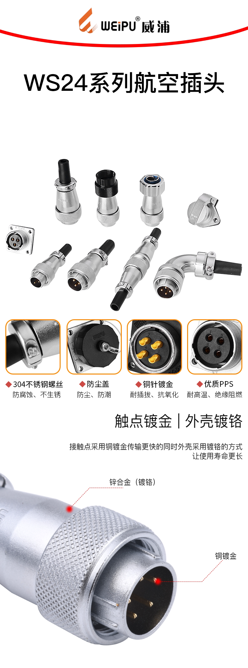 Weipu aviation connector WS24 2-pin-19-pin TQ plug + ZM rear nut seat male + female WS24J3TQ 3-pin male