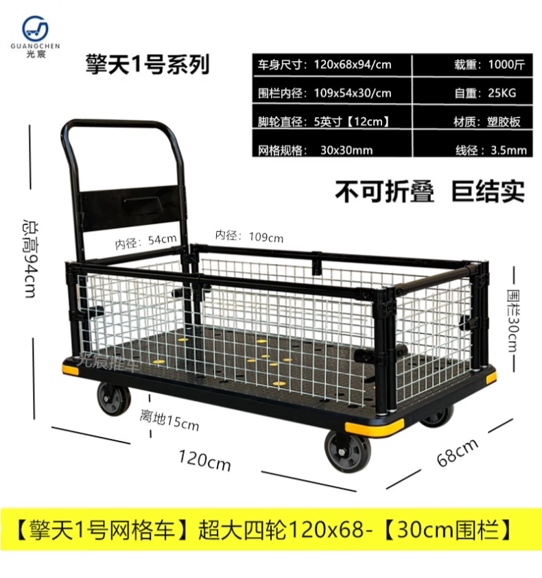 Kezitu Qingtian Grid Cart Flatbed Trolley Cage Car Warehouse Turnover Fence Truck Cargo Truck Tool Car Qingtian No. 1 Grid Car Extended Version Four Wheels 10