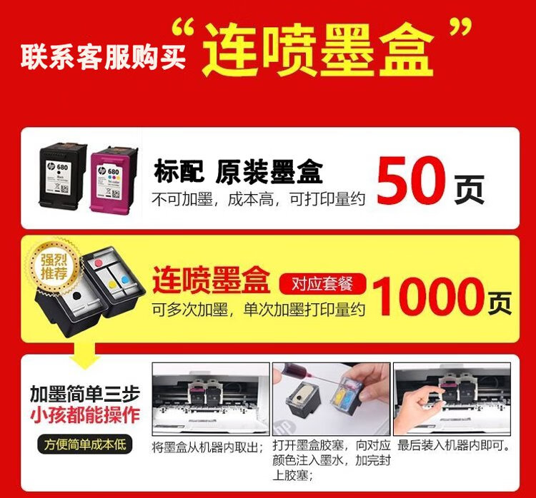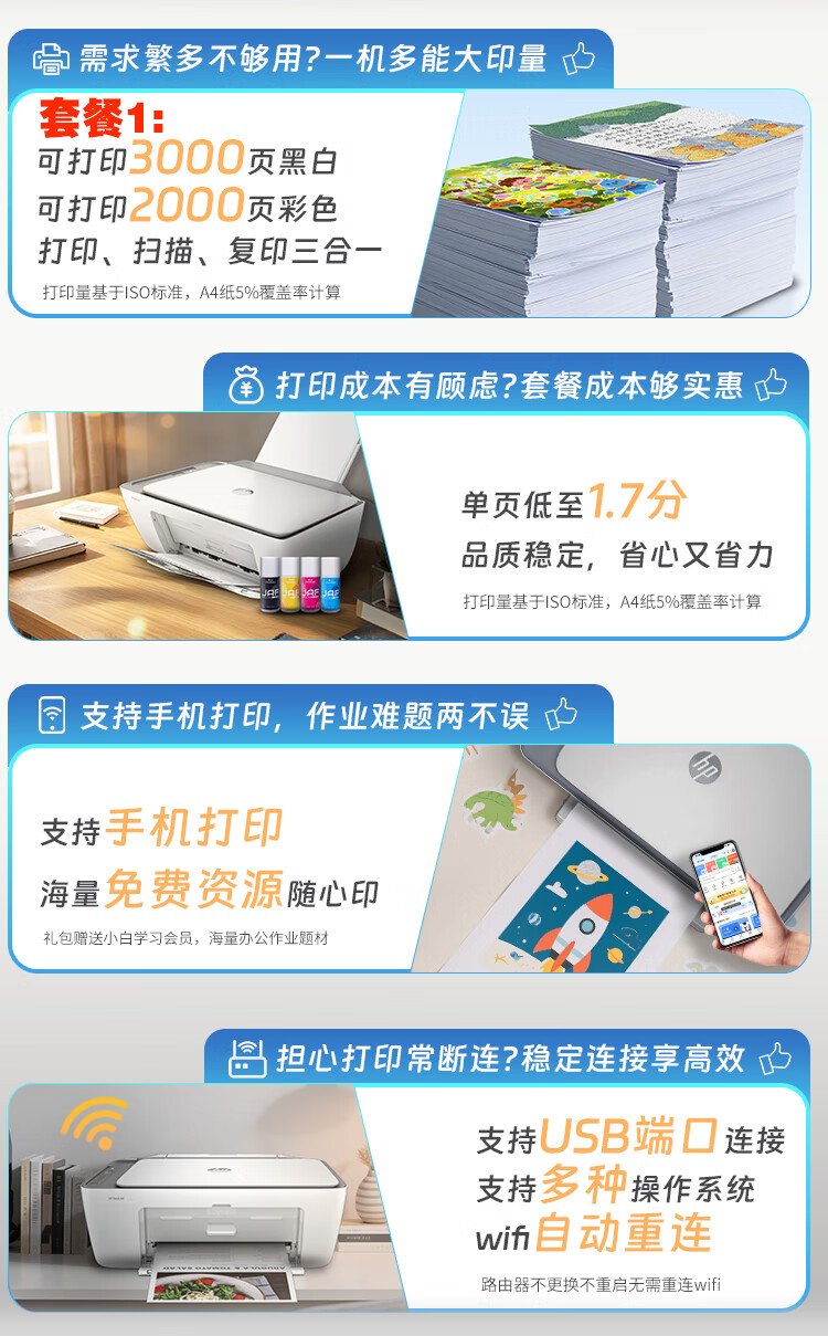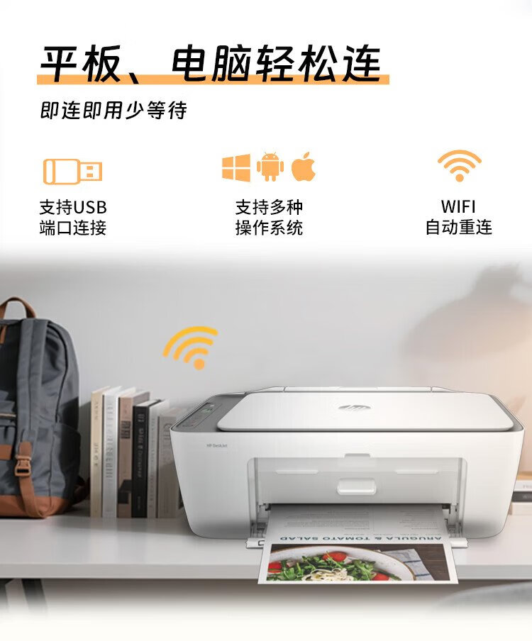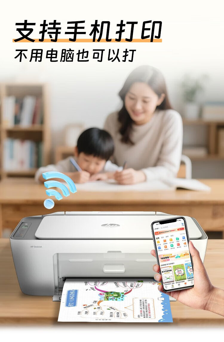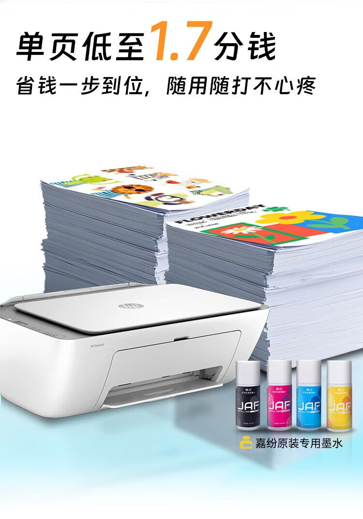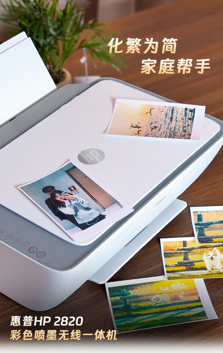 HP HP 2820/10 printer student home paper homework can connect to mobile phone color photos small inkjet A4 copy and scan all-in-one machine supports wireless WIFI HP2810 pure white print/copy/scan with screen display mobile phone wireless package 1 black color ink + upgraded Jiafen ink 4 bottles + learning membership