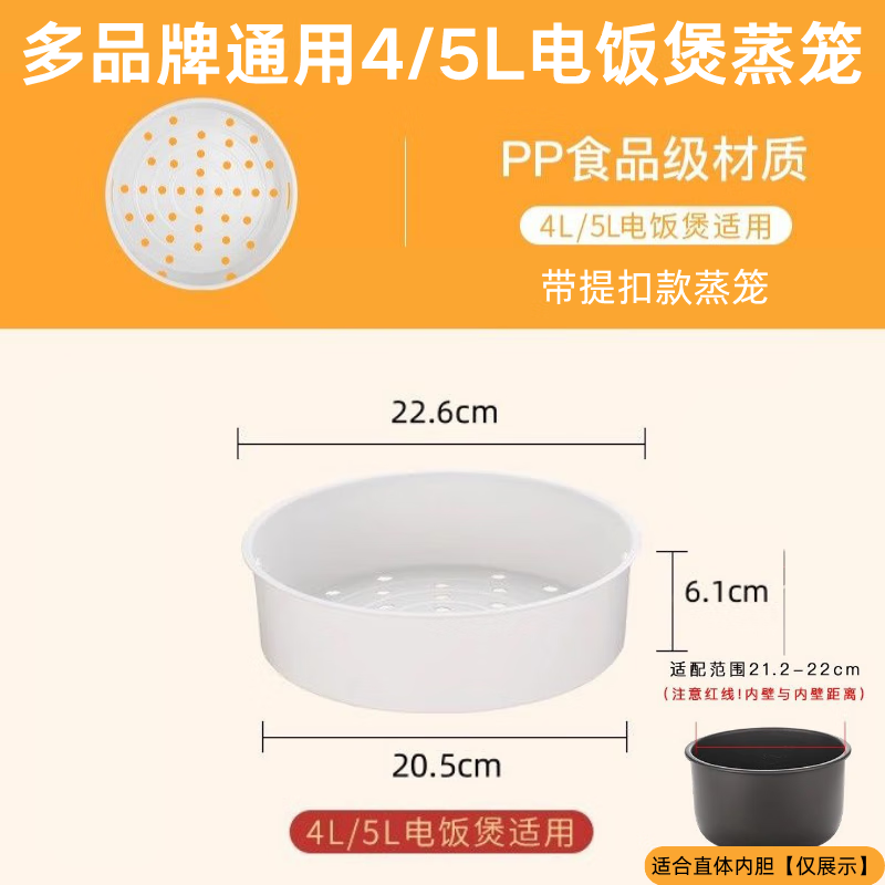 Suitable for Midea Joyoung Supor spherical kettle straight rice cooker steamer 3L4L5L universal lifting buckle inner steaming rack steaming grid steamer universal accessories suitable for spherical kettle 4/5L steamer with lifting buckle
